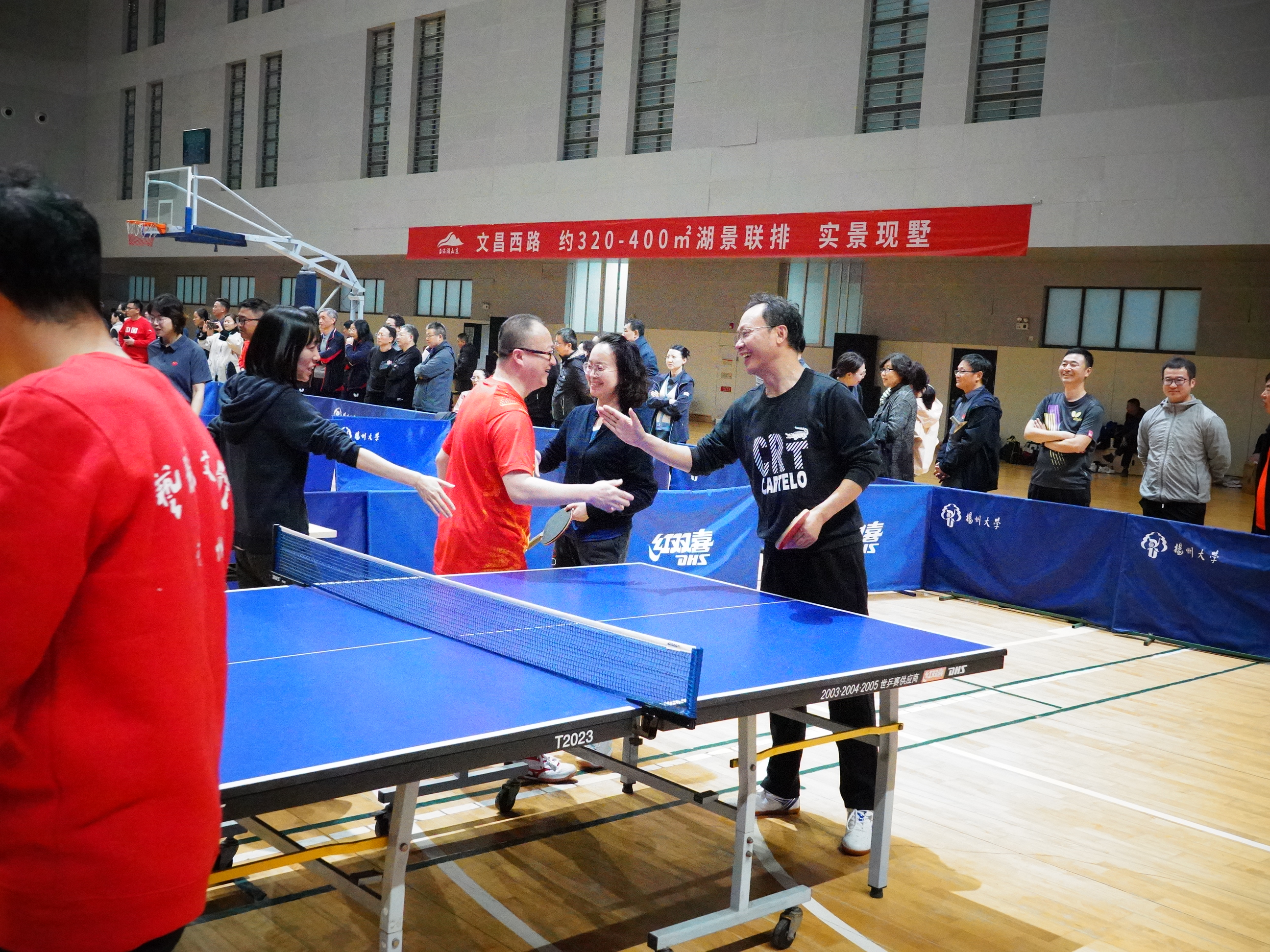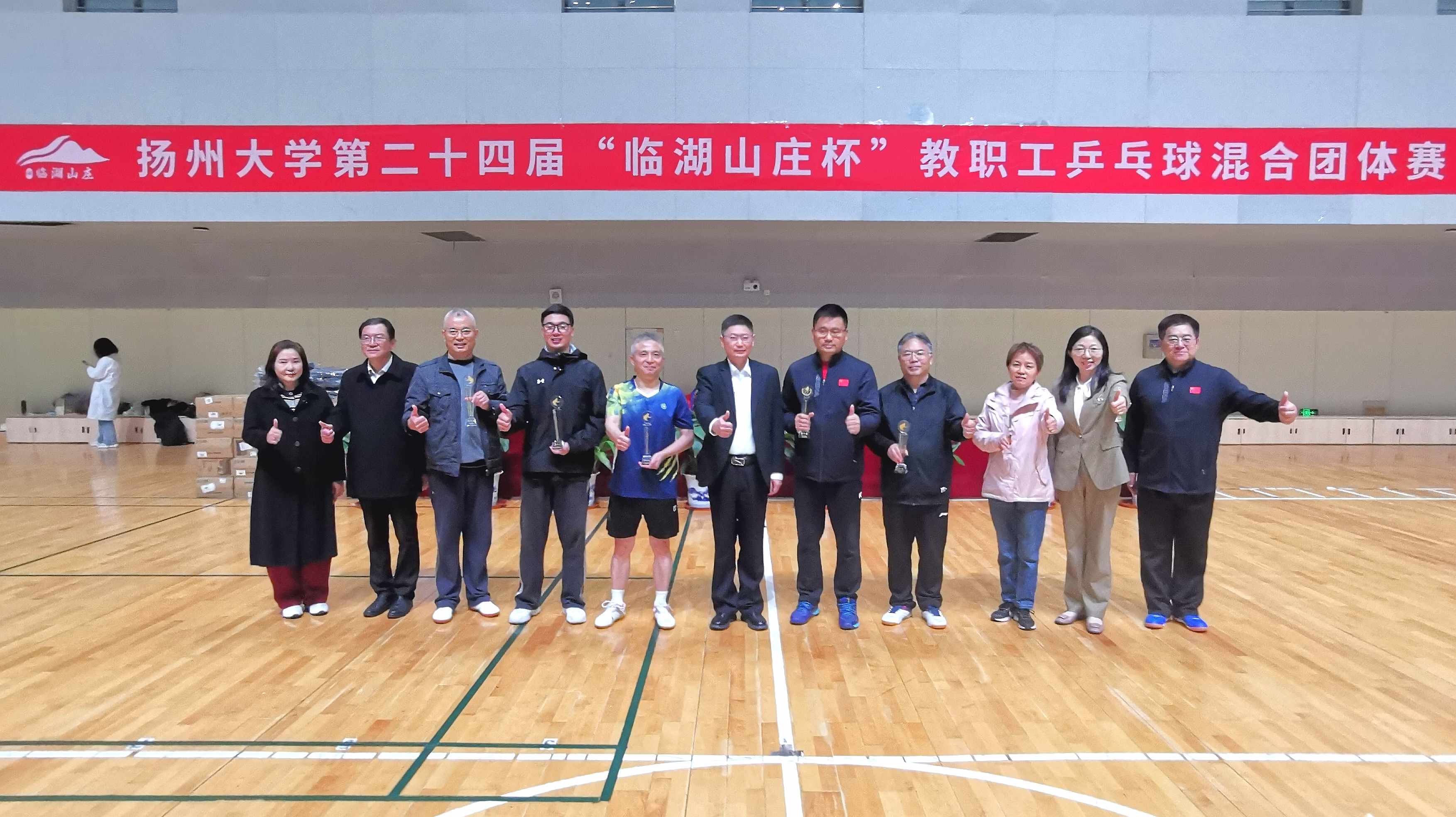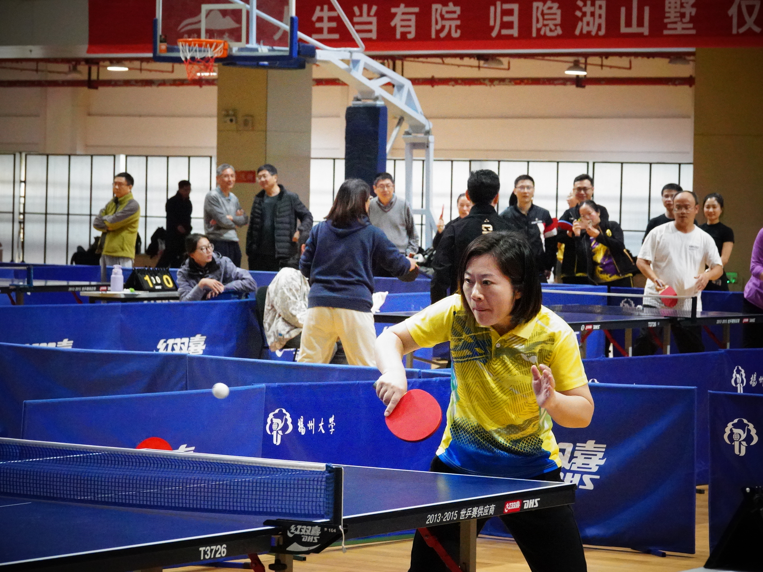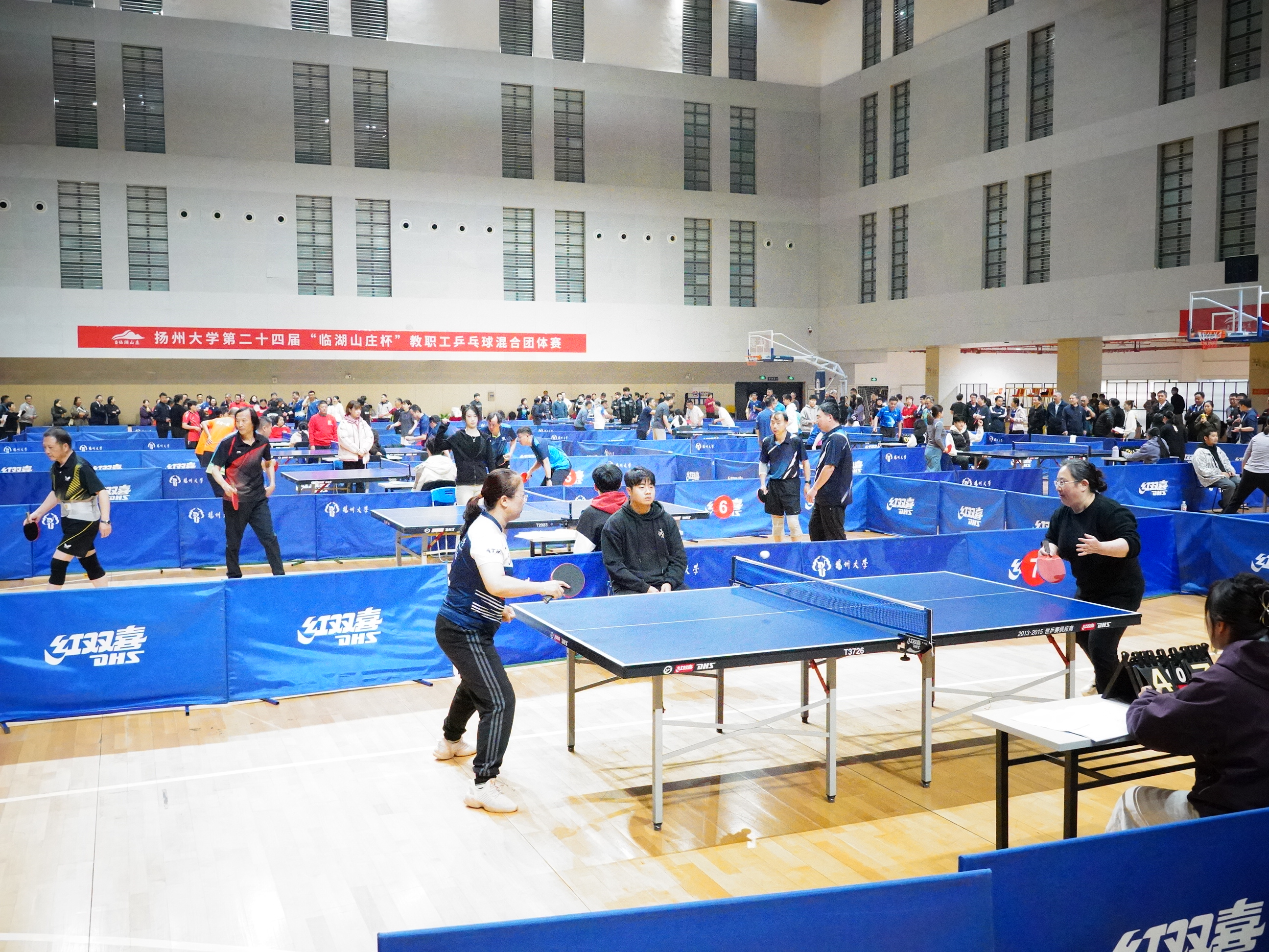 由校工会主办、幸福临湖山庄置业仪征有限公司冠名支持的扬州大学第二十四届教职工乒乓球混合团体赛于11月9—10日在扬子津校区文体馆举办。各二级工会组成37支代表队,近500名选手参加了甲A、甲B、乙A、乙B四个组别的比赛。校党委常委、副校长蒋乃华出席开幕式,看望且勉励各代表队。校党委常委、纪委书记、派驻监察专员邱庆峰出席闭幕式,为获奖单位颁发奖杯及奖品。