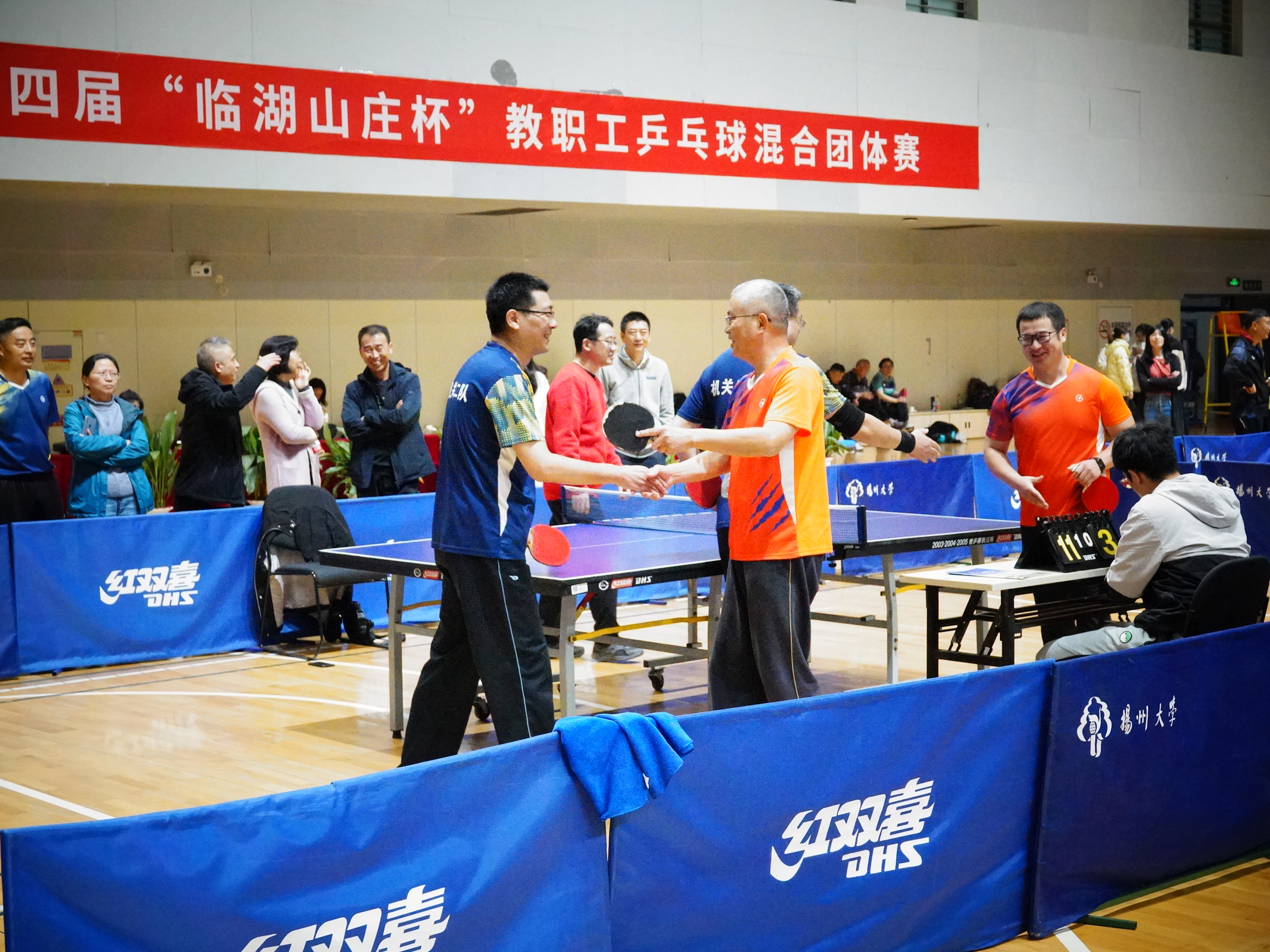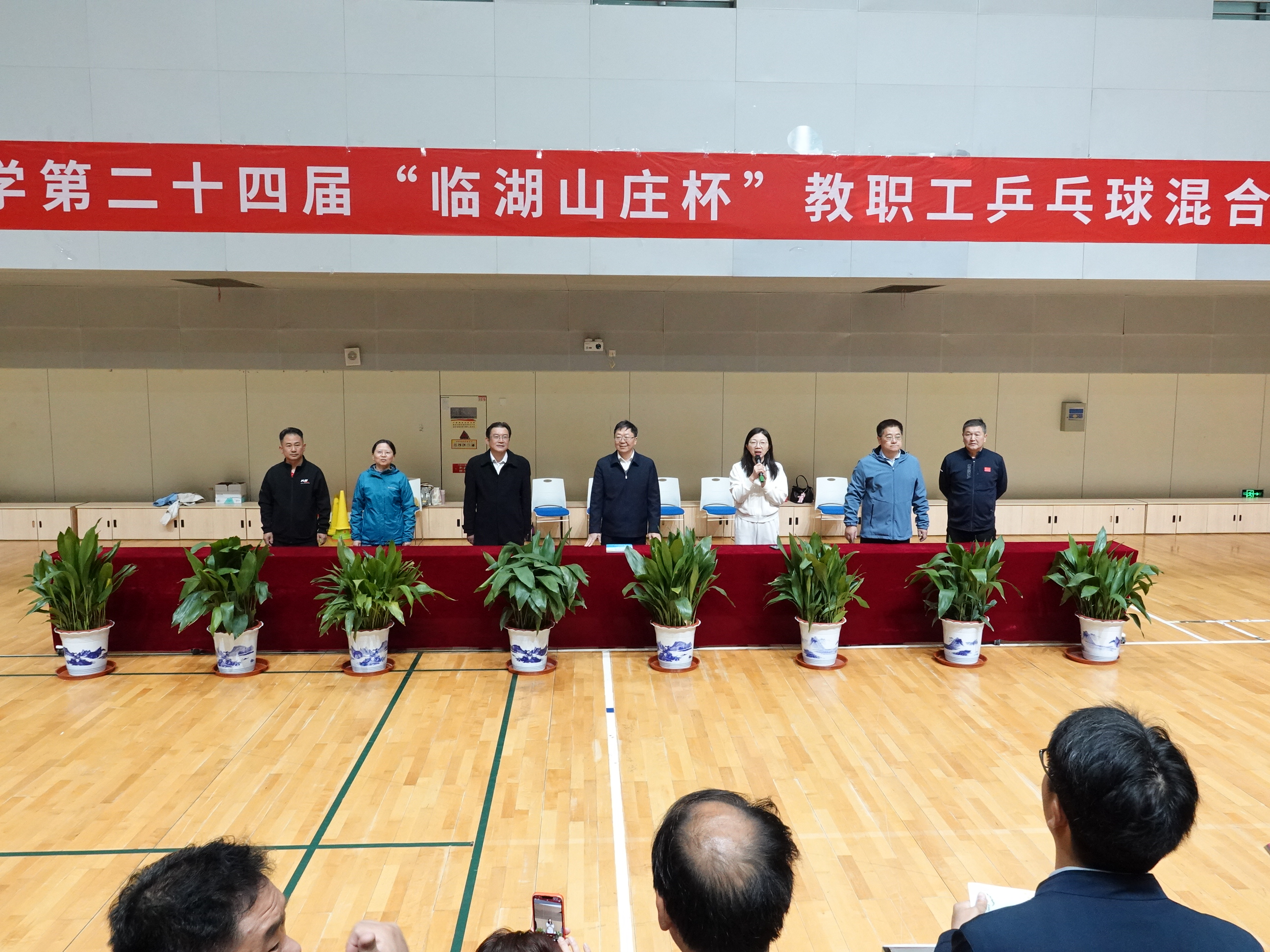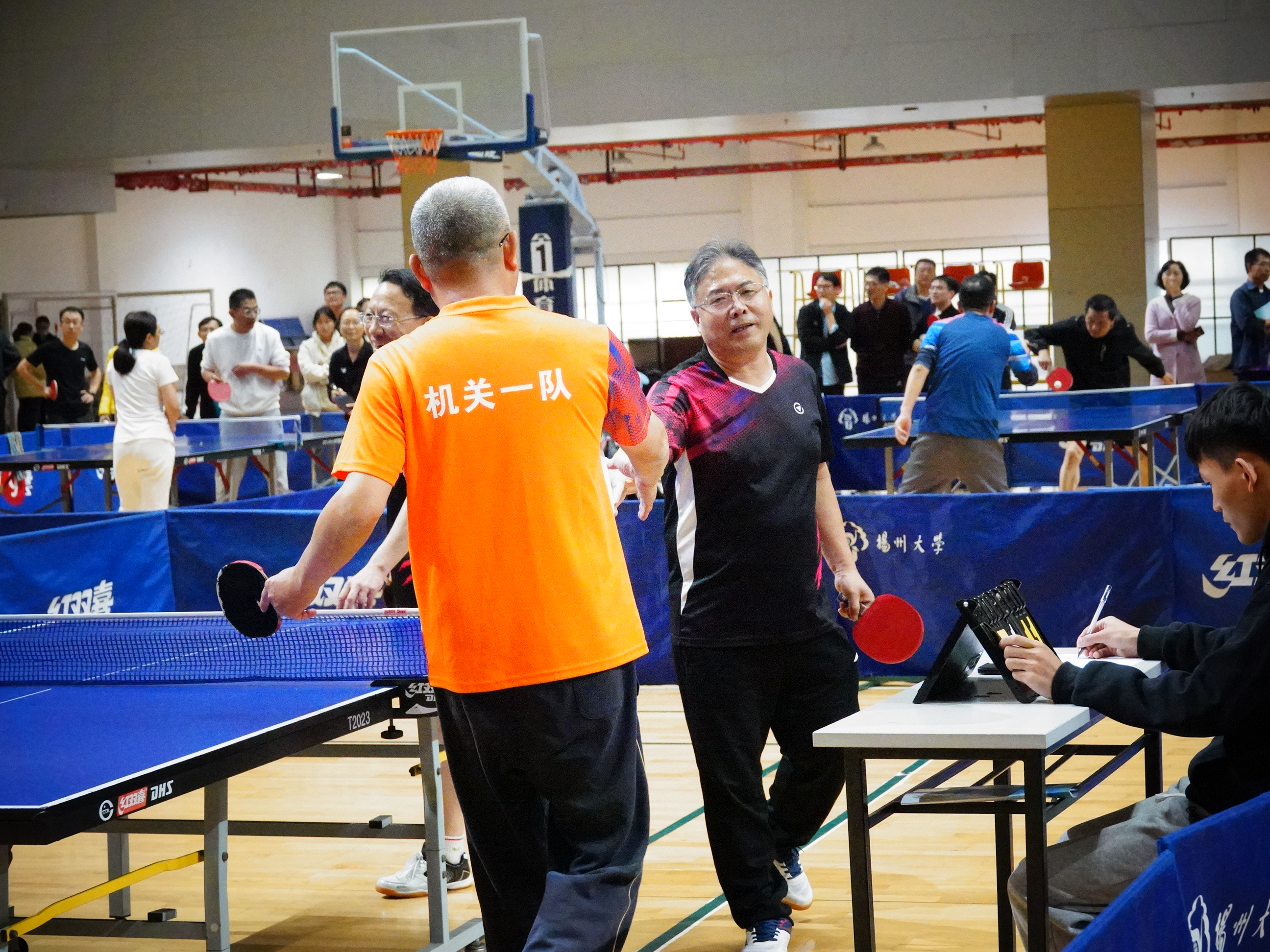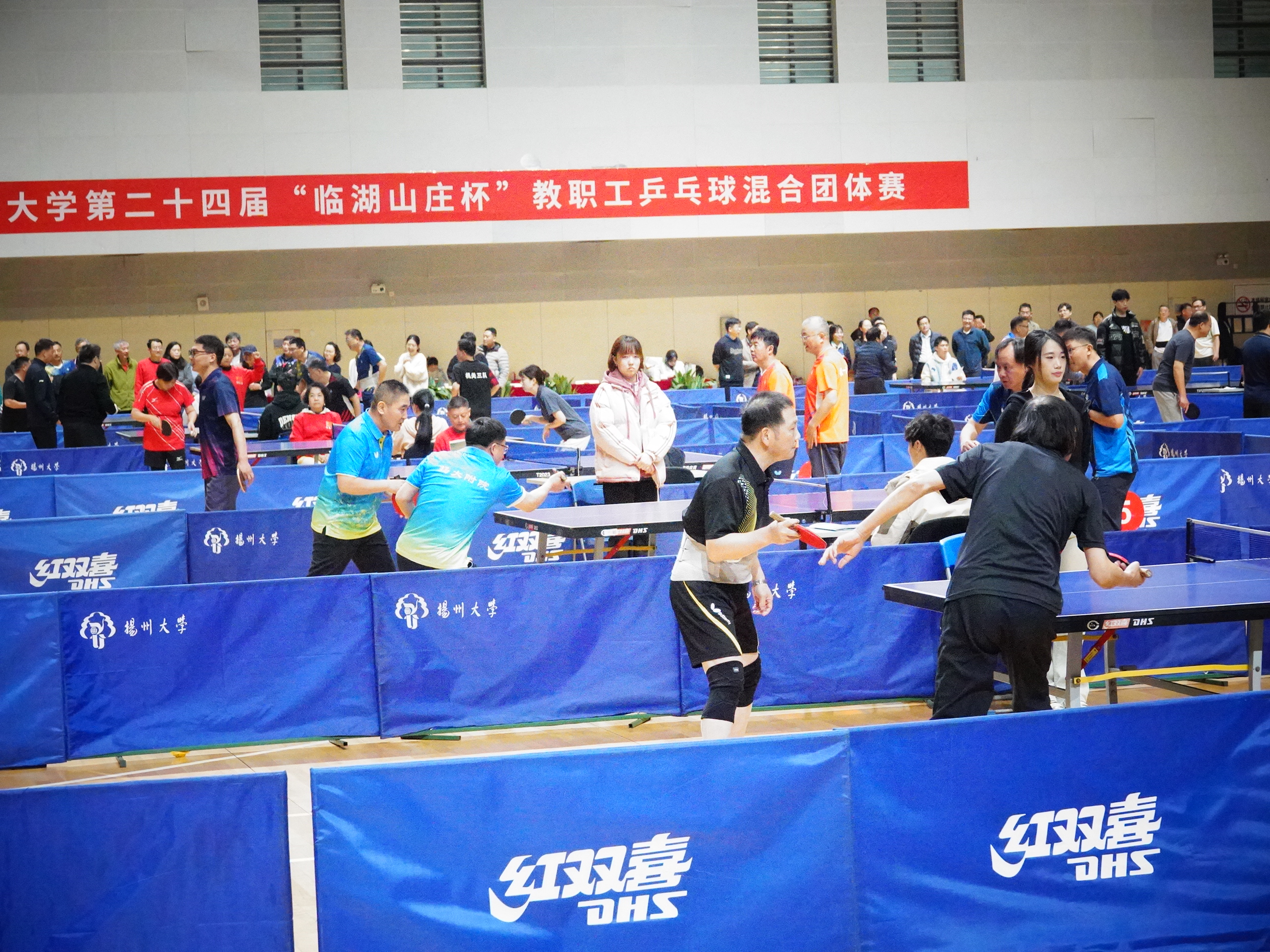 由校工会主办、幸福临湖山庄置业仪征有限公司冠名支持的扬州大学第二十四届教职工乒乓球混合团体赛于11月9—10日在扬子津校区文体馆举办。各二级工会组成37支代表队,近500名选手参加了甲A、甲B、乙A、乙B四个组别的比赛。校党委常委、副校长蒋乃华出席开幕式,看望且勉励各代表队。校党委常委、纪委书记、派驻监察专员邱庆峰出席闭幕式,为获奖单位颁发奖杯及奖品。
