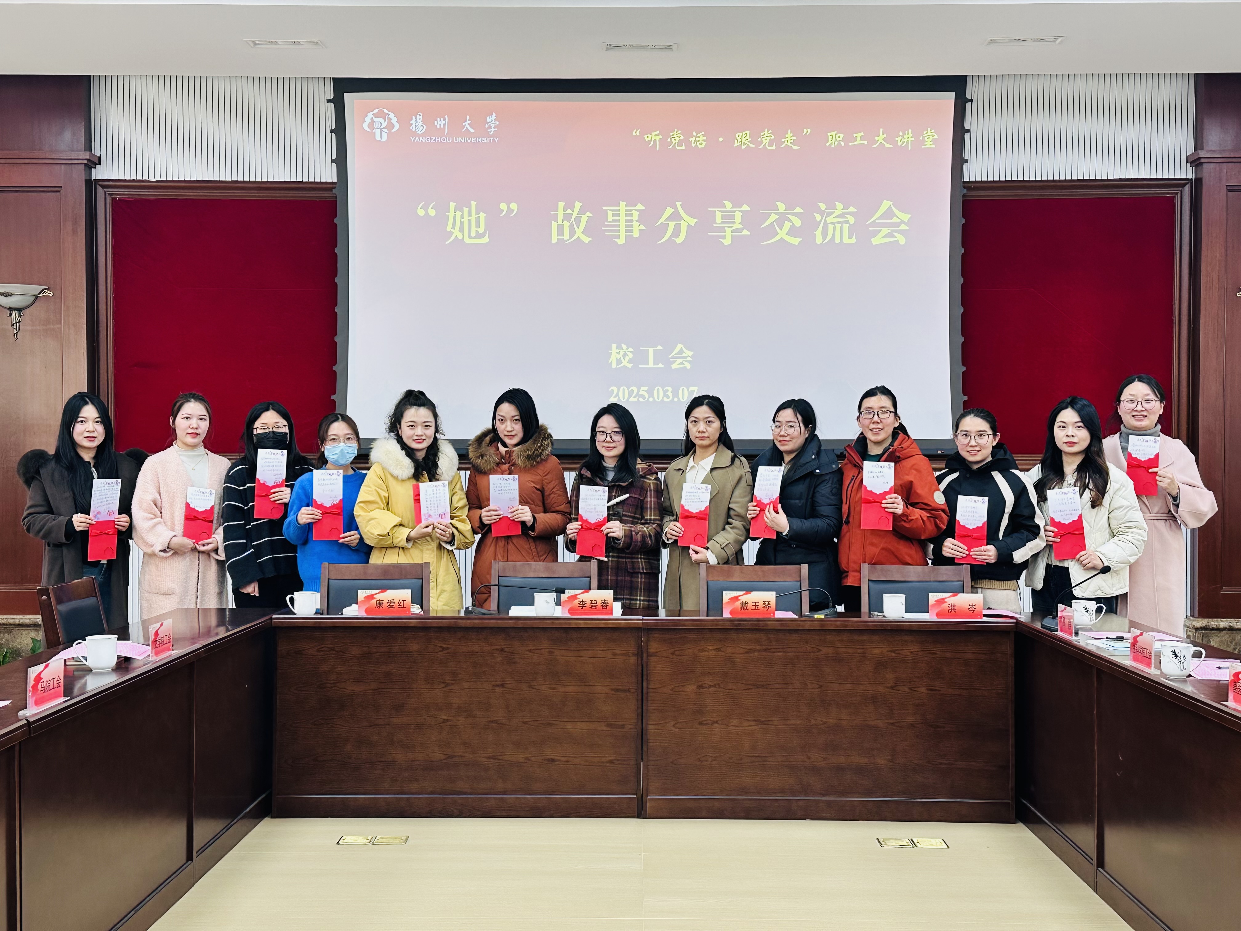 互动环节,青年女教职工代表为分享嘉宾献上节日鲜花。校工会现场抽取了13位幸运女教职工,每人送上一张由校领导、校党委常委亲笔书写的祝福贺卡,通过她们,向全校女教职工表达节日的祝福和美好的祝愿。校工会还为参会的30余位青年女教职工每人送上一本精美书籍,希望阅读能为她们带来知识的滋养和心灵的慰藉。