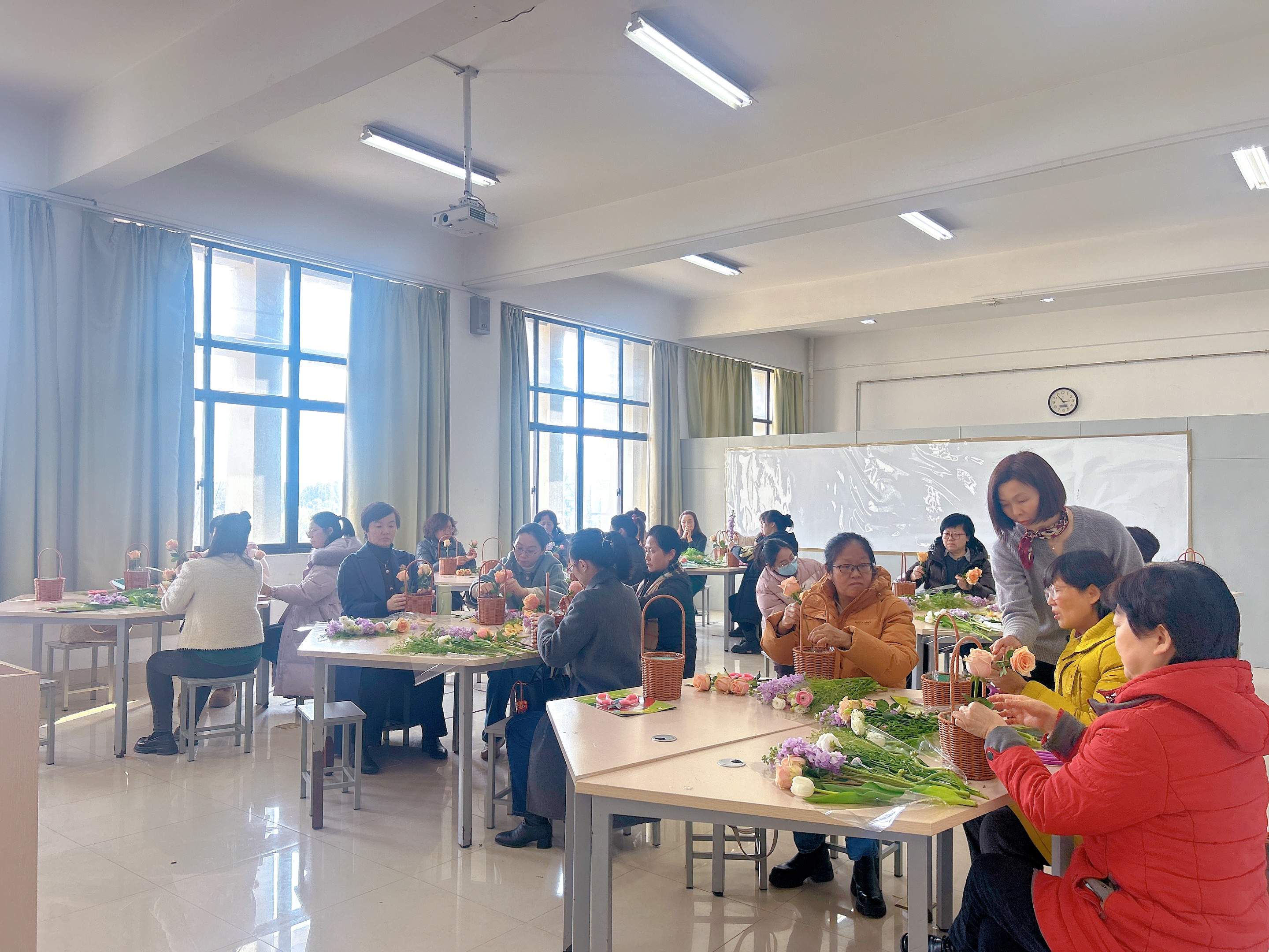 为丰富女教职工的业余文化生活,营造和谐融洽的校园氛围,节日期间,校工会开展了花艺沙龙、蛋糕制作小课堂等系列生活美学DIY类、衣物免费护理体验、八段锦教学等活动。让女教职工们在活动中舒展身心,感受生活之美,激发生活热情,提升艺术修养和审美情趣,以更加饱满的精神状态投入到教学科研和服务管理等各项工作。