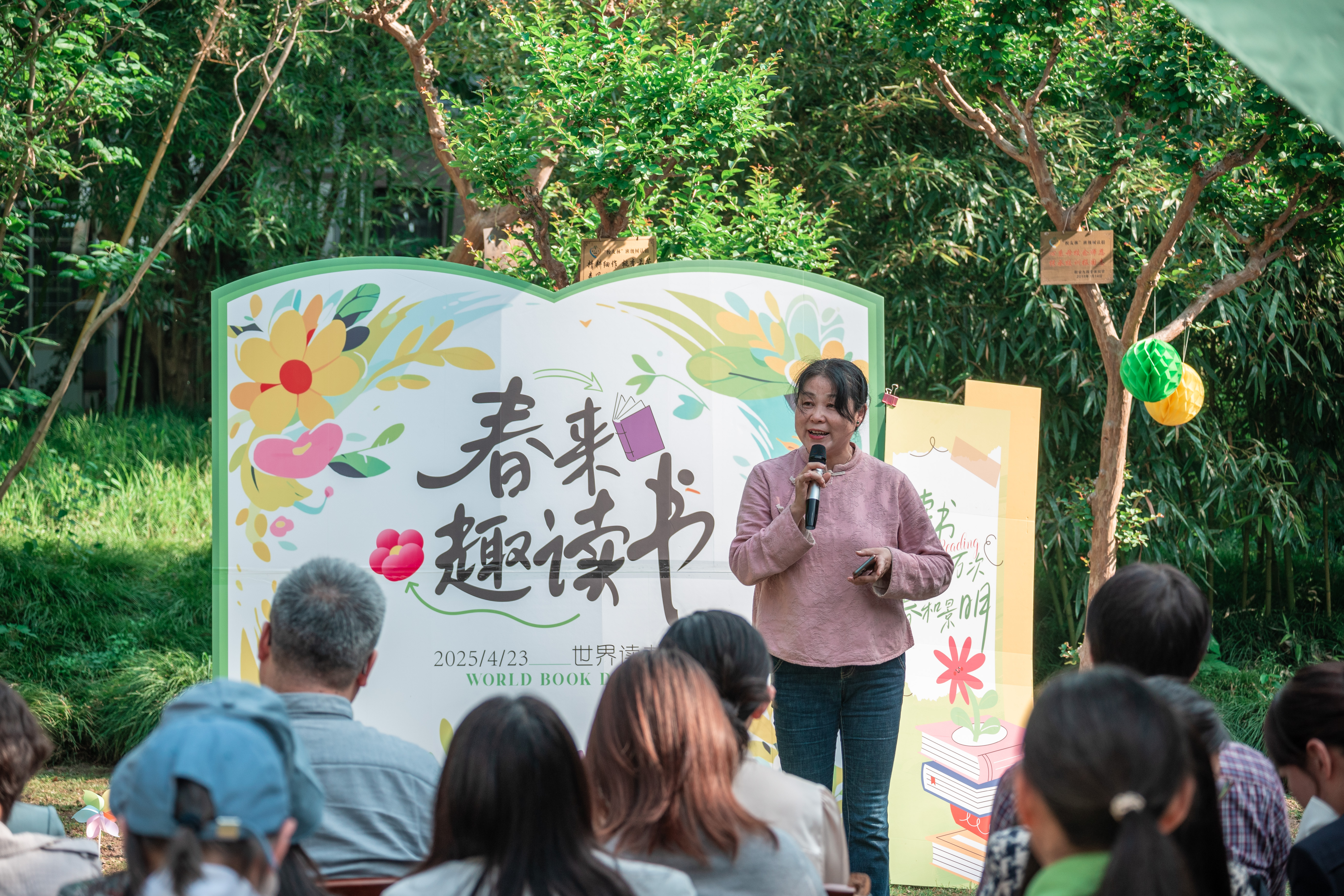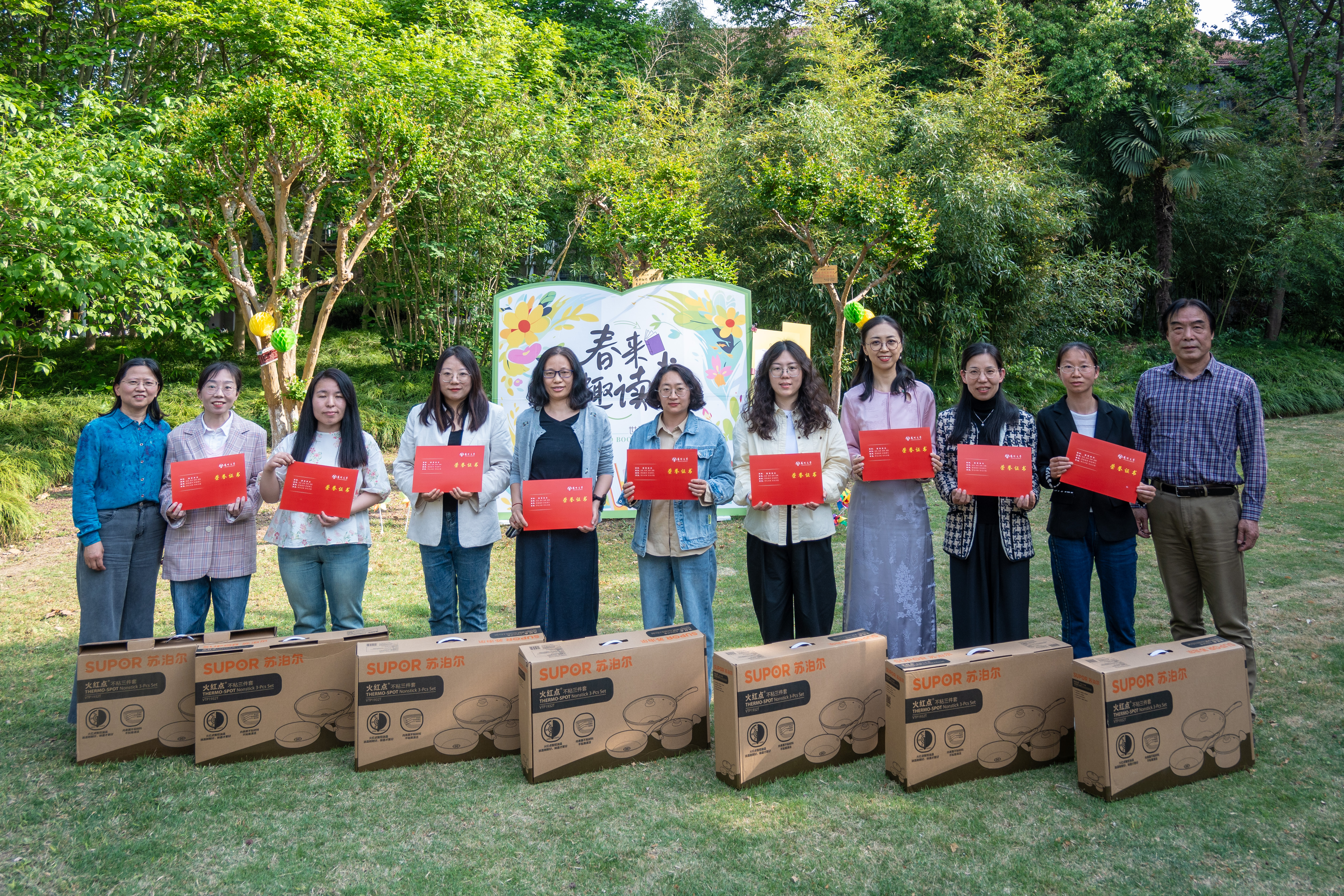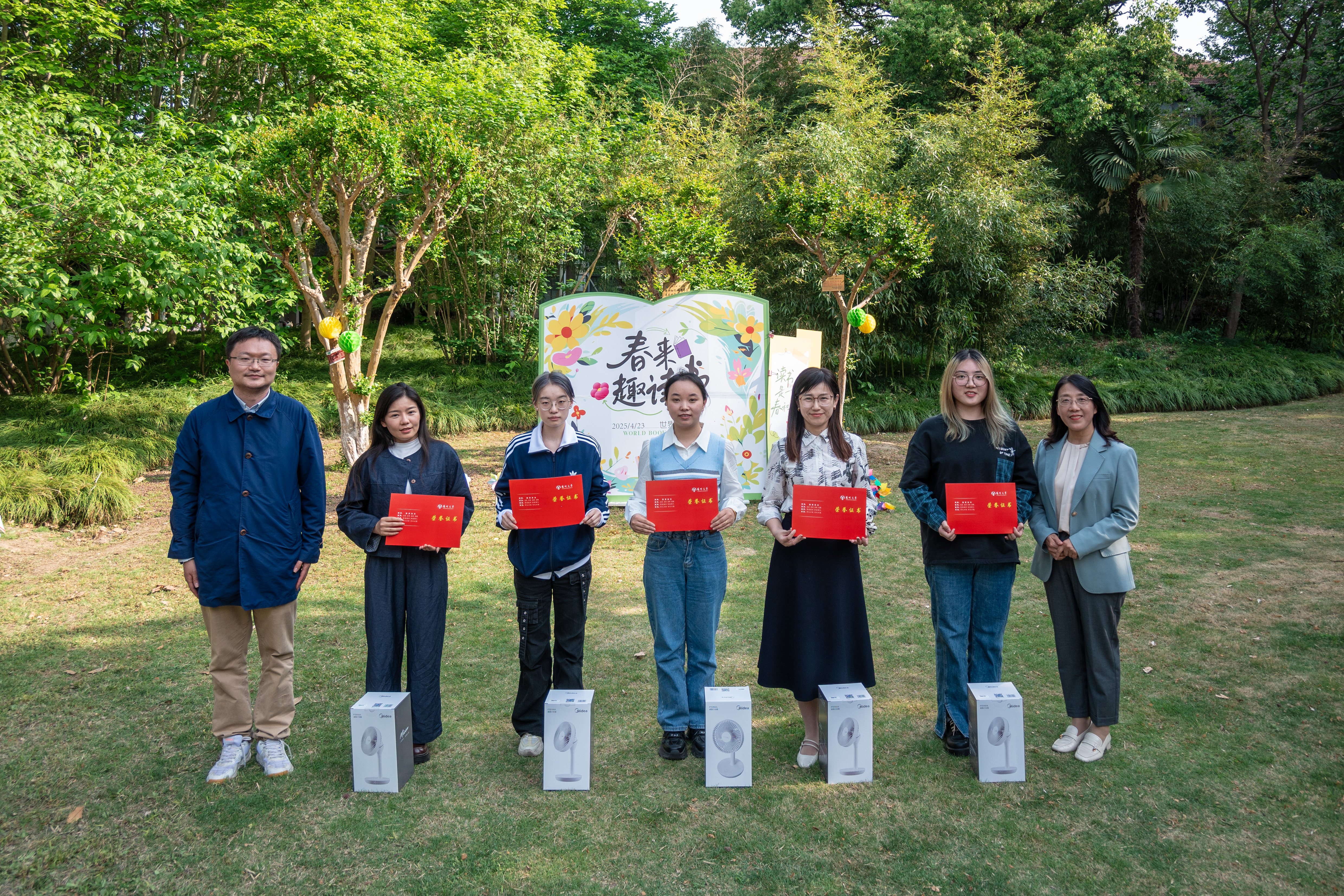 4月23日下午,由校工会主办、教职工阅读协会协办的“以花为信,阅见春深”世界读书日主题活动在敬文图书馆前草坪举行。校工会及文学院相关负责同志、校工会常委、教职工阅读协会会长以及协会成员、主题征文比赛获奖教师代表、文学院及教育科学学院(师范学院)(学前教育学院)师生代表等参加活动。