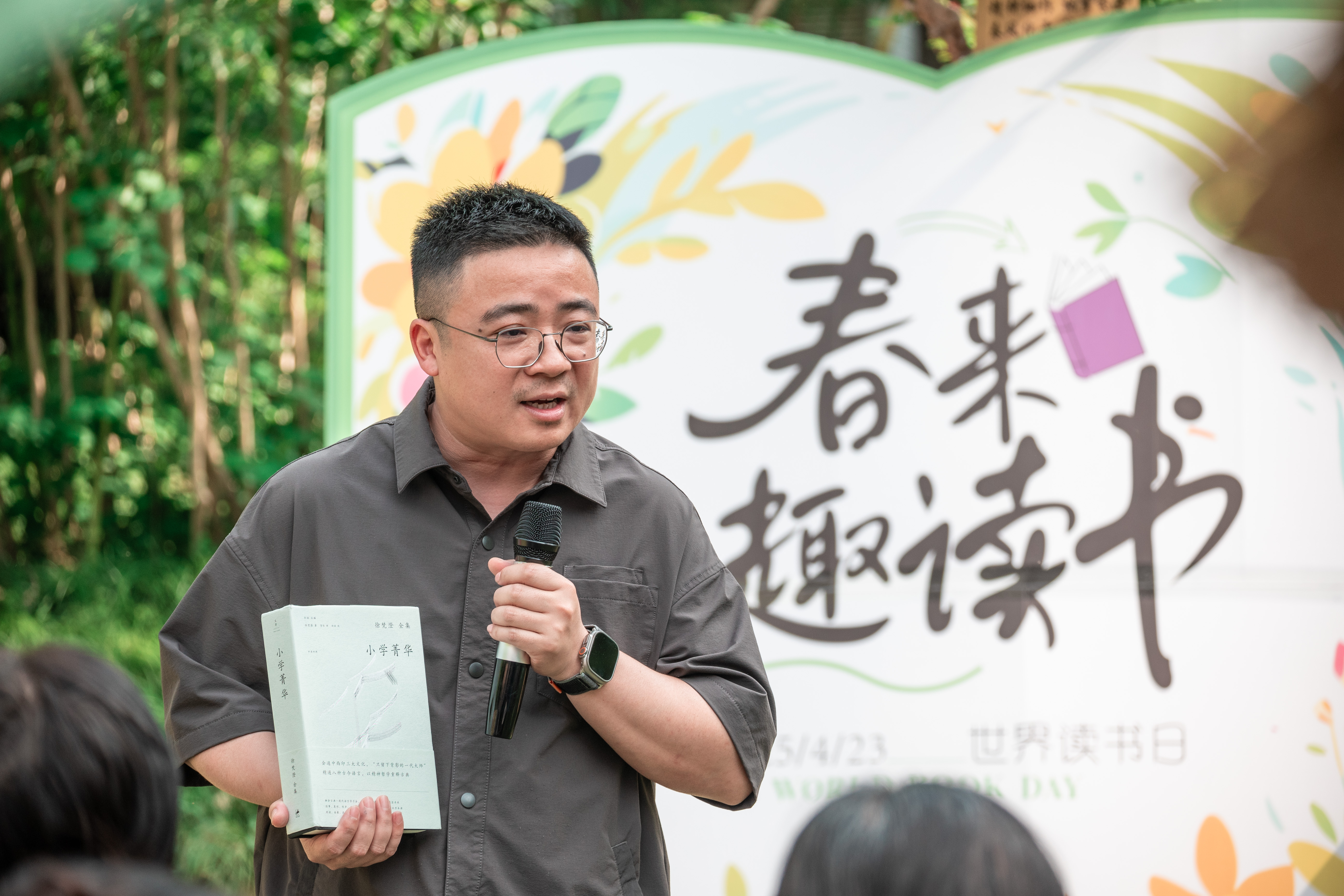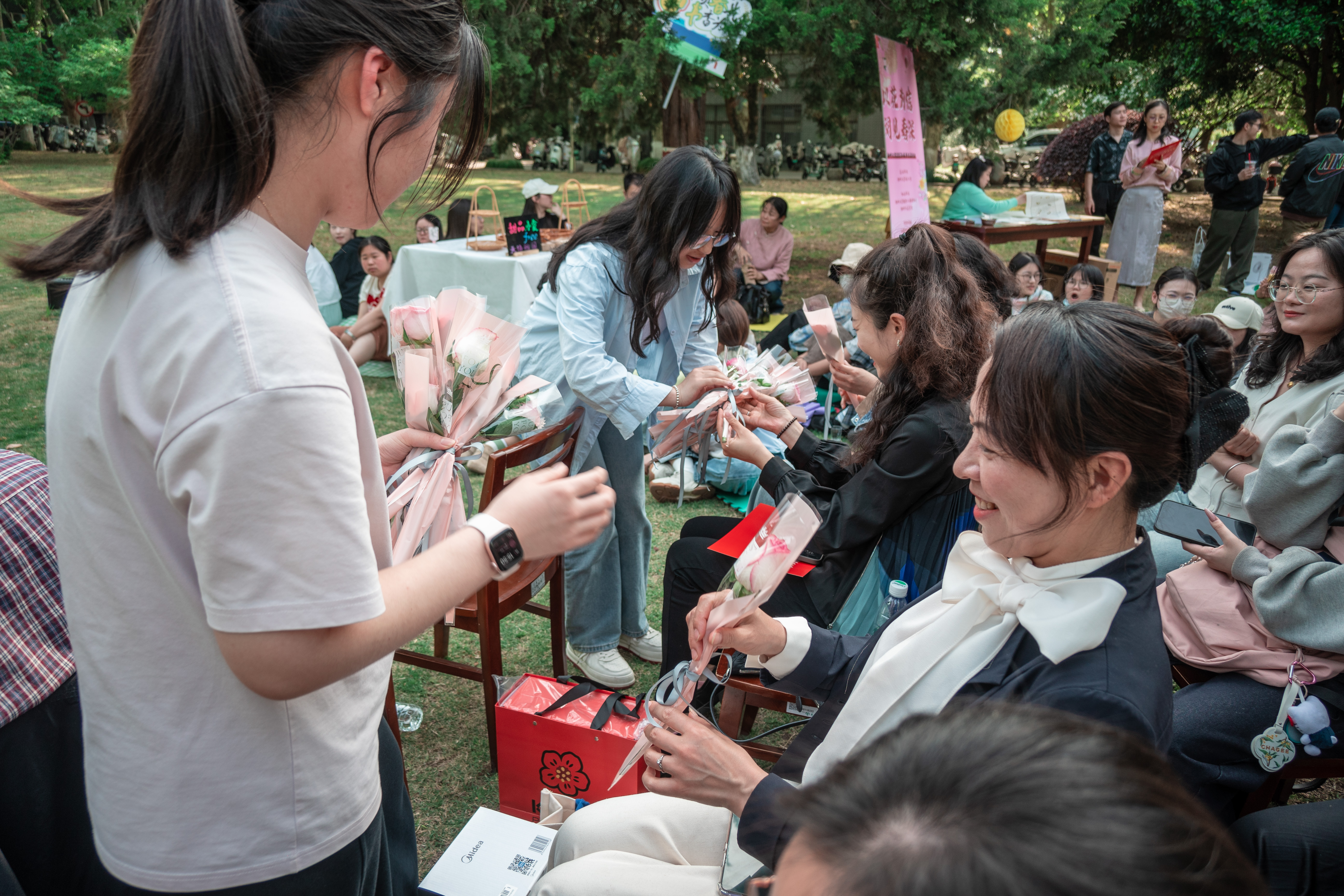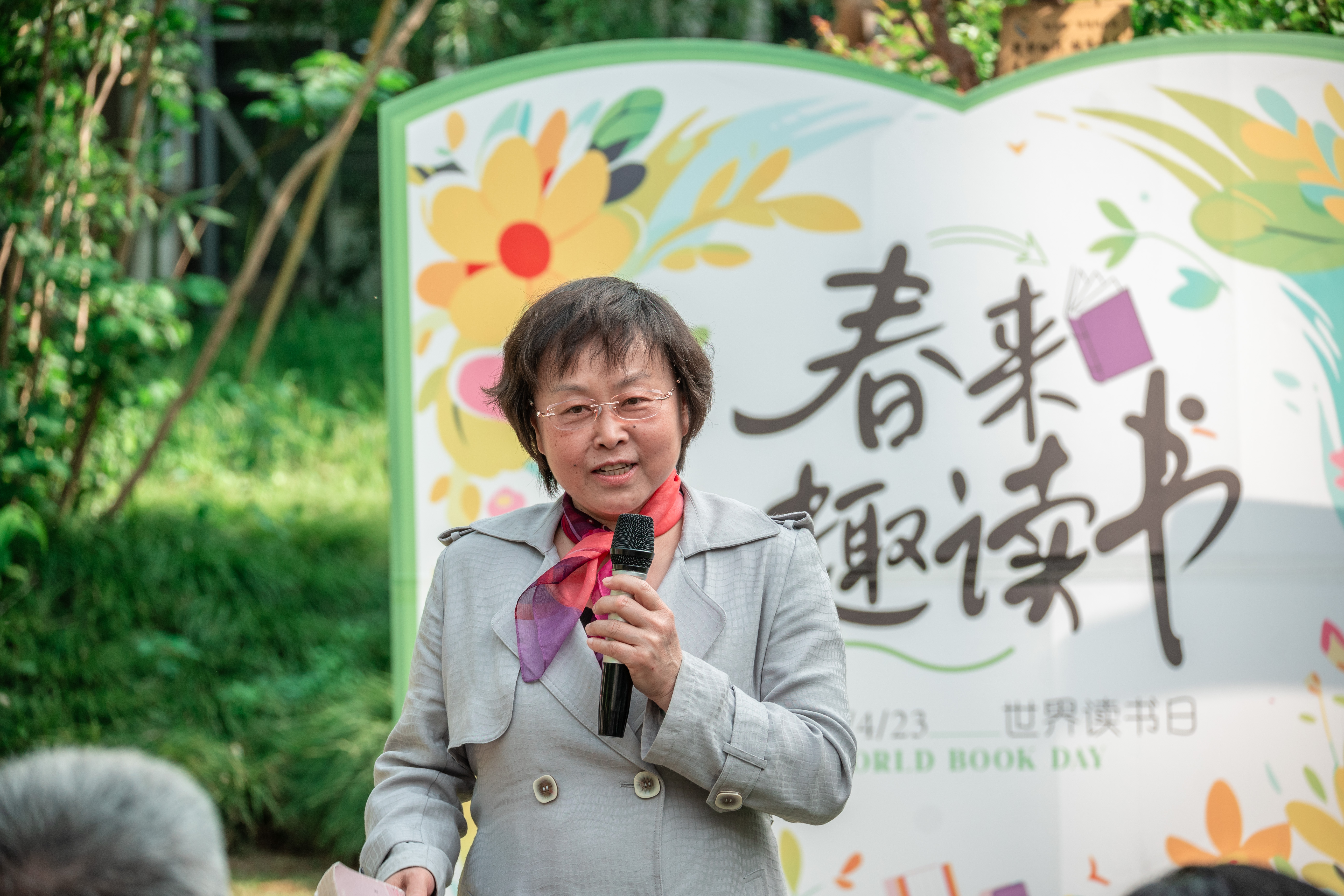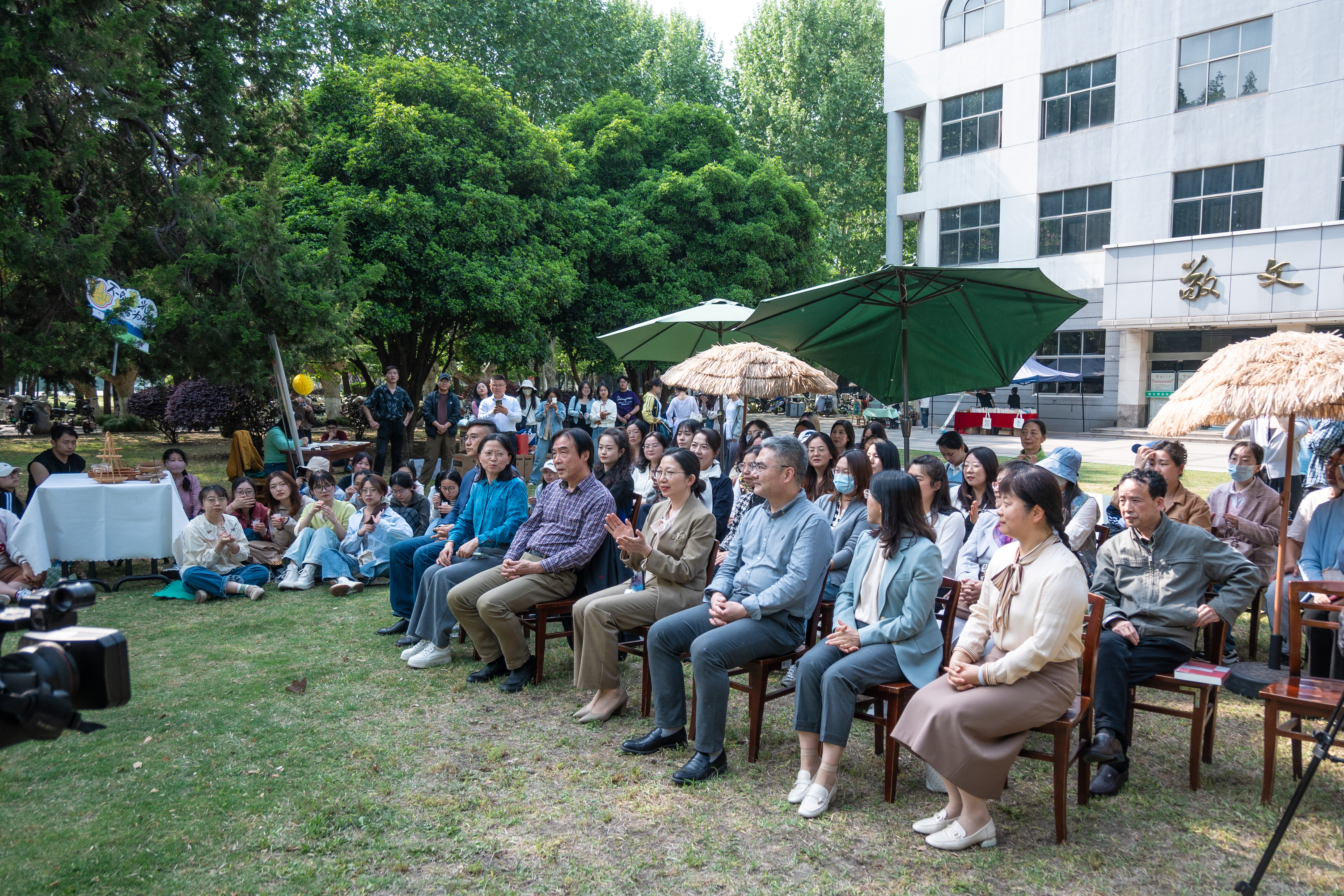4月23日下午,由校工会主办、教职工阅读协会协办的“以花为信,阅见春深”世界读书日主题活动在敬文图书馆前草坪举行。校工会及文学院相关负责同志、校工会常委、教职工阅读协会会长以及协会成员、主题征文比赛获奖教师代表、文学院及教育科学学院(师范学院)(学前教育学院)师生代表等参加活动。