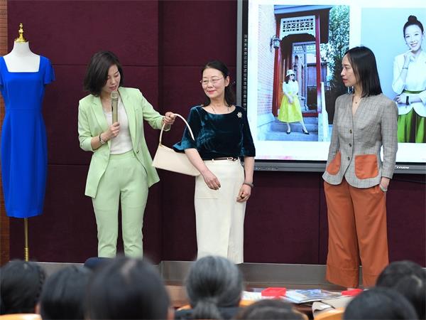 形象礼仪管理师lily老师为大家详细讲解如何根据不同的肤色、容貌特征、身材等挑选最适合自己的服装颜色和款式。形象管理师邀请我校女教职工上台,以她们为“模特”,现场搭配互动示范教学,“模特”老师们在形象管理师团队的帮助下,优雅变身,展现出与平日不一样的美。