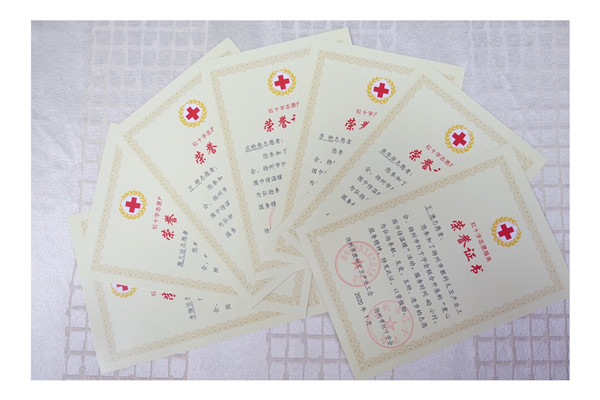活动结束后,王逸、皋华萍、李艳、成晓燕、方婷、施文洁、李婉贤等7位老师获得扬州市教科文卫产业工会和扬州市红十字会联合颁发的荣誉证书。