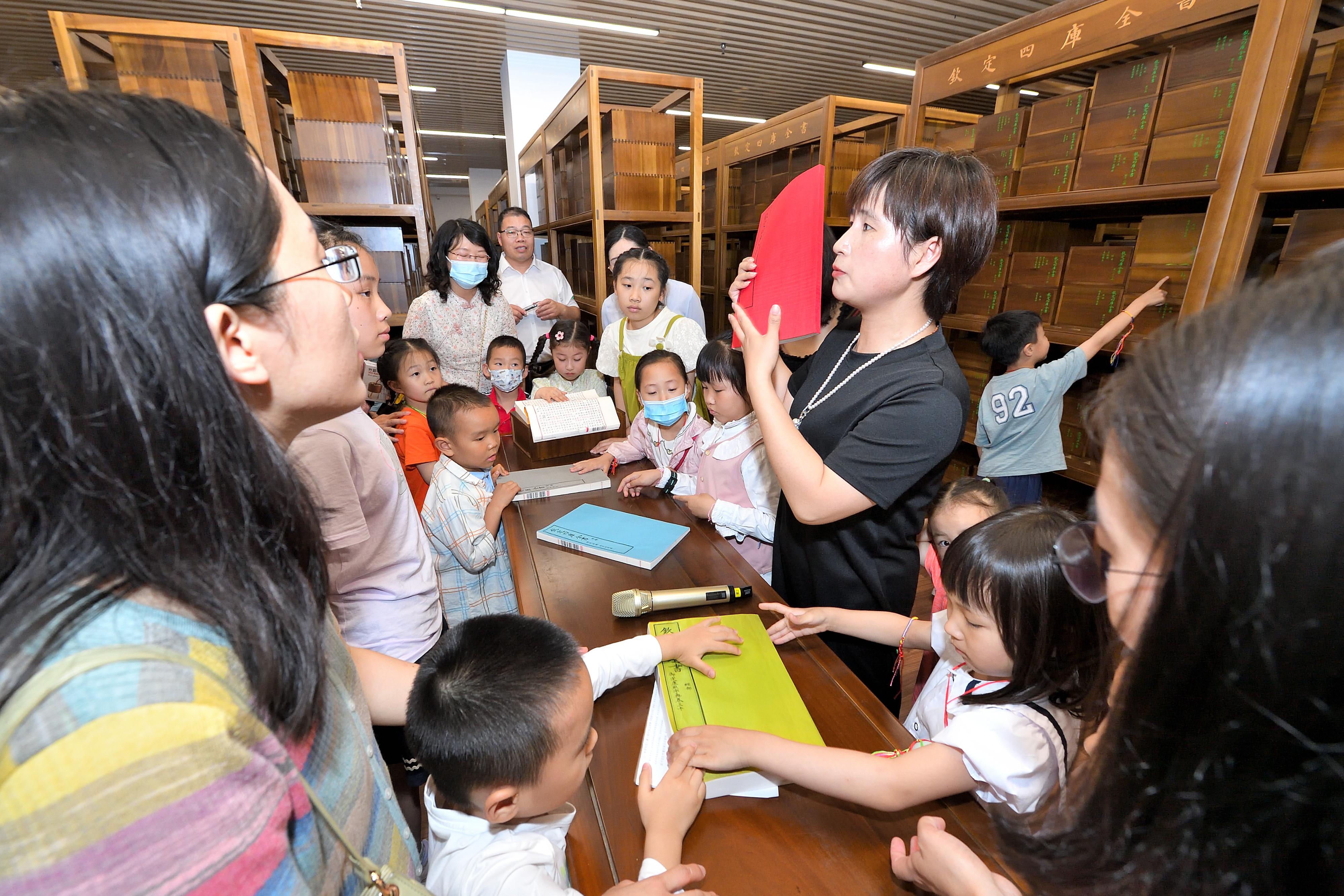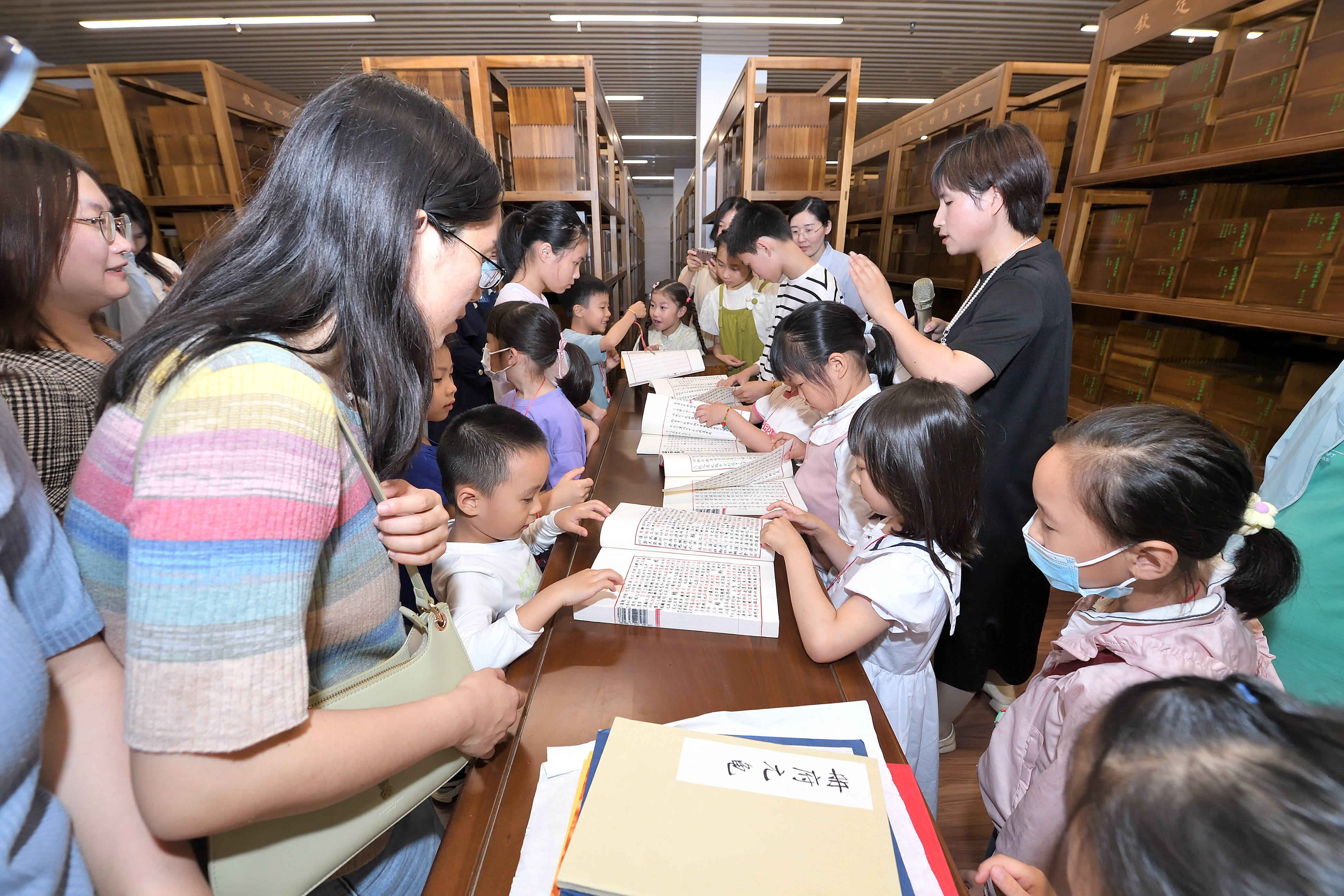 “展端午”环节,家长与孩子们观赏了与端午相关的馆藏典籍,并进入四库全书库房参观了图书馆入藏之影印本文津阁《四库全书》。