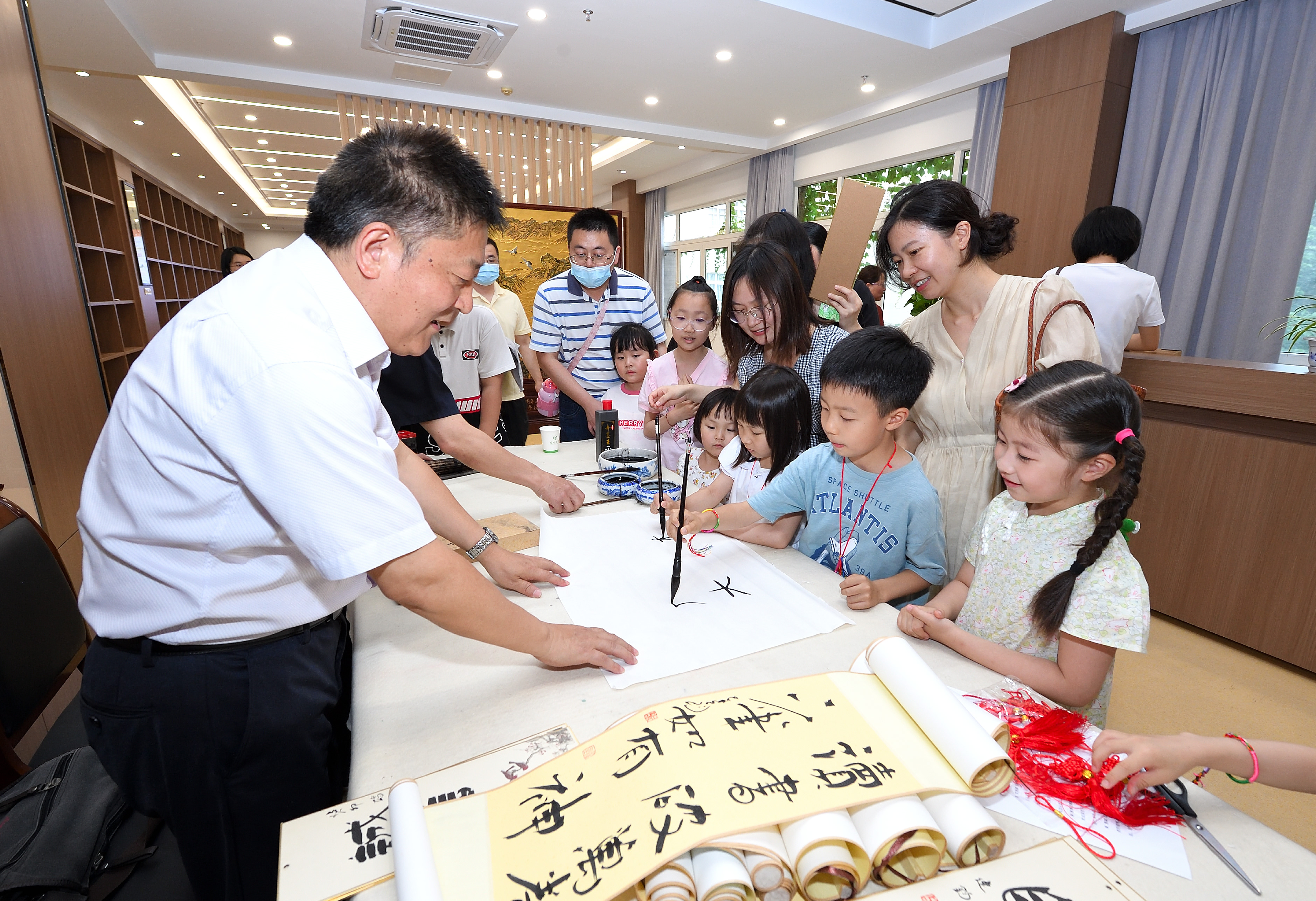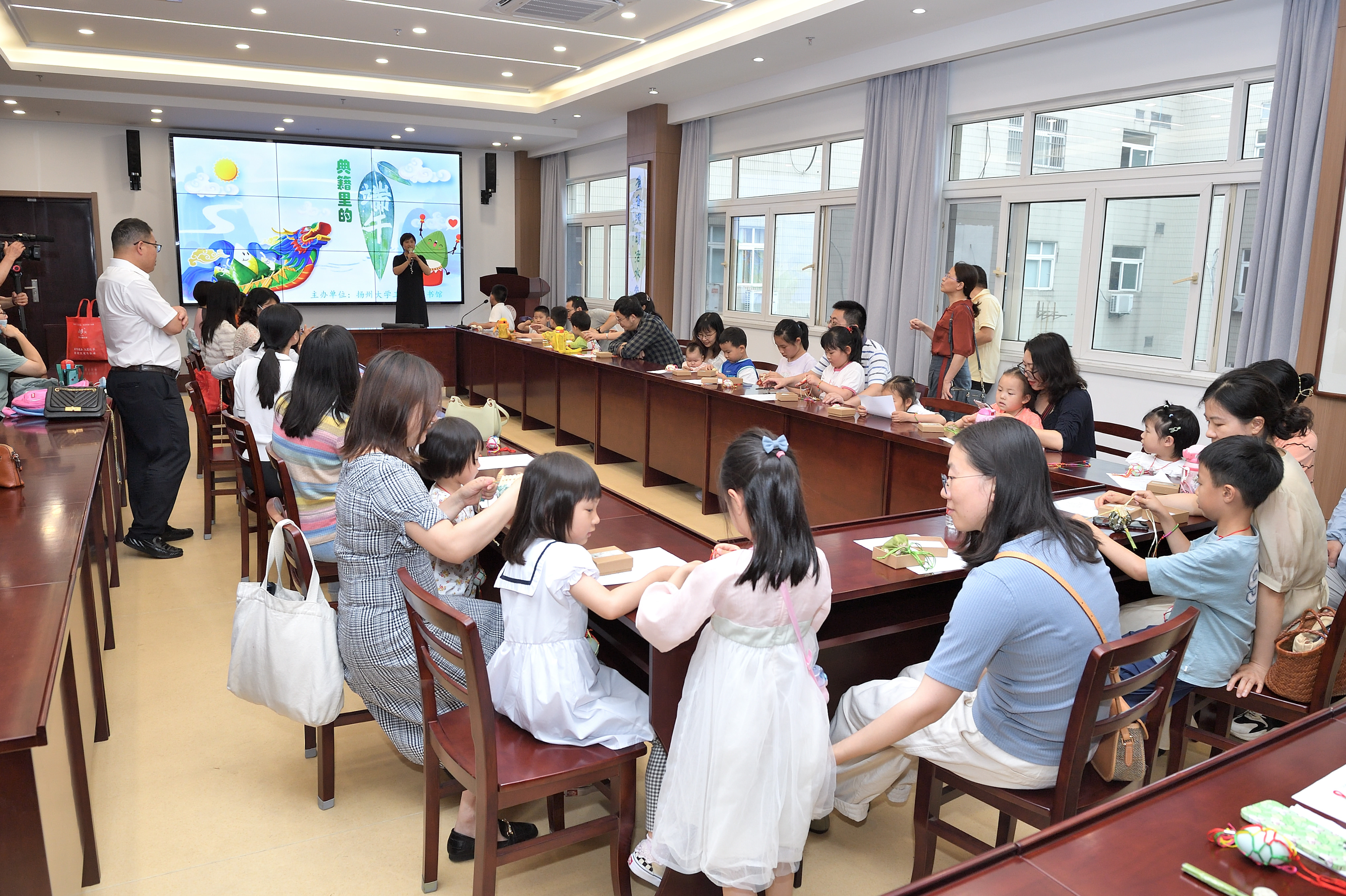 弘扬传统文化,感受浓情端午。6月18日下午,校工会与图书馆在荷花池校区图书馆四楼文汇阁共同举办了“典籍里的端午”沉浸式文化体验活动。来自各二级工会的教职工以家庭为单位参加活动。