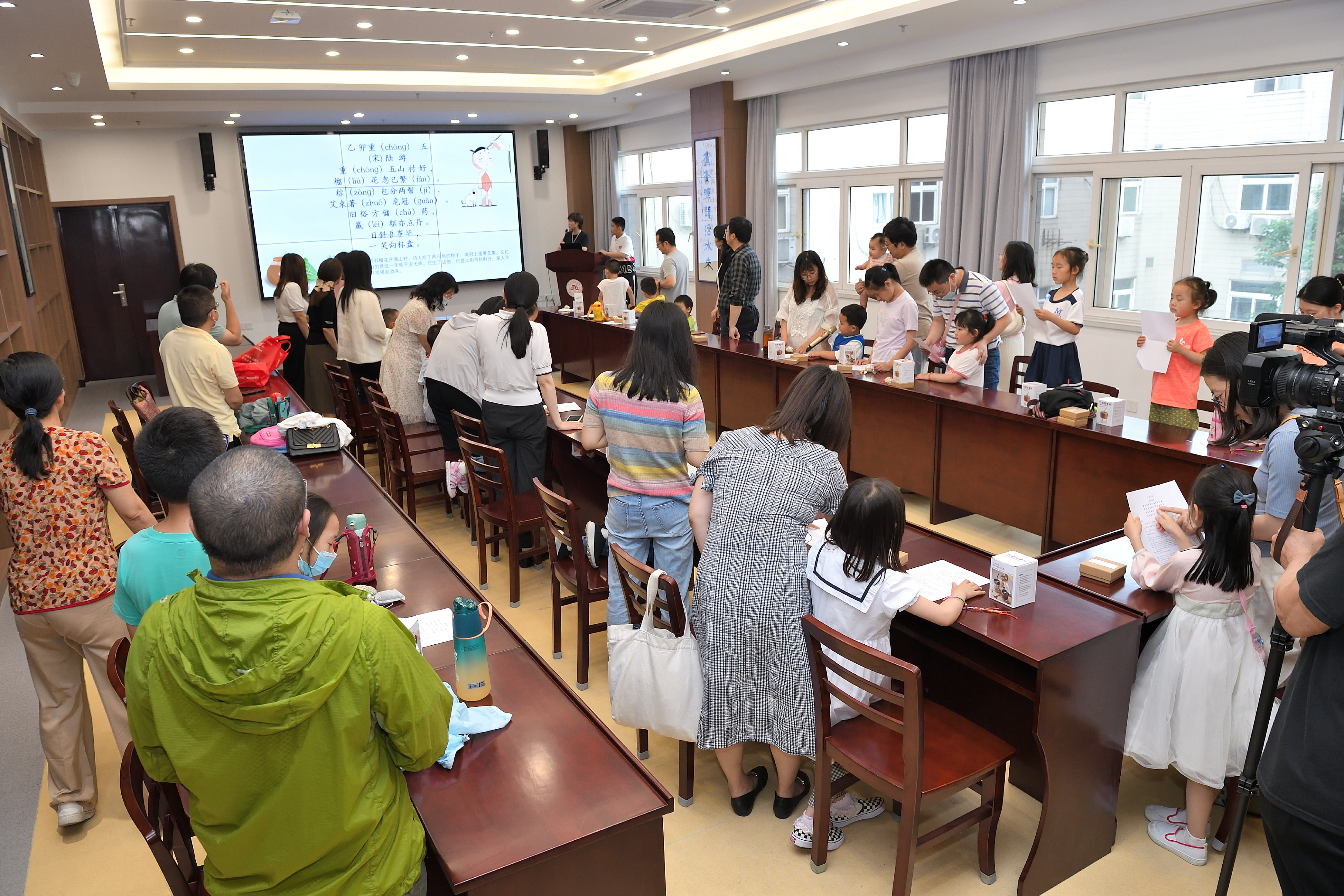 “诵端午”环节,全体家长与小朋友们齐声诵读宋代诗人陆游的五言律诗《乙卯重五诗》,家长们富有感情的朗诵伴随着孩子们稚嫩而响亮的童声,让大家仿若置身在旧时江南端午时节那多彩多样的风俗民情里,感受到一份生活的真味。