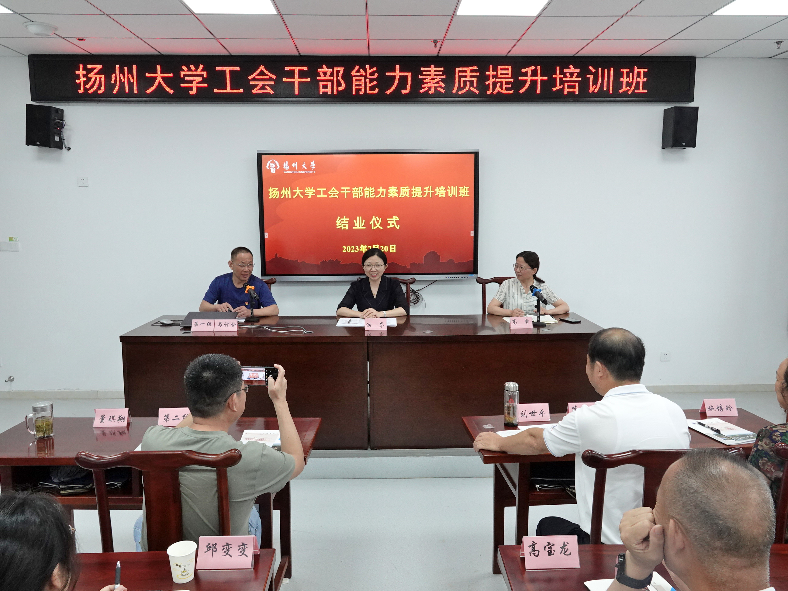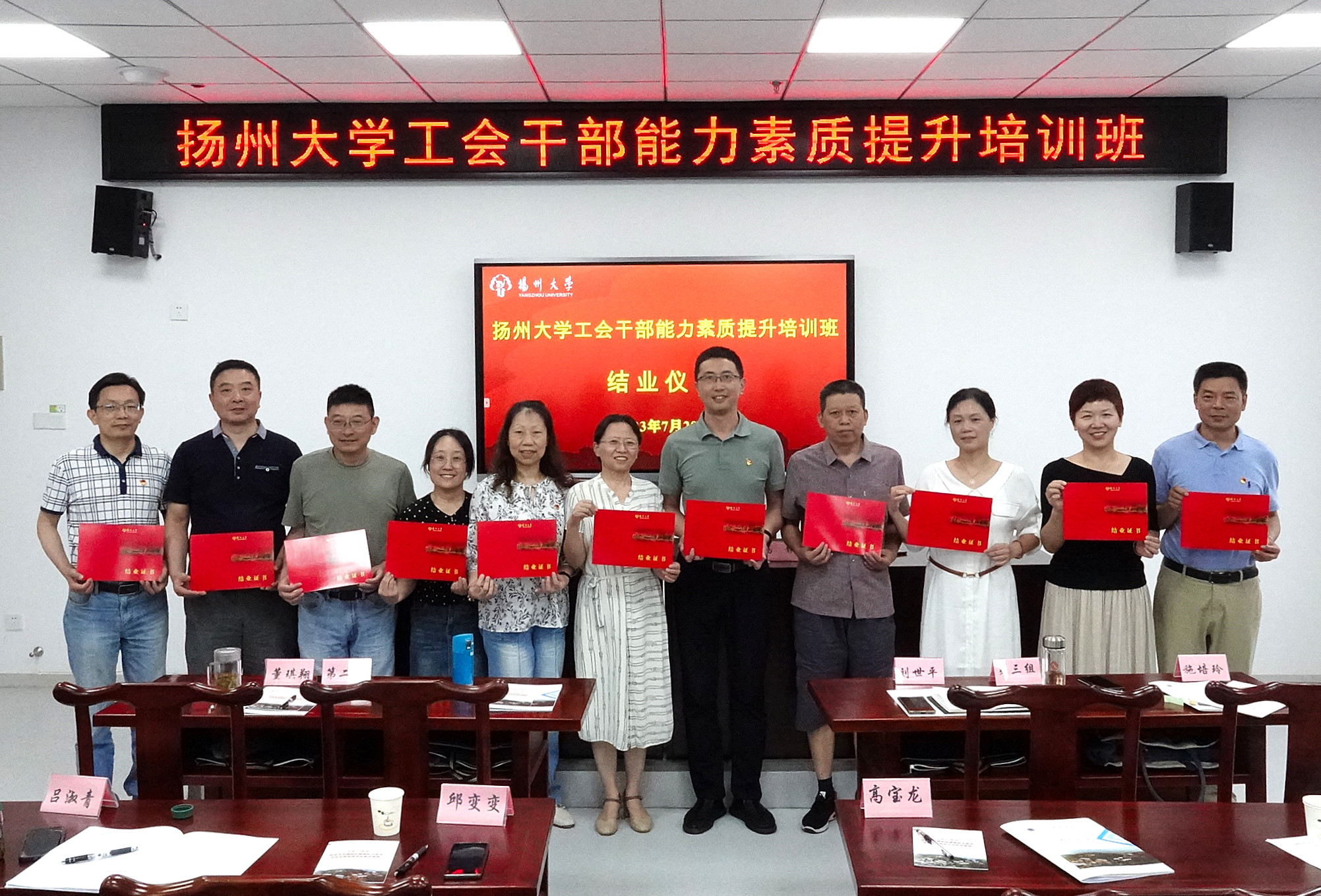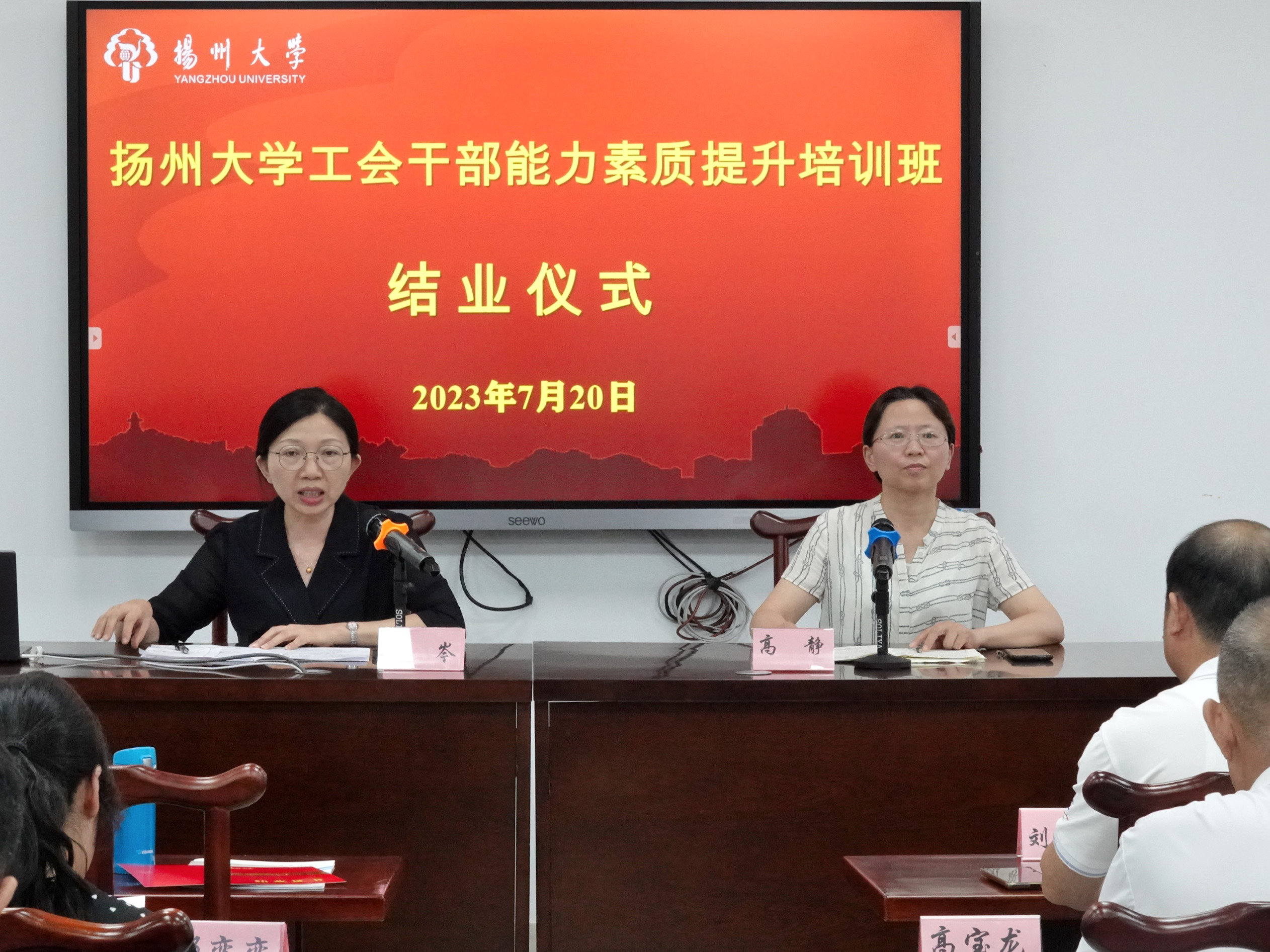 校工会主席洪岑、副主席高静为学员们颁发了结业证书。在总结讲话中,洪主席希望学员们通过培训学习,提高政治素质、拓展工作思路、创新工作方法、增进工作交流、凝聚工作合力、提升工作效能。“不日新、必日退”,要注重学习成果转化,把学习的内容真正落实到今后的工会工作中去。借此机会,洪主席还带领大家回顾了校工会上半年工作举措,部署了下半年重点工作,动员全体工会干部切实扛牢政治职责,维护教职工合法权益,竭诚服务教职工,彰显桥梁纽带作用,团结带领广大教职工以实干实绩为学校早日跻身国家“双一流”建设高校行列,奋力谱写高水平研究型大学建设现代化新篇章贡献工会力量。