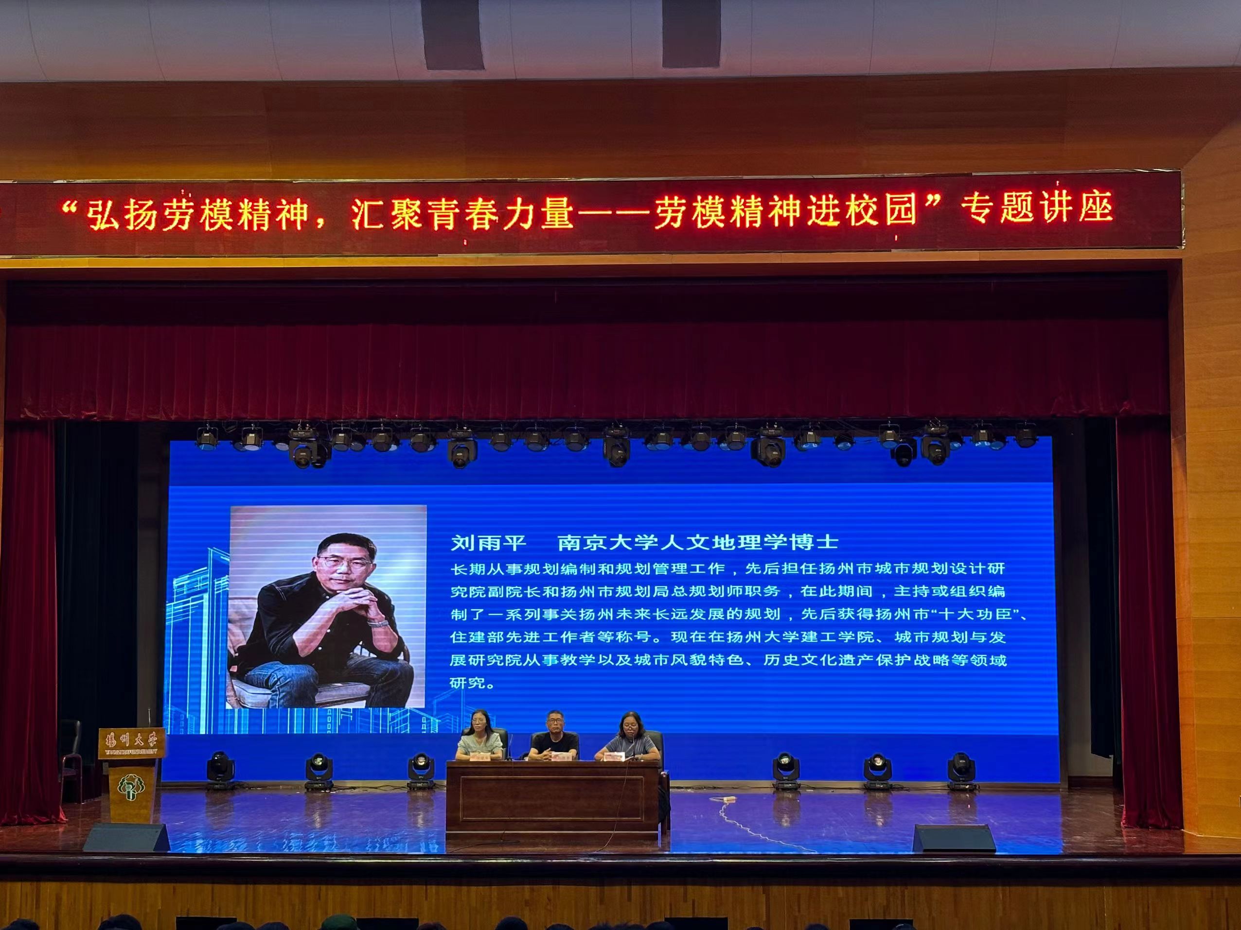 9月8日下午,建筑科学与工程学院邀请获得扬州市十大功臣、住建部先进工作者等荣誉称号的刘雨平老师面向2023级新生,作了“弘扬劳模精神,汇聚青春力量”专题讲座。刘雨平老师分别从他个人的学习工作经历、当代年青人面临的机遇和挑战、如何度过自己的大学生活三个方面,和新生们分享了自己的体会与感悟,并鼓励大家,要珍惜大学美好时光,科学做好人生规划,不怕吃苦与挫折,最终成就美好人生。
