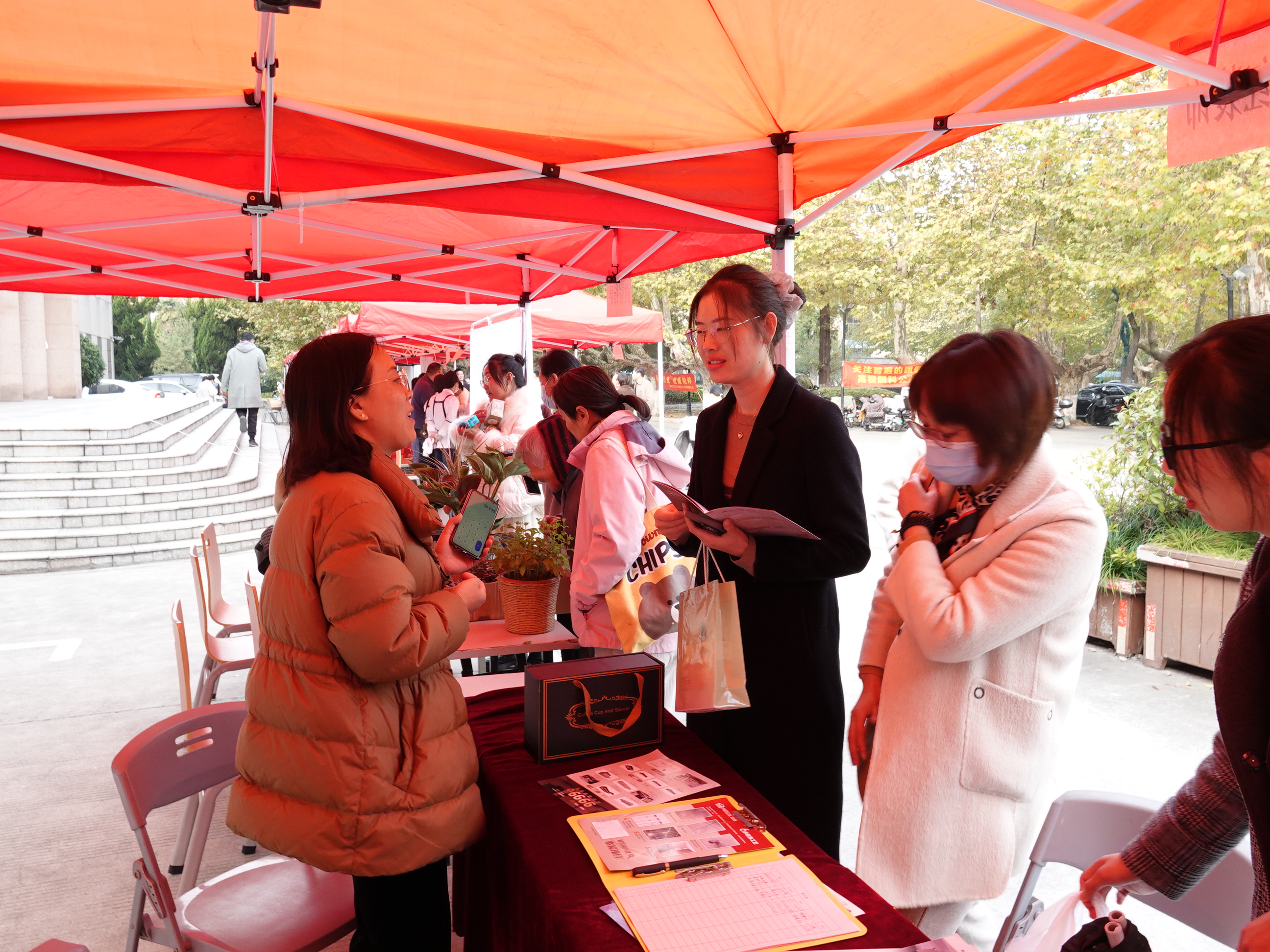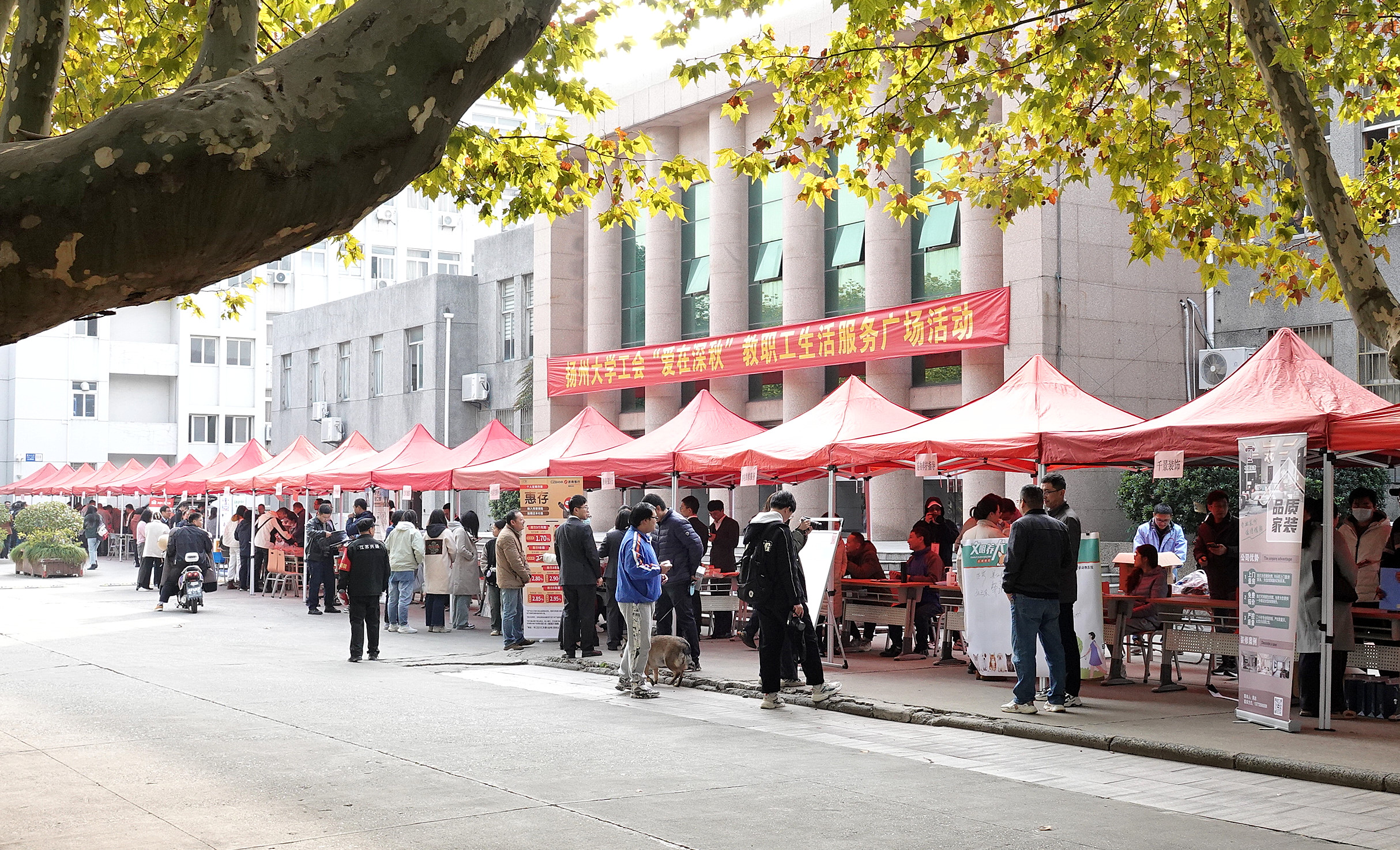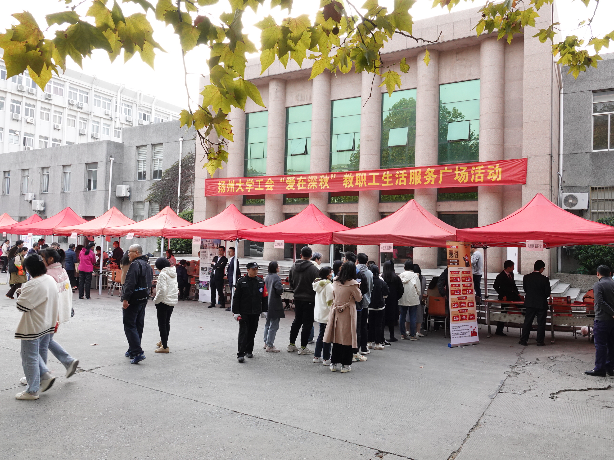 为进一步满足教职工个性化需求,提升教职工幸福指数,11月15日下午,校工会在文汇路校区开展“爱在深秋”生活服务广场活动。