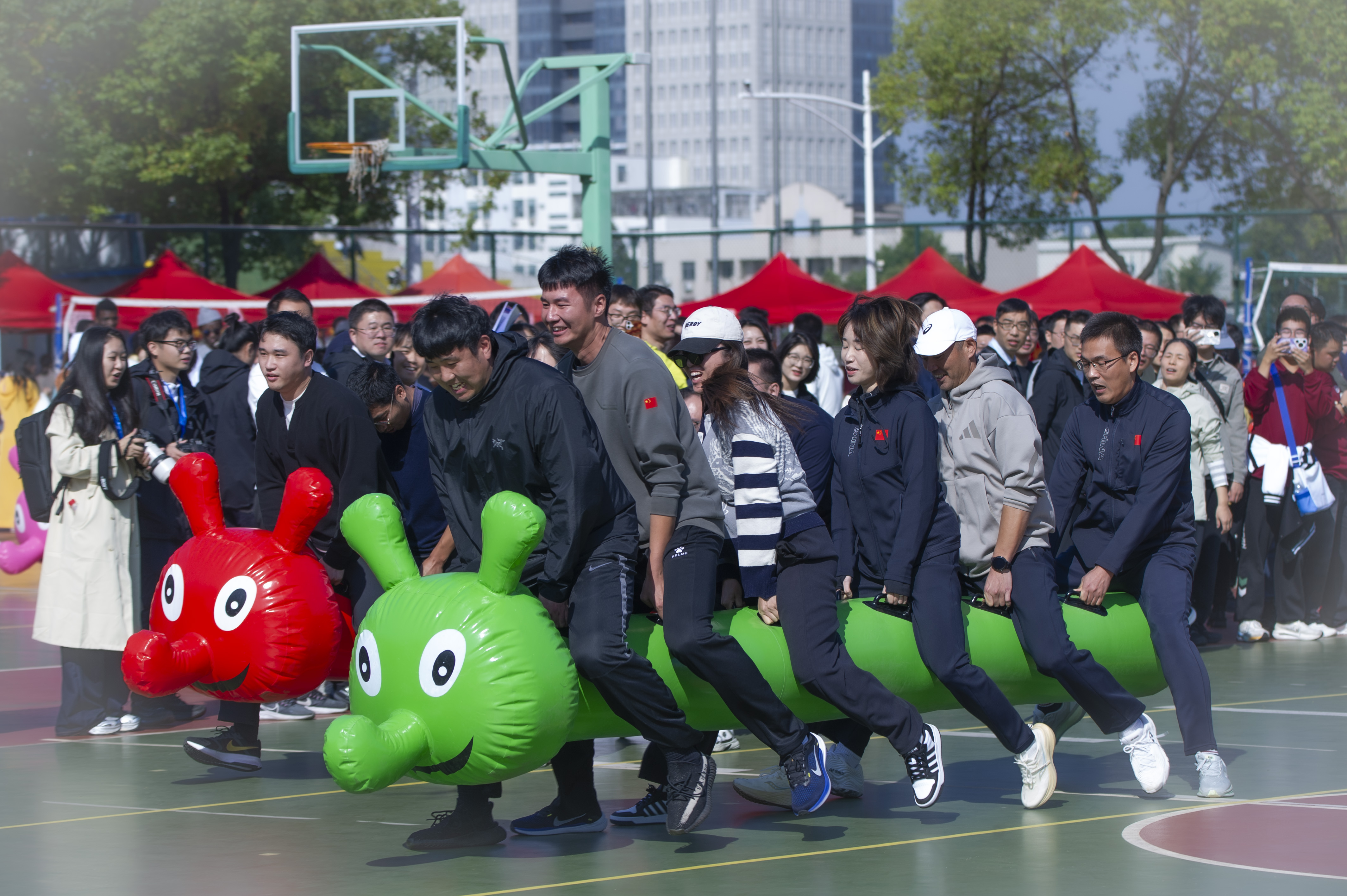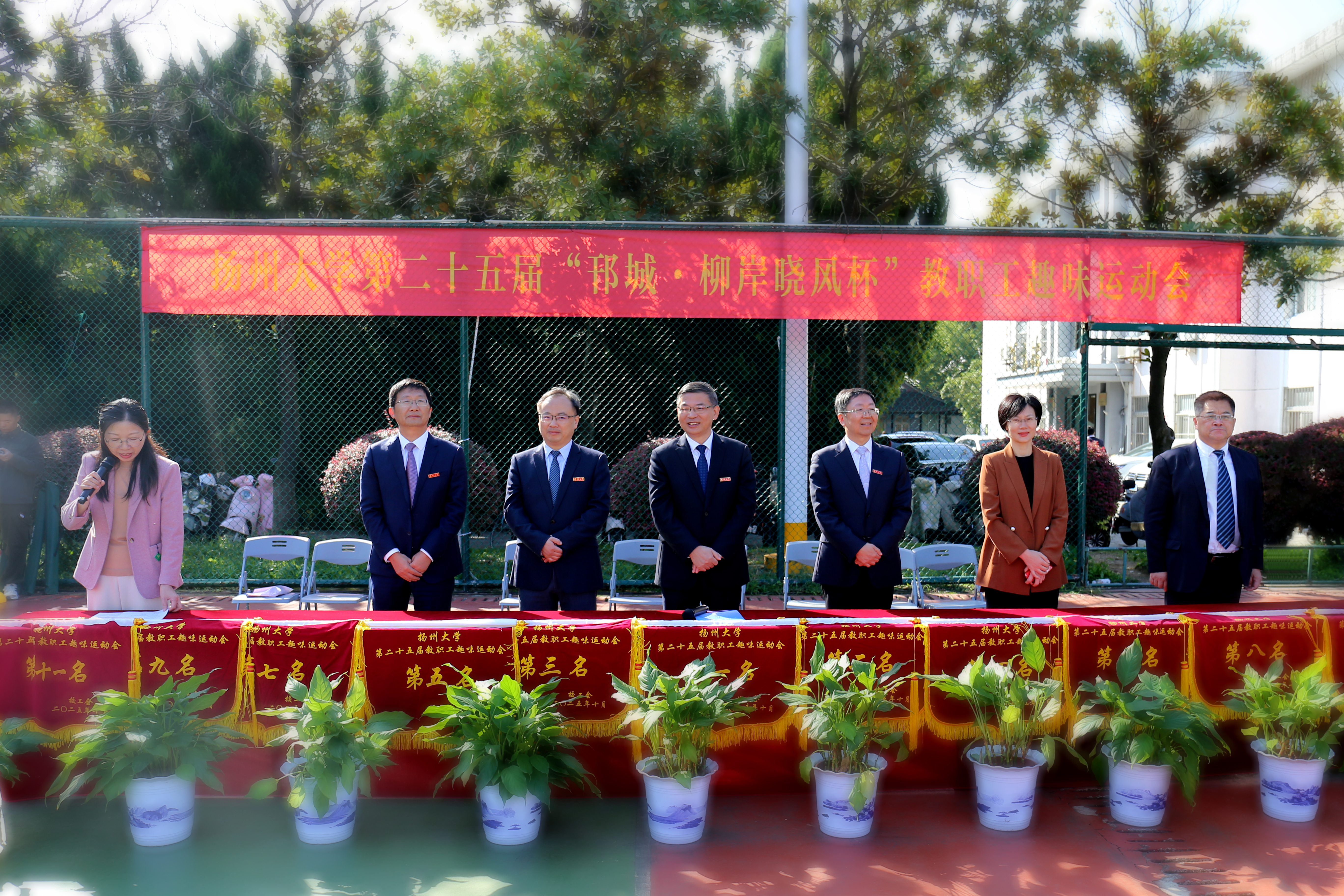 10月24日上午,校工会在文汇路校区篮球场成功举办第二十五届“邗城·柳岸晓风杯”教职工趣味运动会,各二级工会派出39支代表队,共计1000余名教职工参加了比赛。
