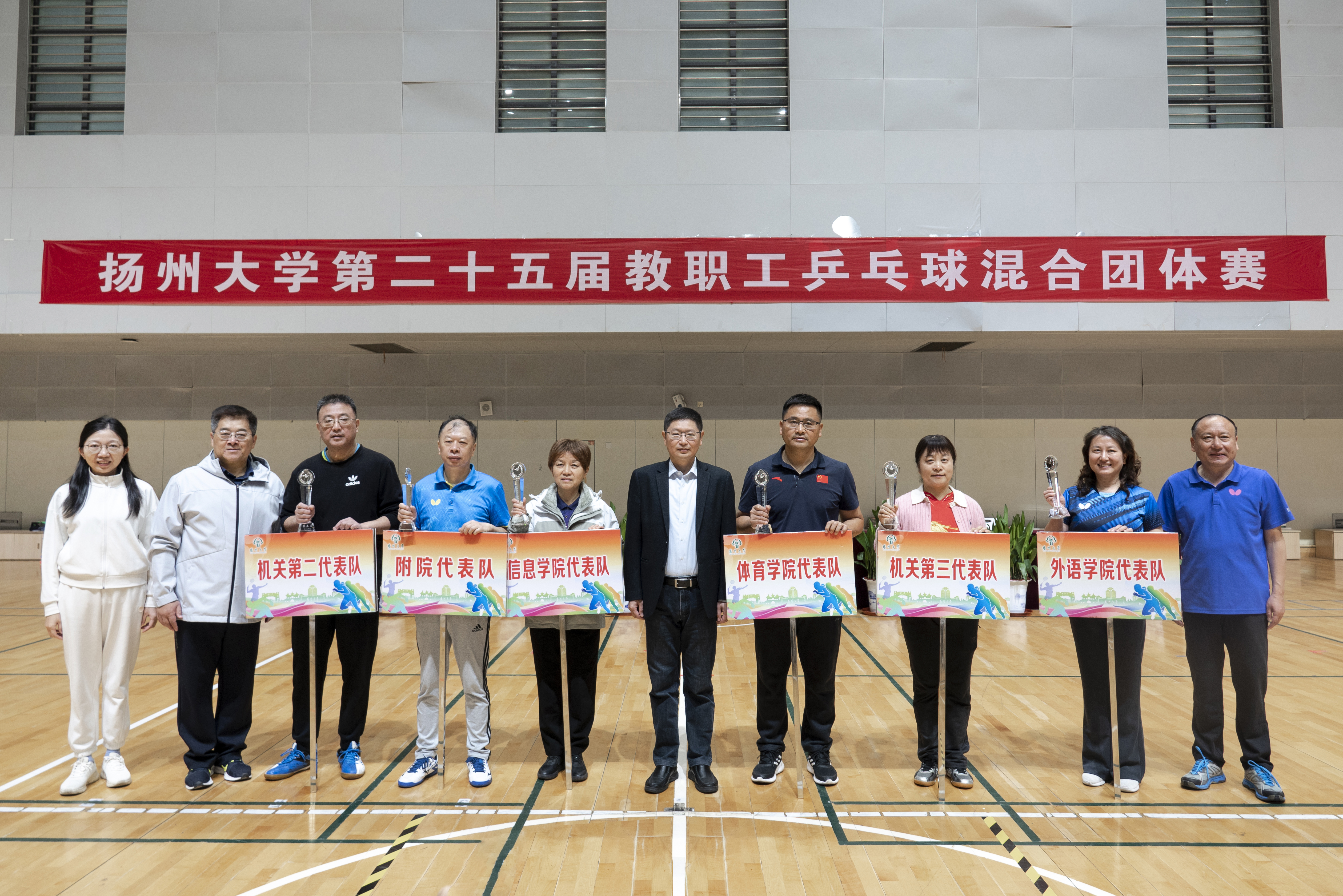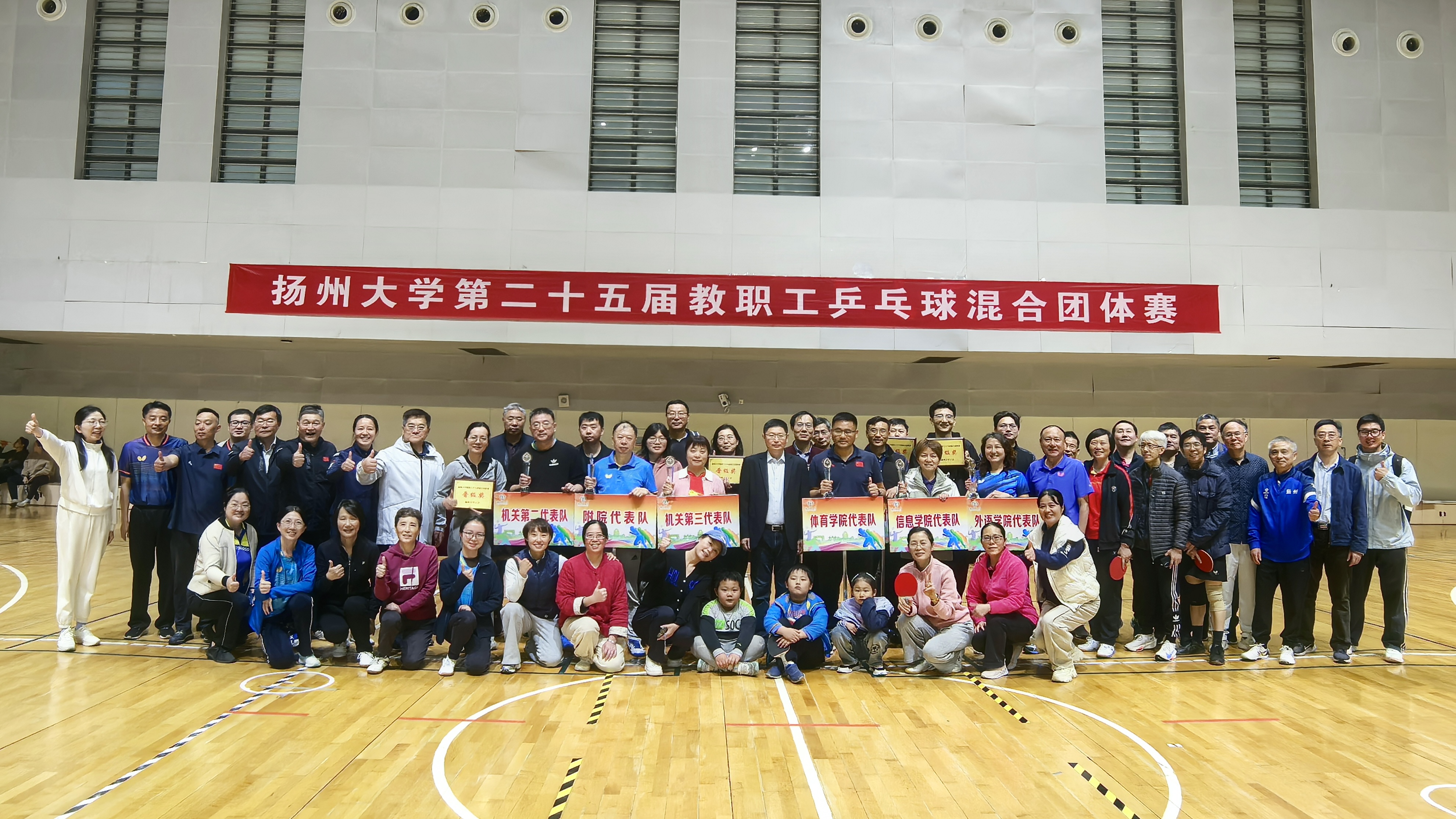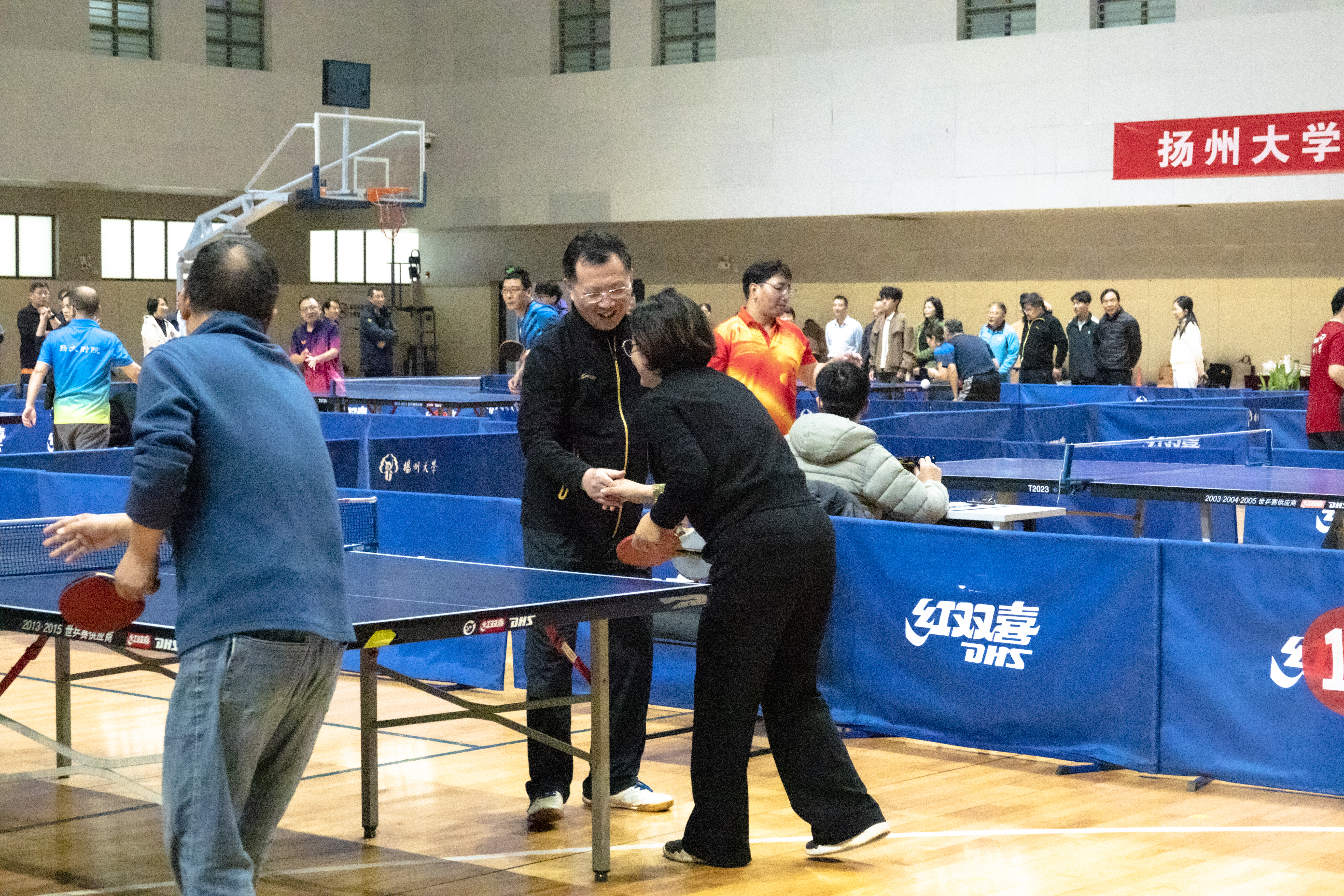 11月1日至2日,校工会在扬子津校区文体馆成功举办扬州大学第二十五届教职工乒乓球混合团体赛。各二级工会派出36支代表队,近500名选手参加了甲A、甲B、乙A、乙B四个组别的比赛。校党委副书记周如军出席开幕式,看望并勉励各代表队。校党委常委、纪委书记、派驻监察专员邱庆峰出席闭幕式,为获奖单位颁发奖杯及奖牌。校党委常委、组织部部长孙鹏出席开幕式和闭幕式。
