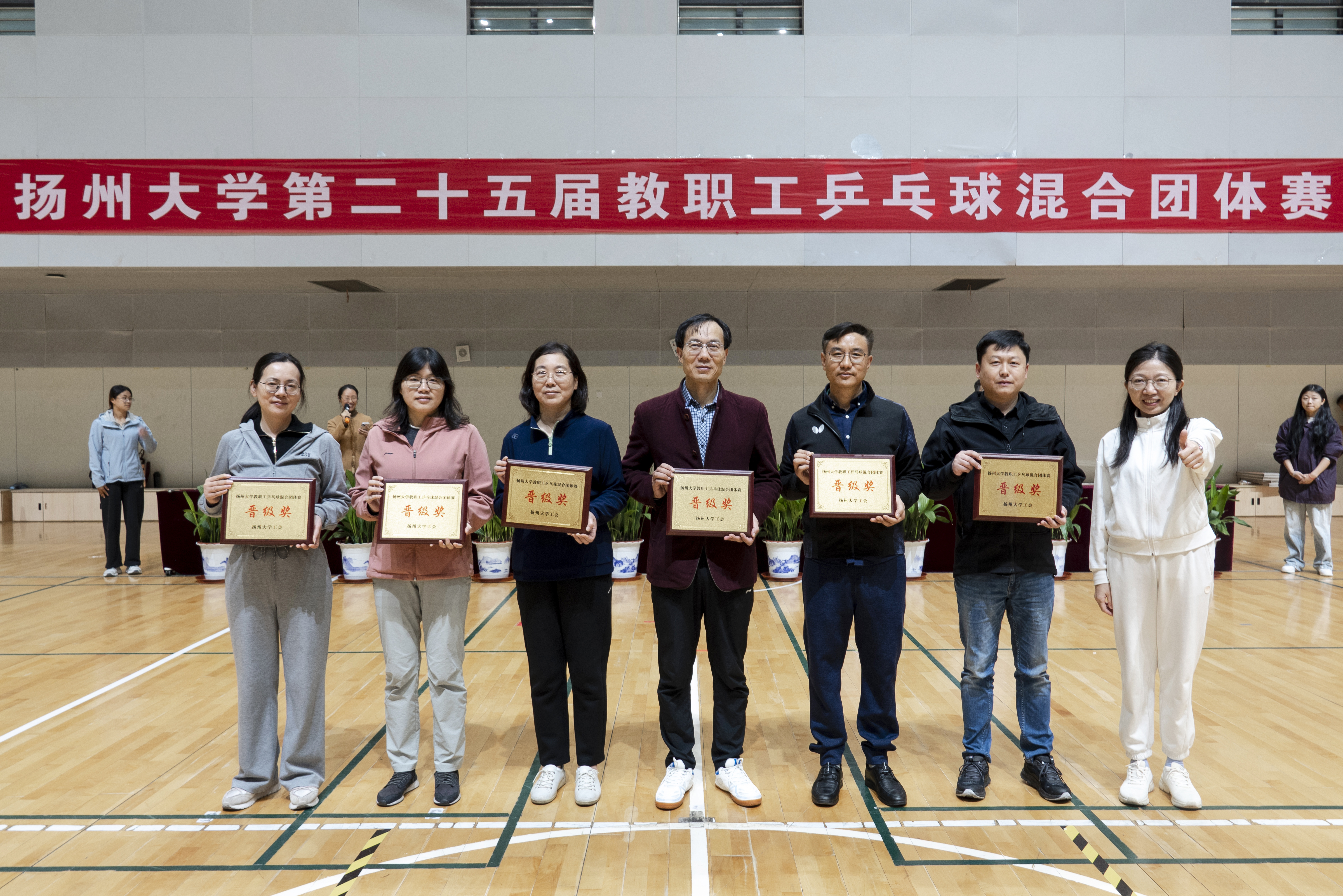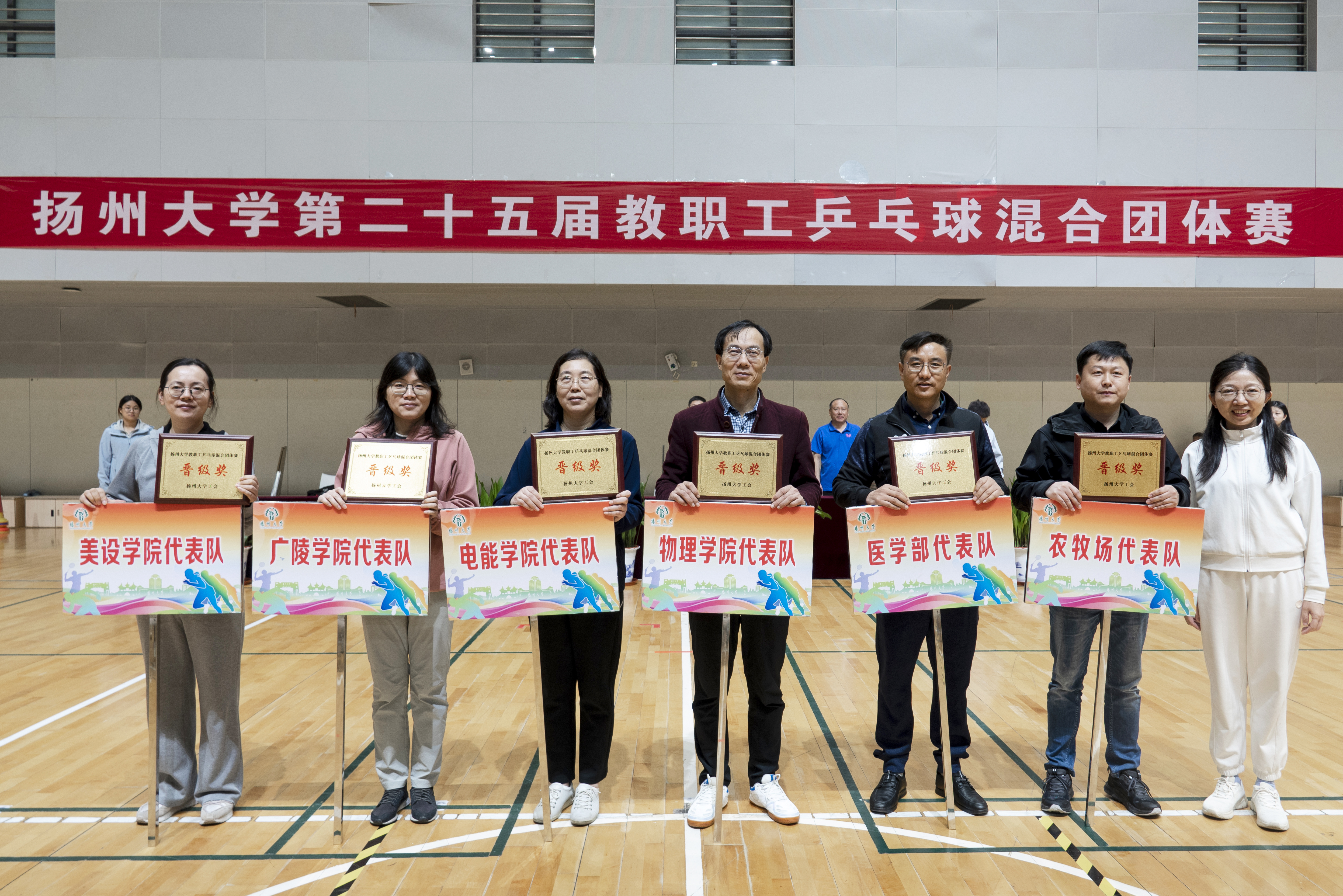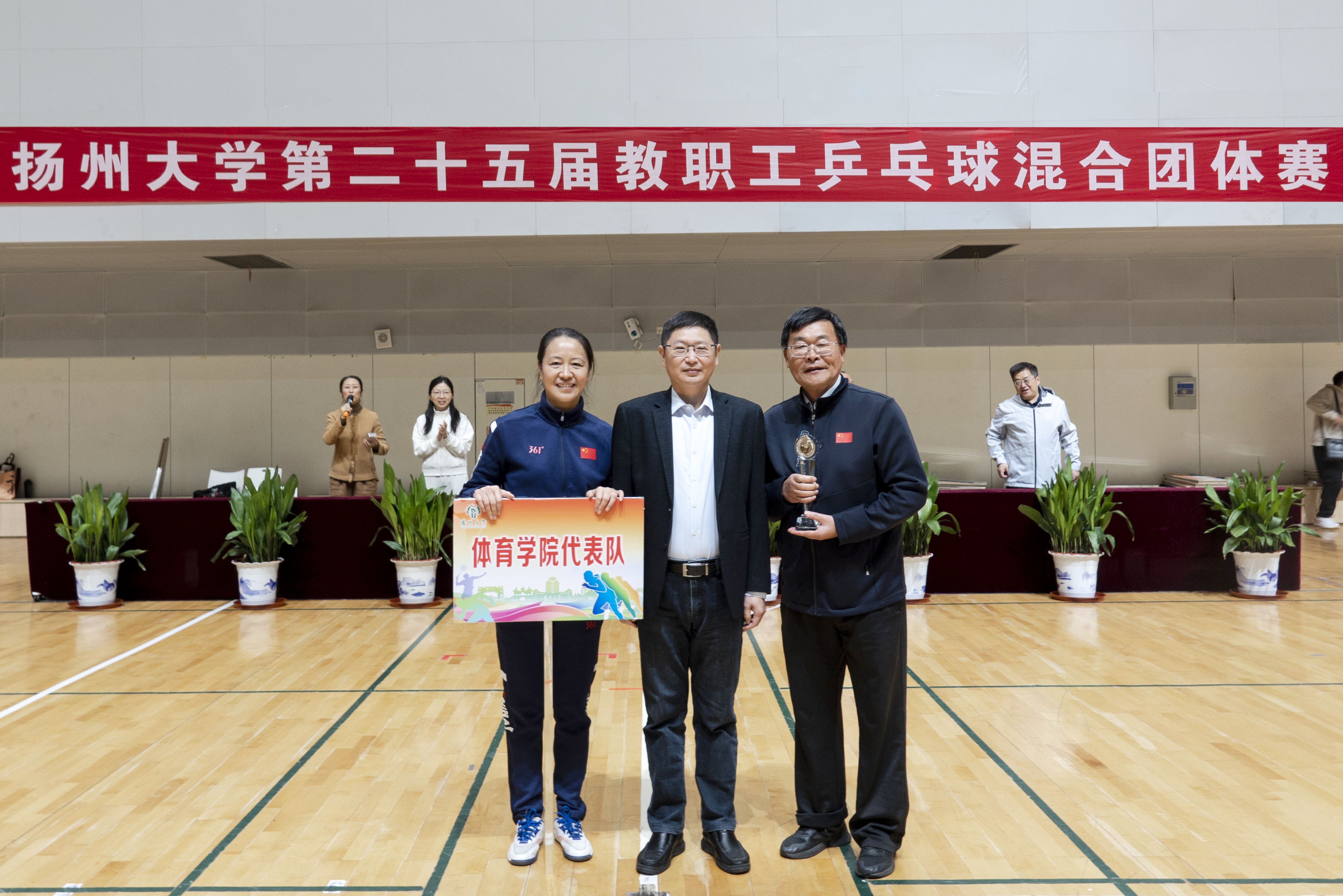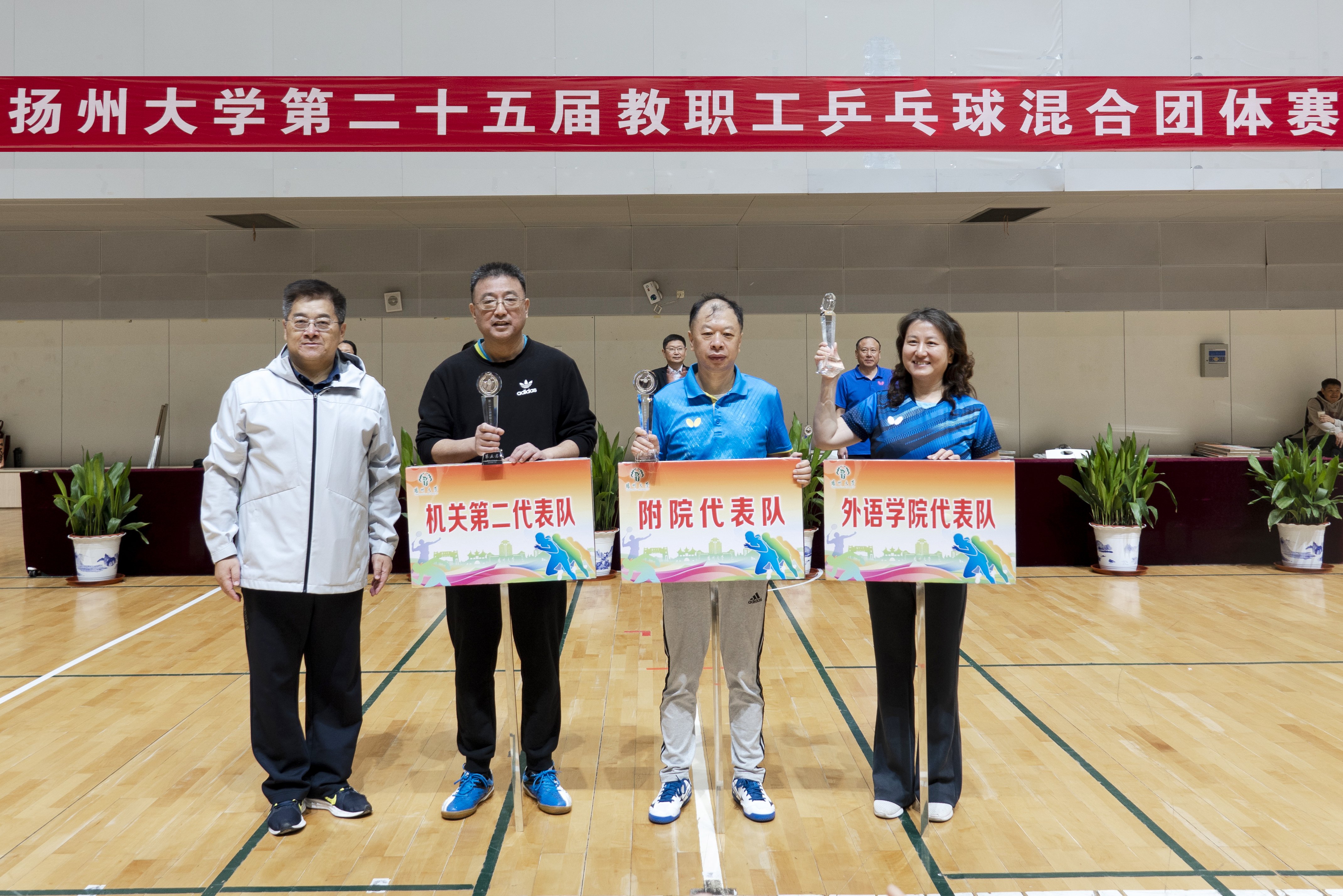11月1日至2日,校工会在扬子津校区文体馆成功举办扬州大学第二十五届教职工乒乓球混合团体赛。各二级工会派出36支代表队,近500名选手参加了甲A、甲B、乙A、乙B四个组别的比赛。校党委副书记周如军出席开幕式,看望并勉励各代表队。校党委常委、纪委书记、派驻监察专员邱庆峰出席闭幕式,为获奖单位颁发奖杯及奖牌。校党委常委、组织部部长孙鹏出席开幕式和闭幕式。