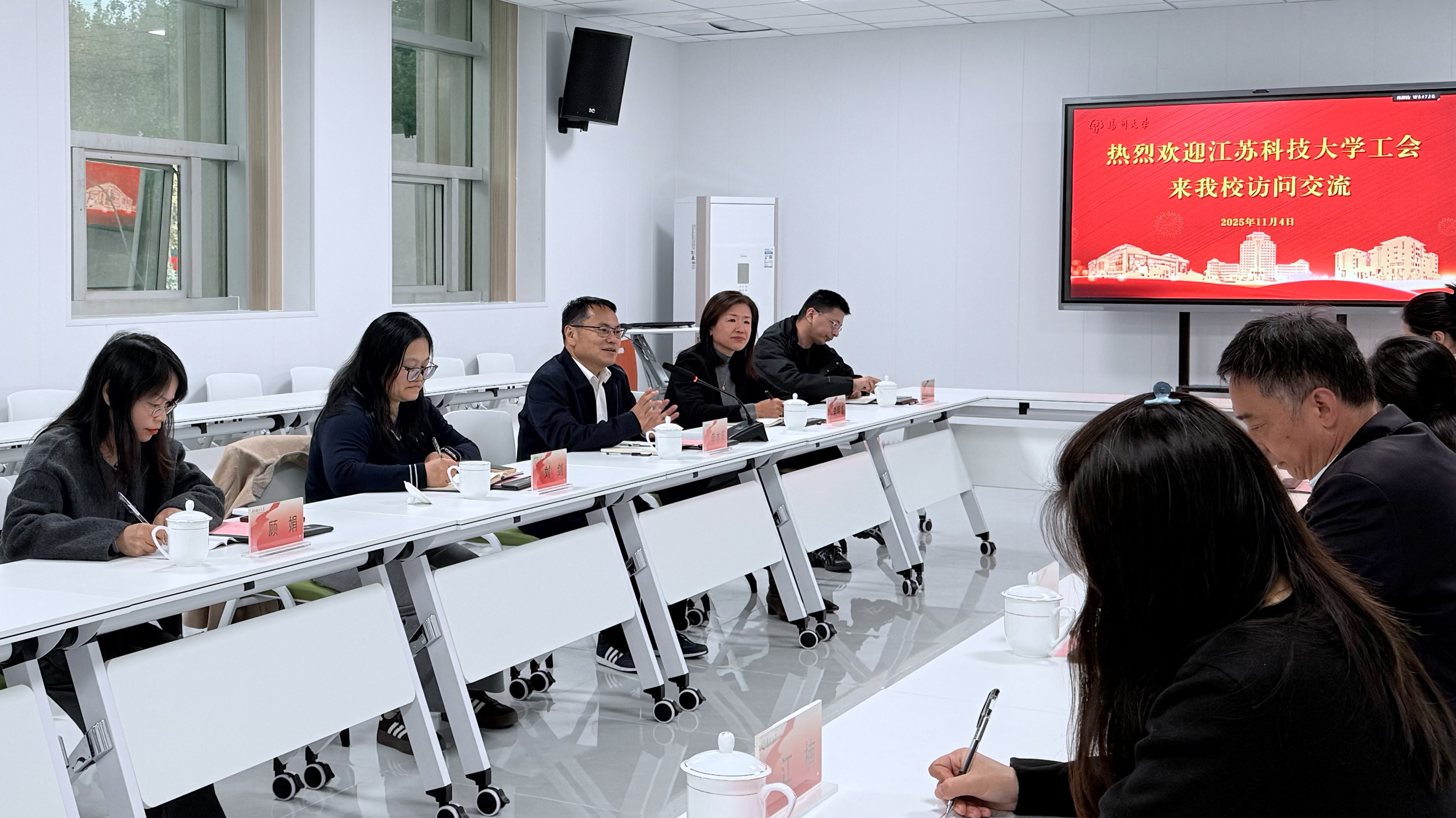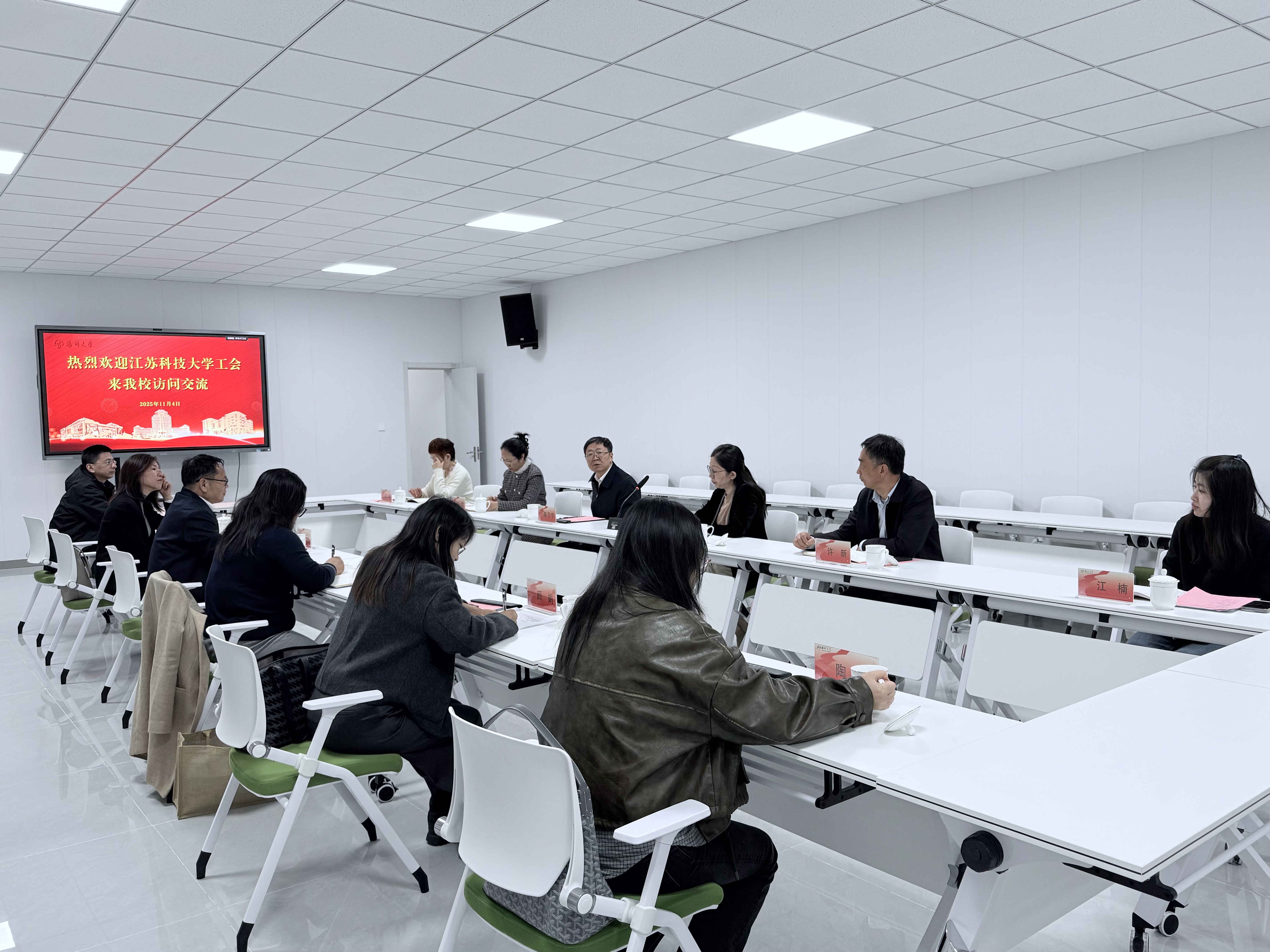 11月4日下午,江苏科技大学党委常委、副校长、工会主席李木旺,工会常务副主席李明睿一行,来我校交流研讨工会工作。校党委常委、副校长蒋乃华出席交流会。