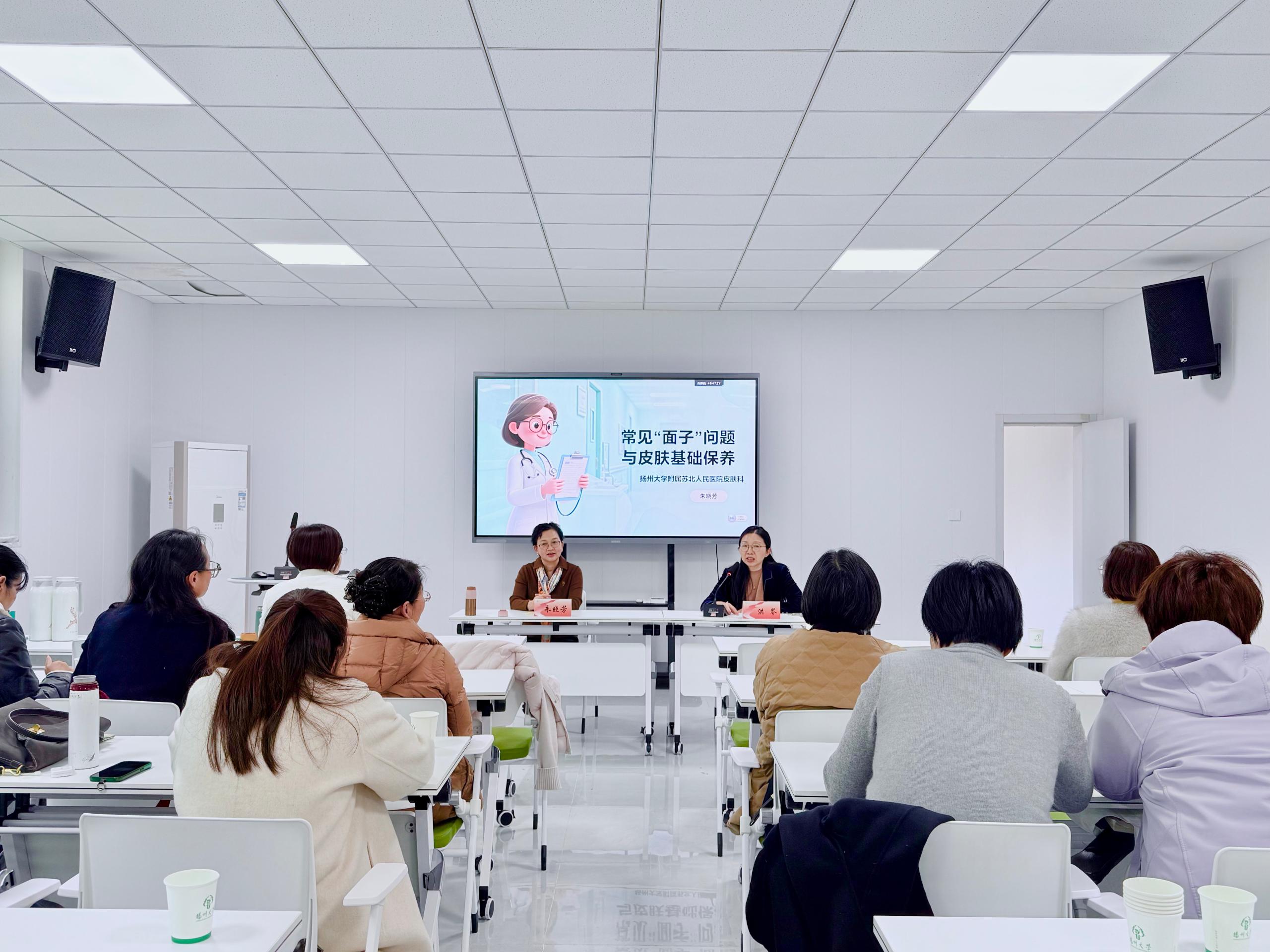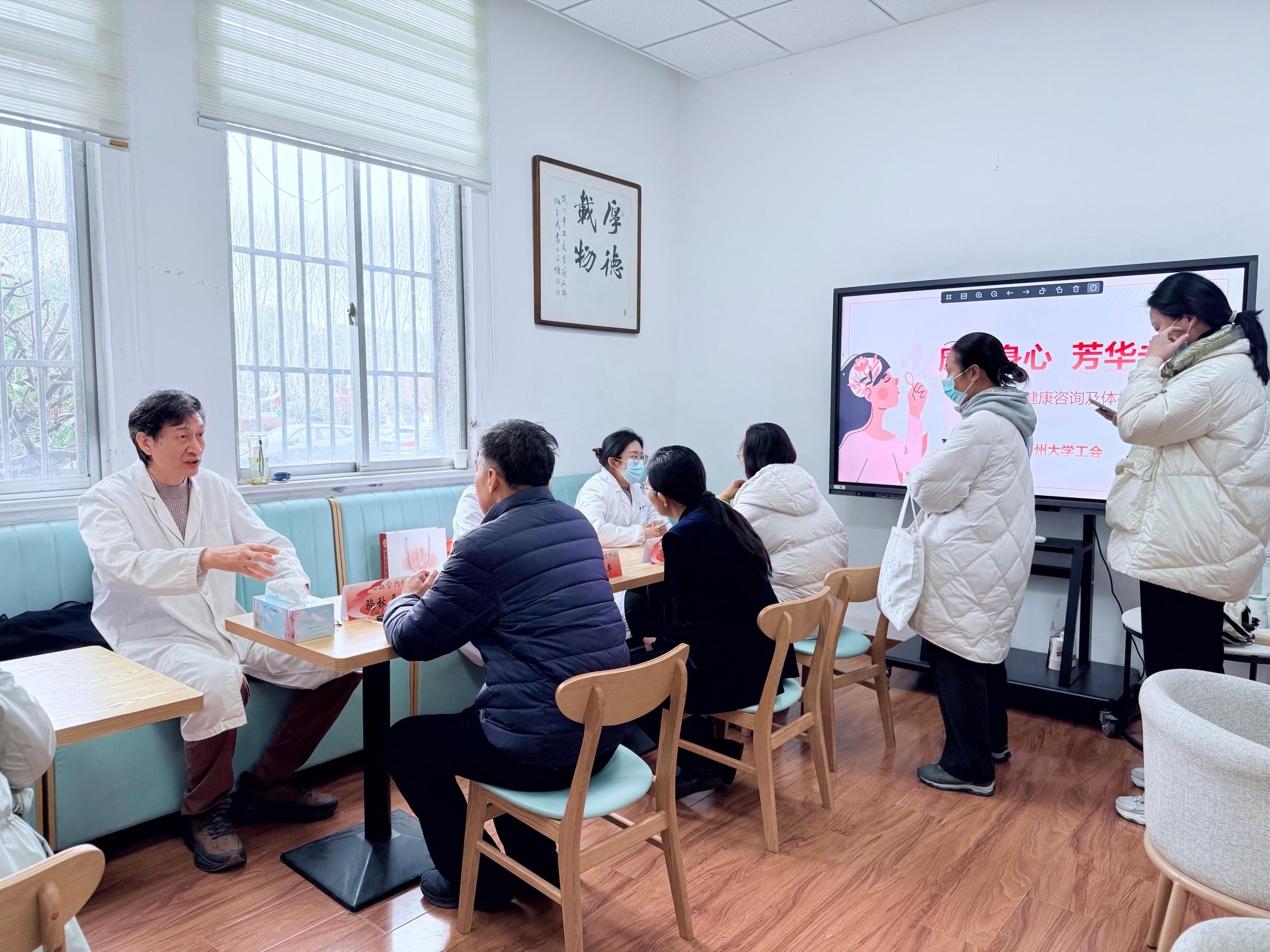 为促进女教职工身心健康,全面提升健康素养,校工会开展了健康咨询与体检报告解读活动,邀请附属医院心血管内科主任医师骆秋平,甲乳外科副主任医师张凤霞,妇科副主任、主任医师、硕士生导师丁艳,健康管理中心主任、主任医师、硕士生导师於晓平,消化内科副主任医师孙云云,医学院讲师、博士、扬州市妇女儿童医院中医科副主任医师冯璇等6位专家,现场讲解女性常见疾病预防与保健知识,解读体检报告指标,提供一对一健康咨询。校工会还邀请了苏北人民医院皮肤科主任医师、博士生导师朱晓芳带来“ 常见‘面子’问题与皮肤基础保养”专题健康讲座,引导女教职工树立科学健康理念,以积极心态与强健体魄投入生活与工作。