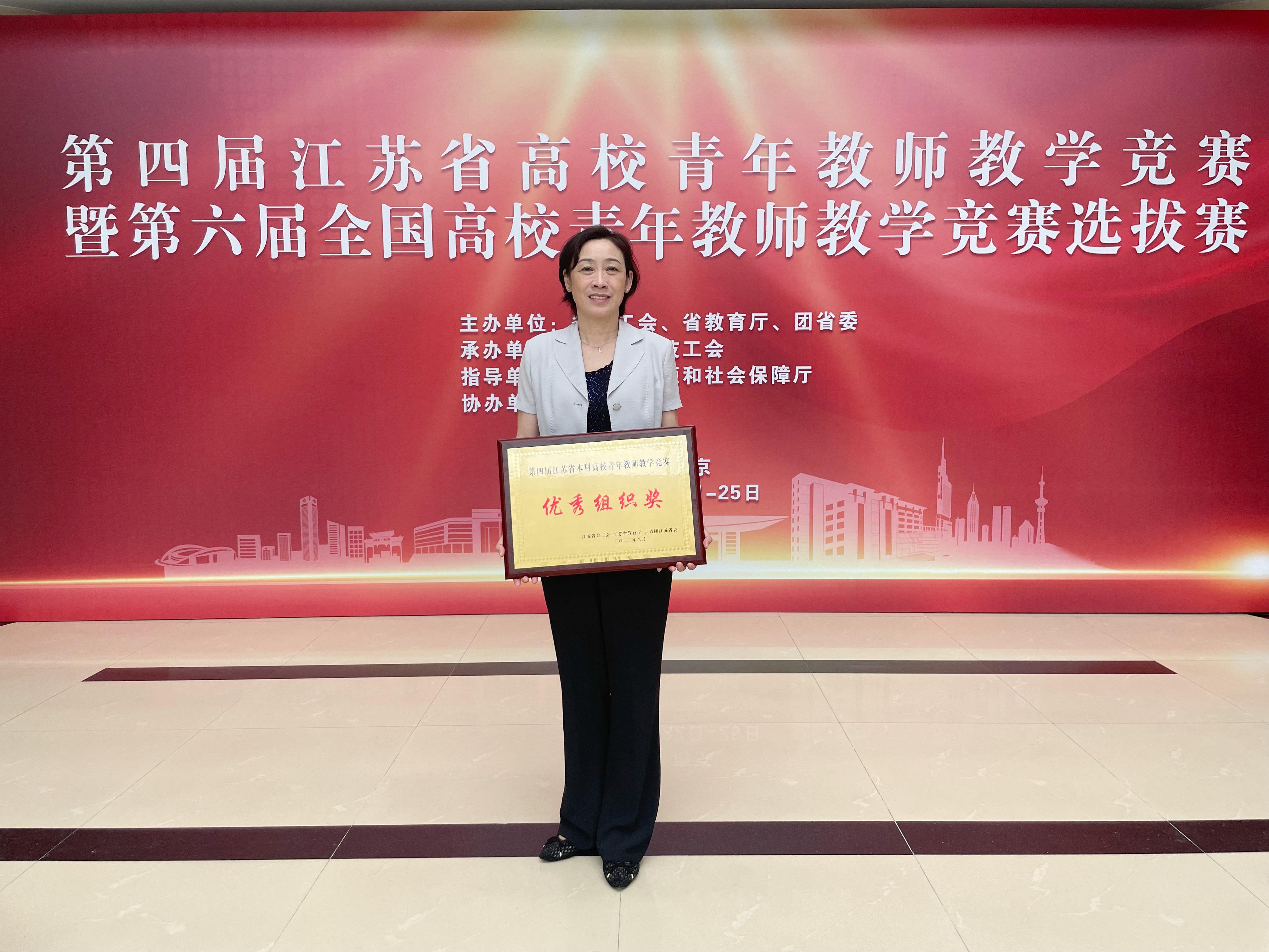 8月22日至25日,校工会代表学校组队参加了第四届江苏省高校青年教师教学竞赛暨第六届全国高校青年教师教学竞赛选拔赛,来自全省12个设区市代表队、55所高校代表队的168名选手齐聚一堂,切磋技艺,共襄盛会。我校医学院吕蒙莹老师获得医科组一等奖,同时被授予“江苏省五一创新能手”称号。社会发展学院周倩老师、化学化工学院孙晓环老师分别获得文科组和理科组二等奖。学校荣获“优秀组织奖”。