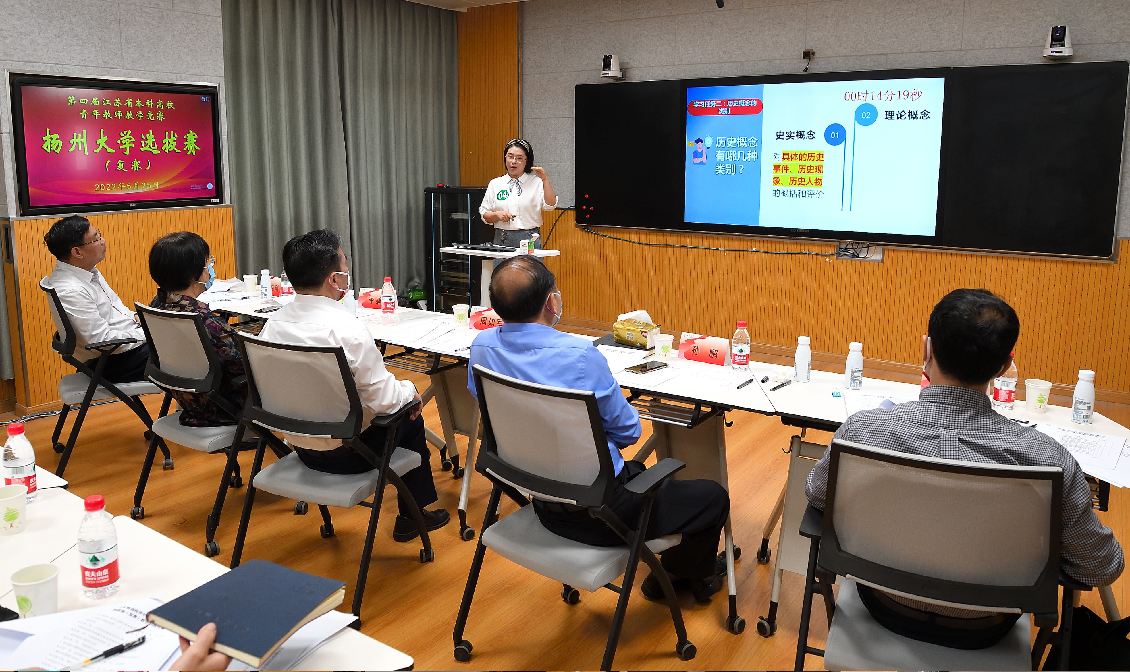 5月16日和25日,校工会在文汇路校区9号楼工会二楼多功能教室和荷花池校区教学主楼E525智慧教室,分别举行第四届江苏省高校青年教师教学竞赛校内选拔赛初赛和复赛。