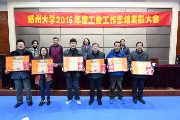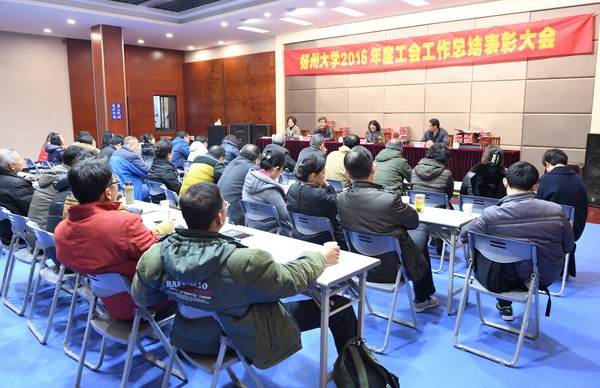 1月10日下午,校工会在瘦西湖校区教工之家召开2016年度工会工作总结表彰会。会上,高远主席总结了2016年度工会工作,提出了2017年工作思路,并就有关工作进行了布置。会议举行了颁奖仪式,希望受表彰的先进集体和个人再接再厉,争创新业绩;号召各院级工会、广大工会干部和会员学习先进,开拓创新,奋发进取,为建设高水平研究型大学作出新的更大的贡献。