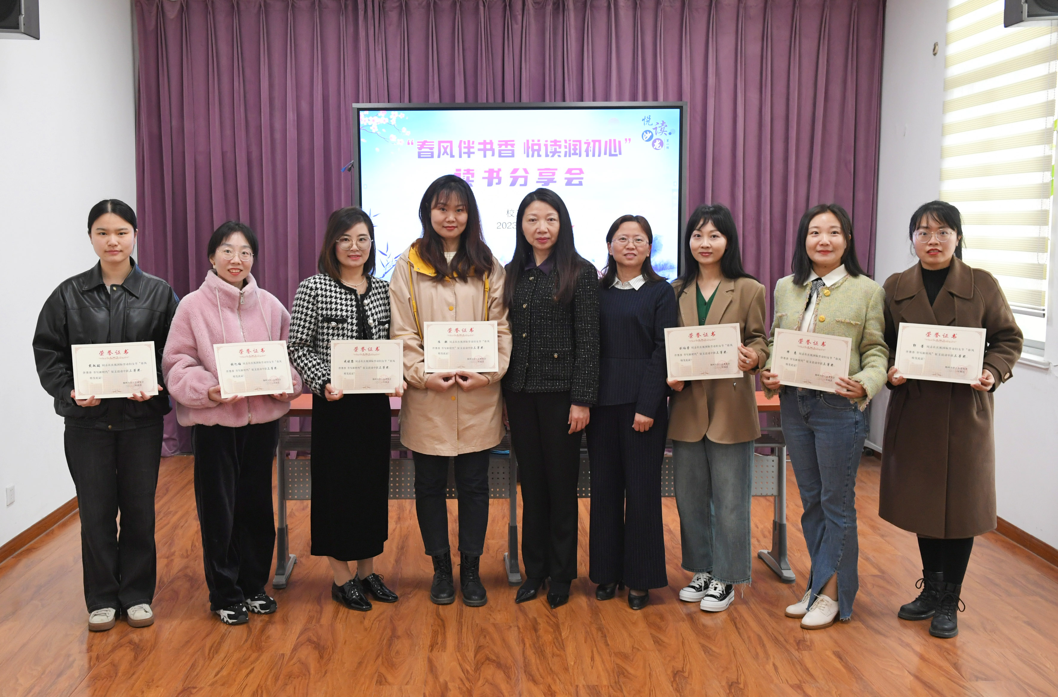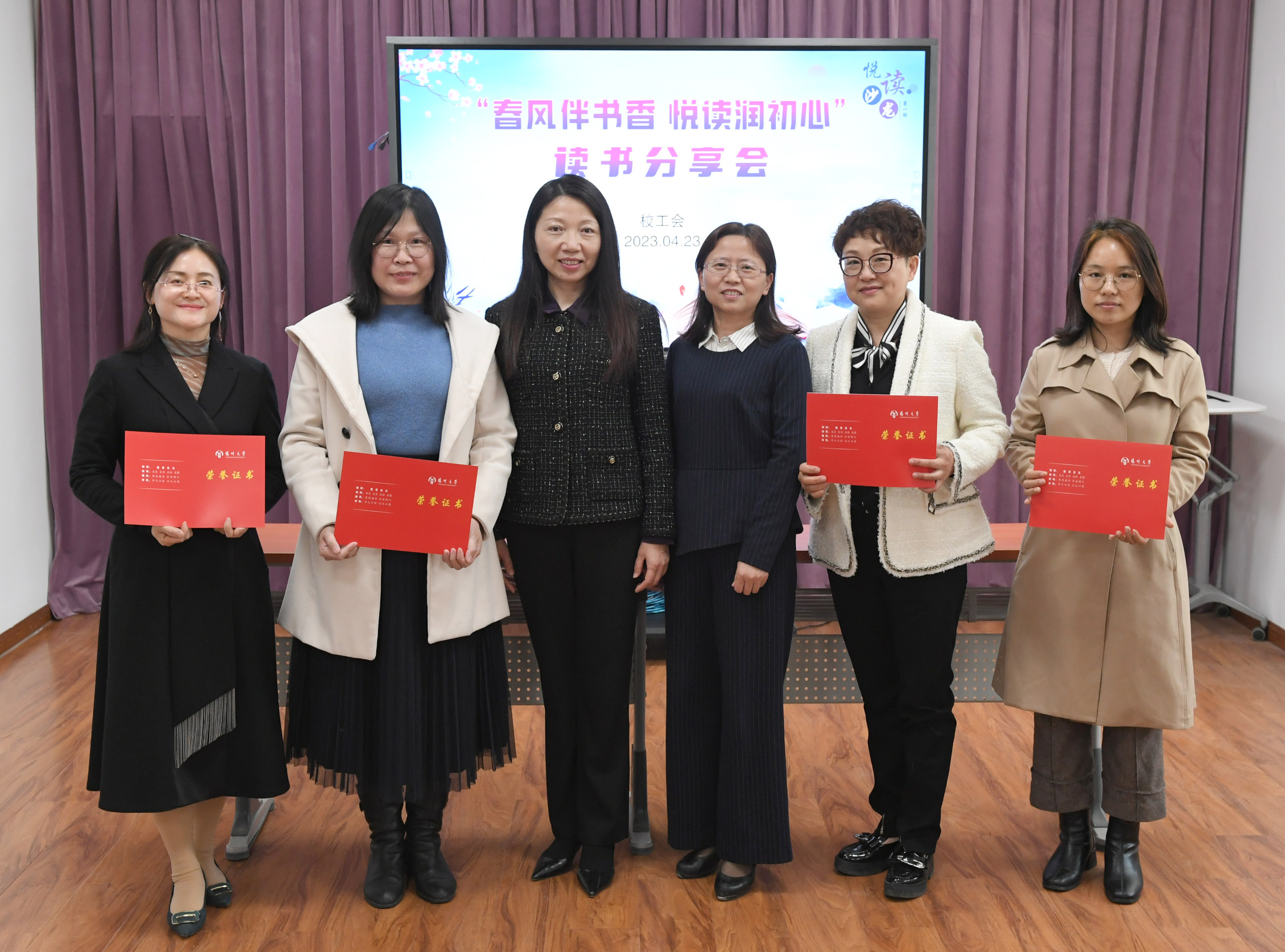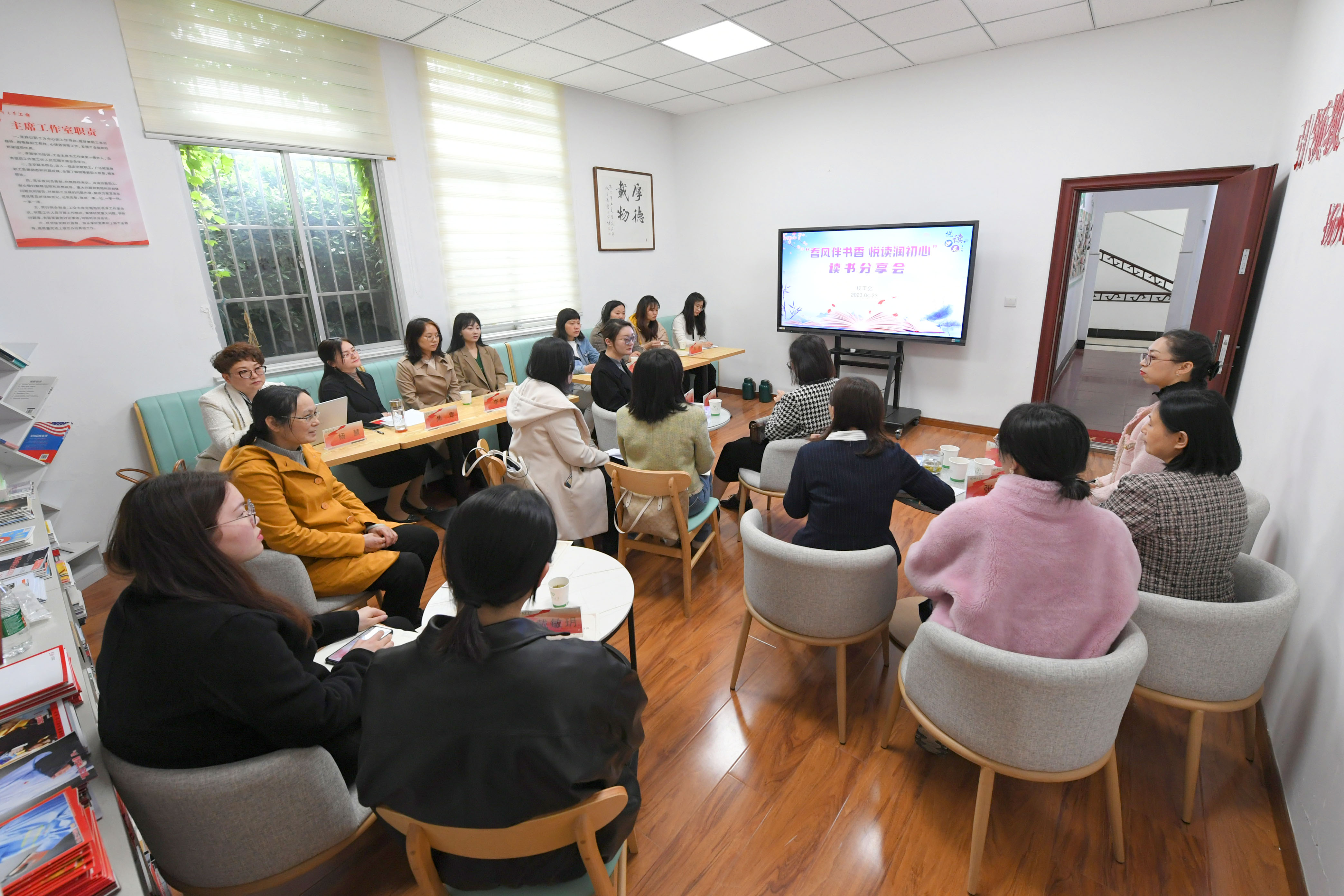 4月23日下午,校工会在文汇路校区工会一楼书吧举办首期“悦”读沙龙——“春风伴书香 悦读润初心”读书分享会,“春风伴墨香 书写新时代”征文获奖教师参加活动。