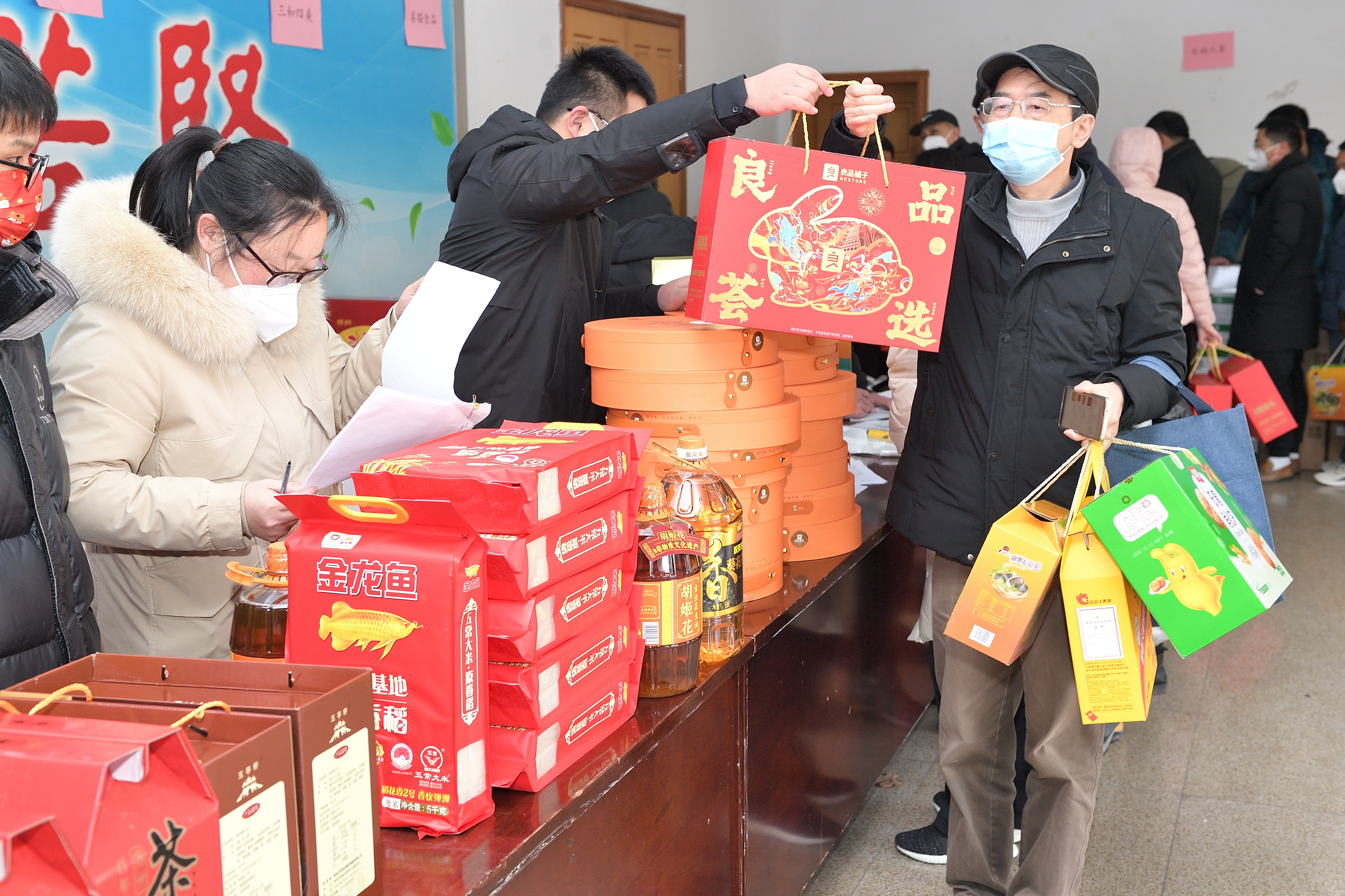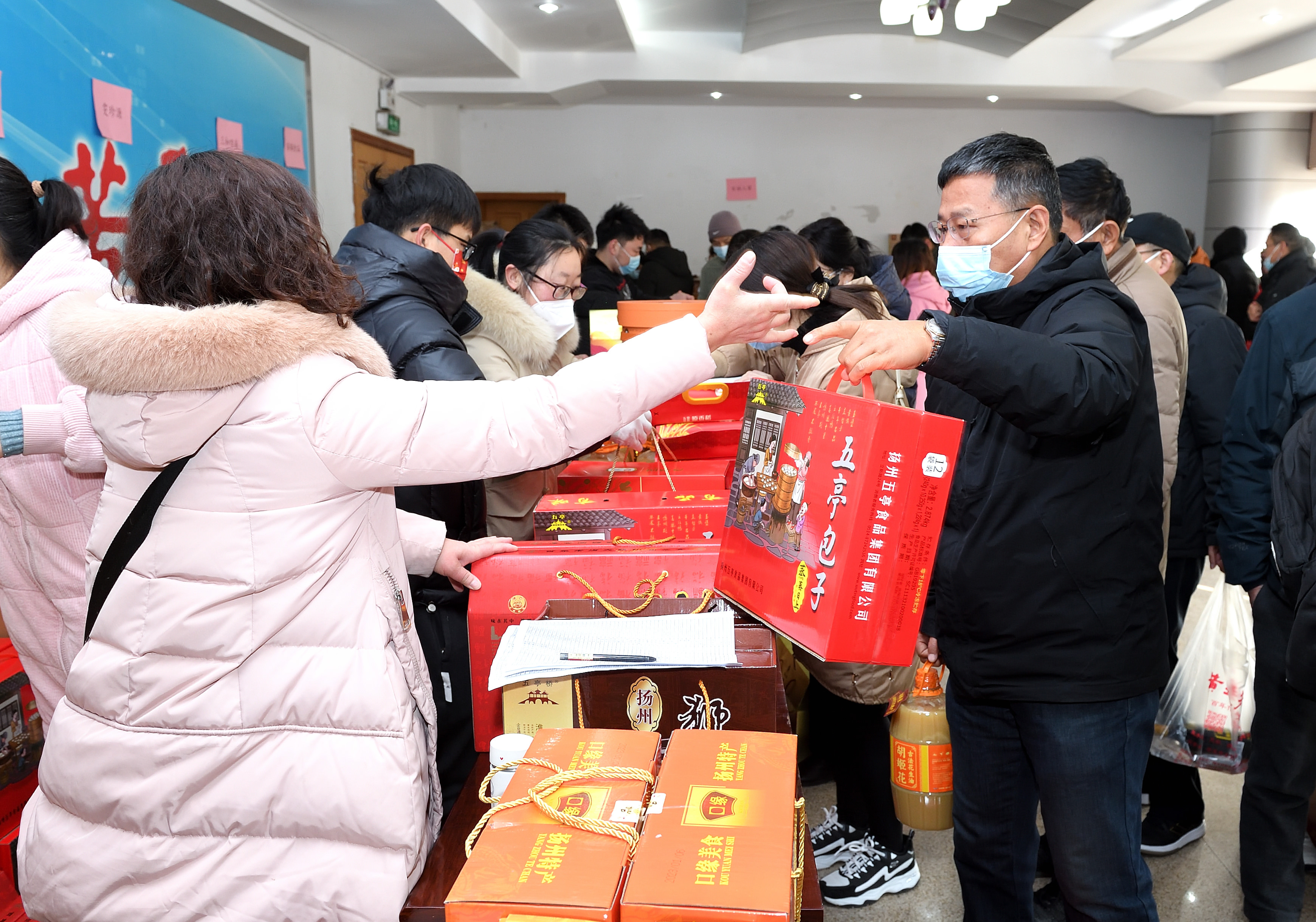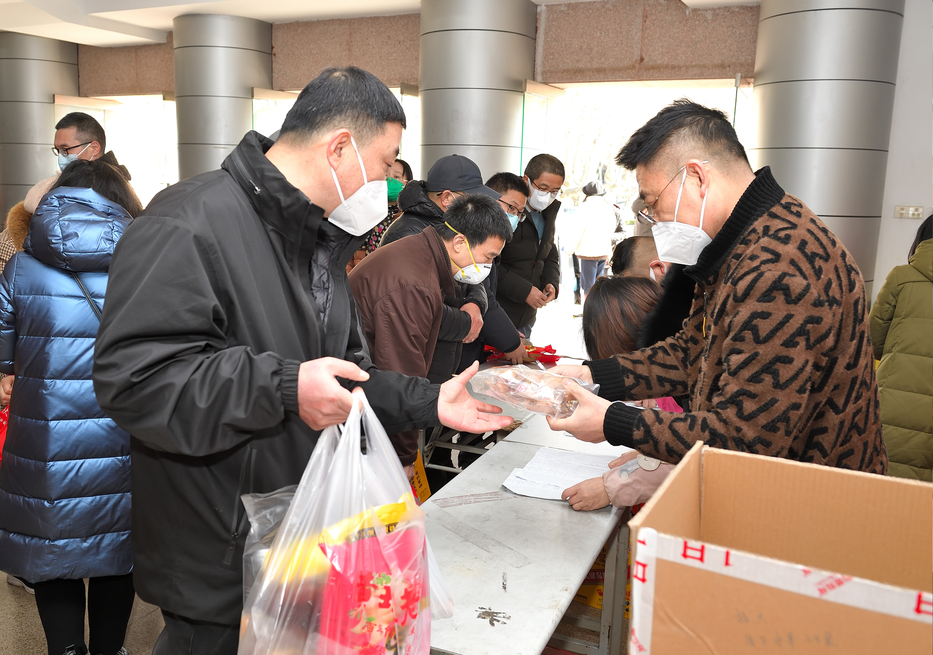 1月16日上午,校工会在文汇路校区大礼堂门厅举办第四期团购服务日——2023年春节年货大集。活动现场除提供线上订购货品领取服务,还提供现场购物服务。校工会全体工作人员担任“导购”,帮助教职工顺利提货并解答现场咨询。