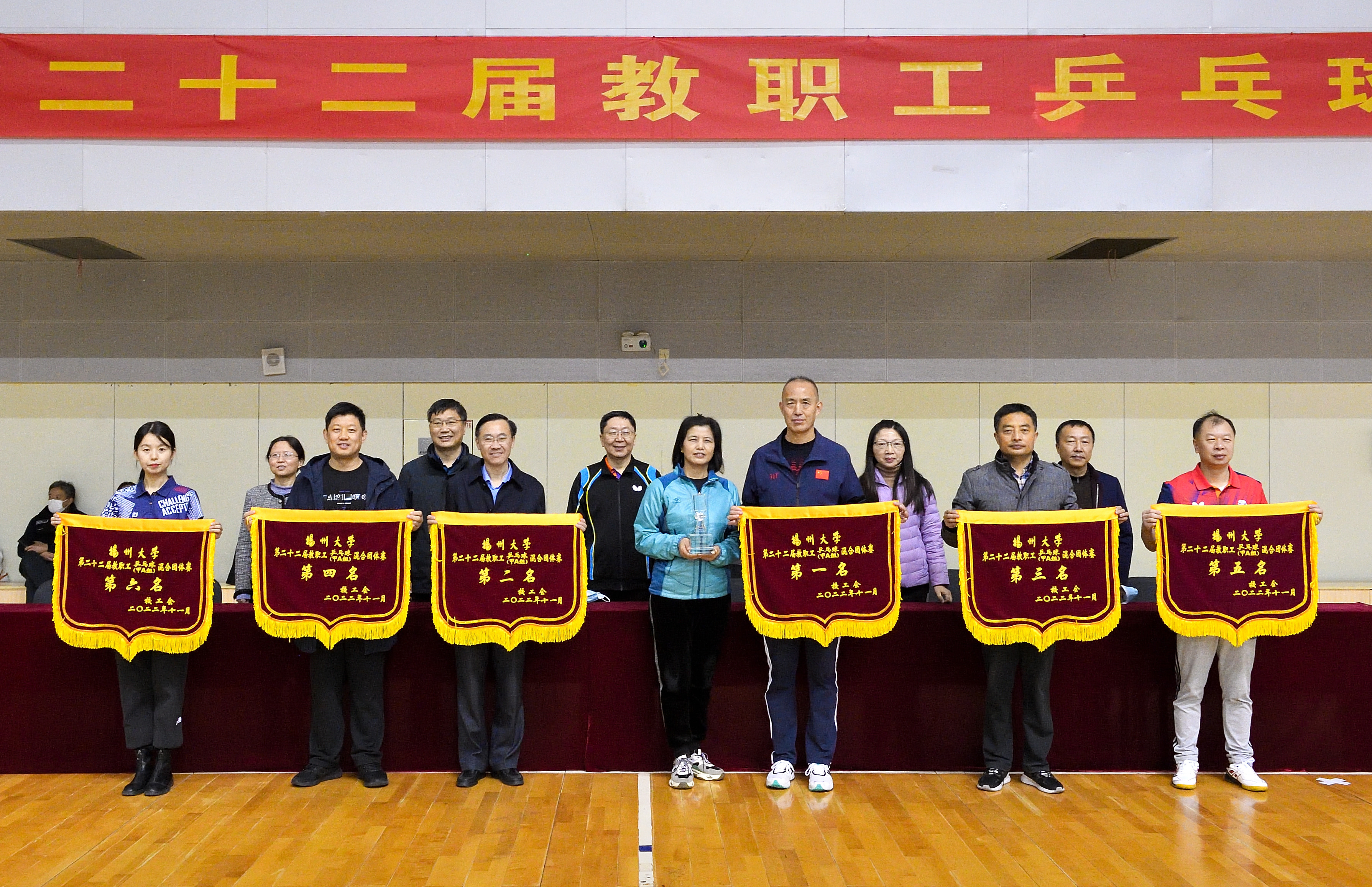 12月3—4日,校工会在扬子津校区文体馆举办了第二十二届教职工乒乓球混合团体赛,各二级工会组成36支代表队,近400余名选手参加了比赛。副校长蒋乃华亲临比赛现场,看望且勉励各代表队,为获奖单位颁发锦旗和冠军奖杯。