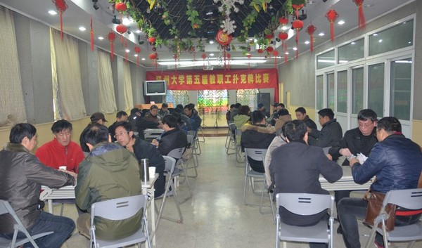 12月19日,由校工会主办、教职工牌类协会承办的第五届教职工扑克牌比赛在文汇路校区教工之家举行,全校30多家院级工会的64队选手参加了比赛。经过6轮80场的激烈争夺,决出前16名。比赛达到了“以牌会友,增进友谊;以牌为媒,健康身心”的效果。