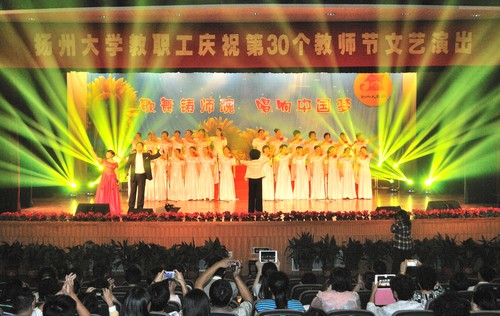 9月10日晚,为庆祝第30个教师节,丰富广大教职工的文化生活,由校工会主举办的“歌舞铸师魂唱响中国梦”教职工文艺演出在荷花池校区大学生活动中心小剧场举行。校机关、学院部分领导以及师生代表400多人观看了演出。校党委副书记、纪委书记刘延庆,副校长叶柏森百忙之中来到晚会现场观看演出。