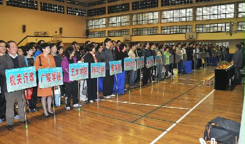 全校35个院级工会代表队参加了比赛,经过激烈角逐,信息工会代表队一举夺得冠军,体育学院工会、建工学院工会、图书馆工会、艺术学院工会、数学学院工会、机关行政工会、机关党群工会代表队分获二至八名。通过比赛,大家赛出了成绩,赛出了风格,加强了相互间的了解,增进了彼此间的友谊。比赛结束后,举行了闭幕式,刘延庆副书记、胡效亚副校长出席了闭幕式并为获奖代表队颁发锦旗和冠军流动奖杯。