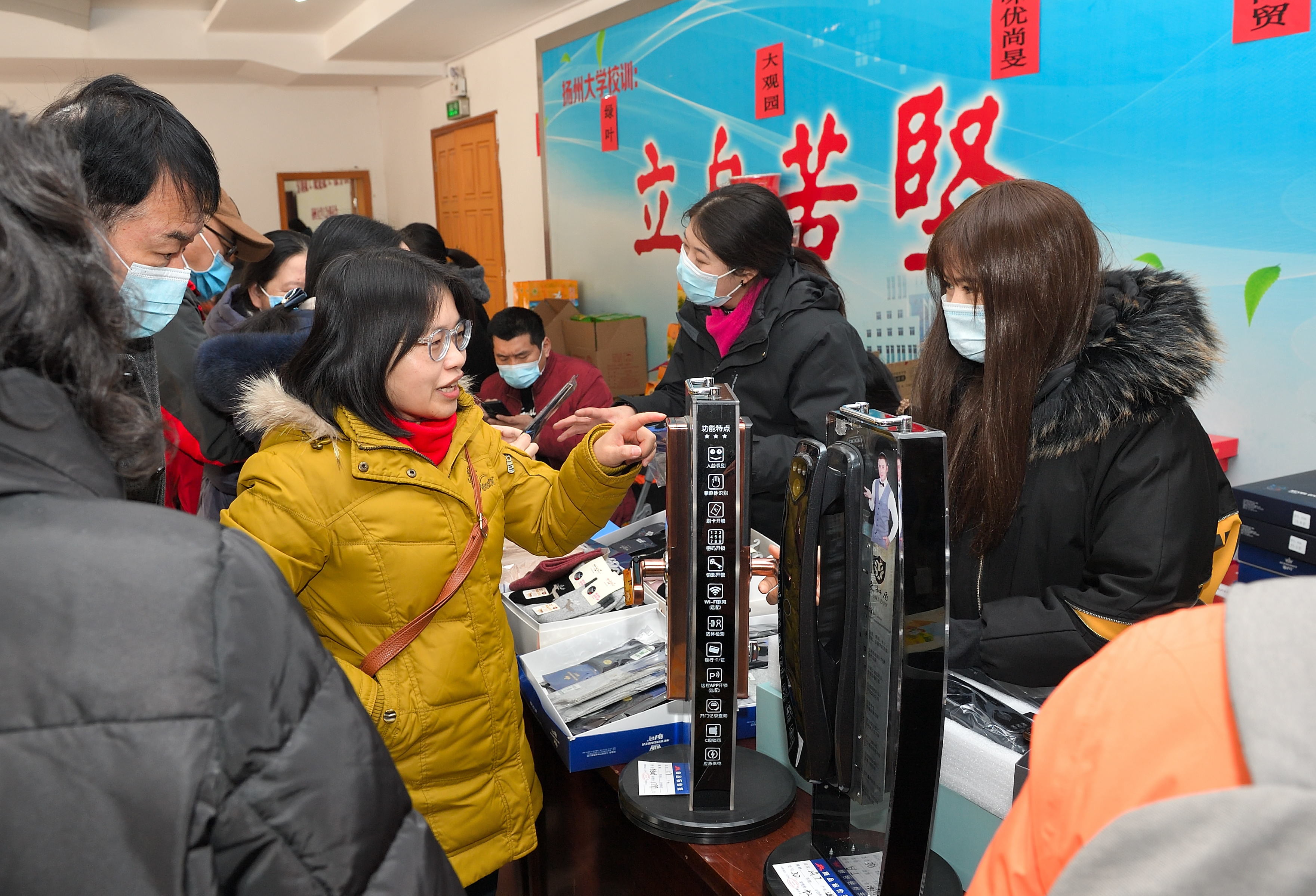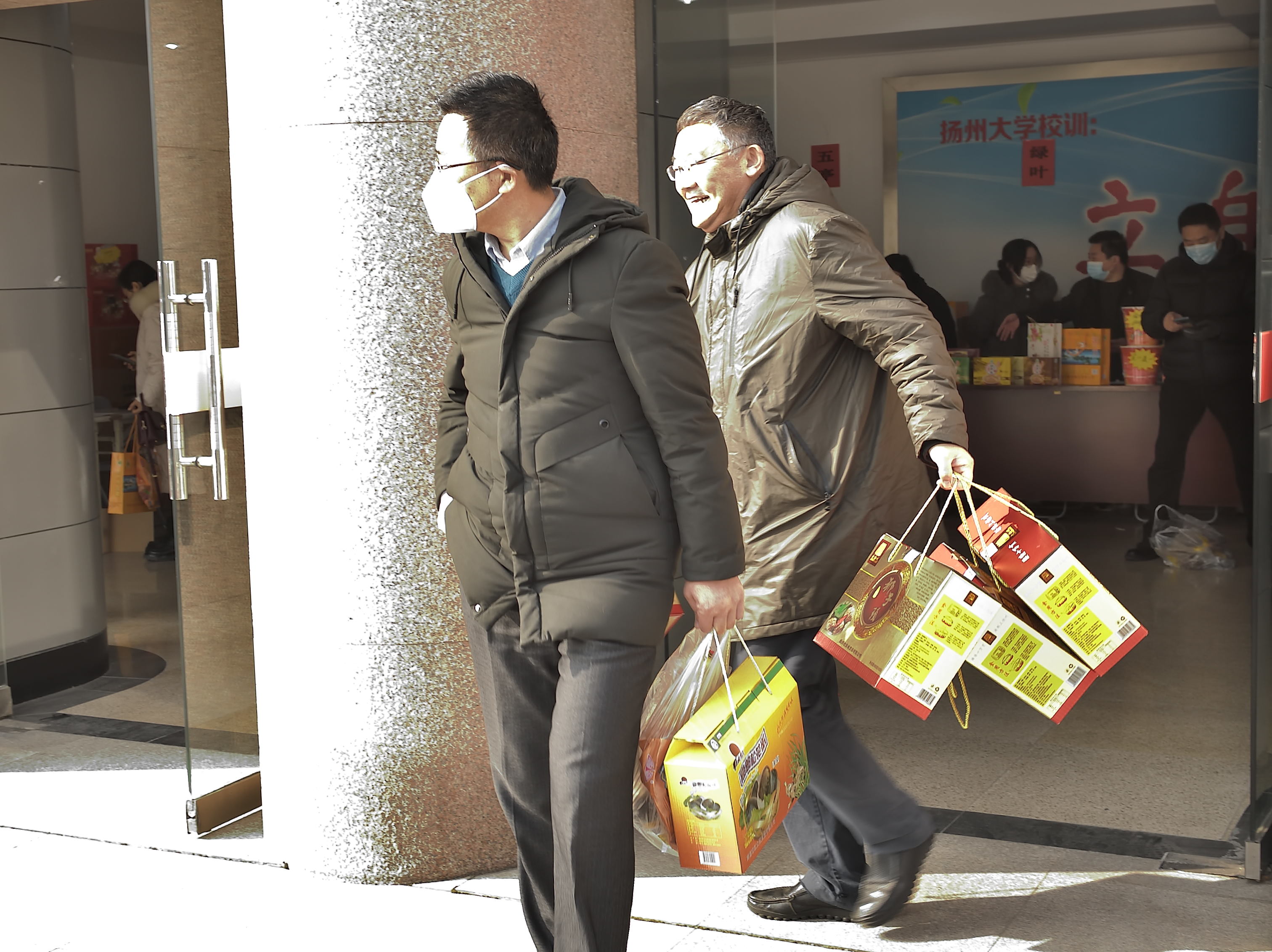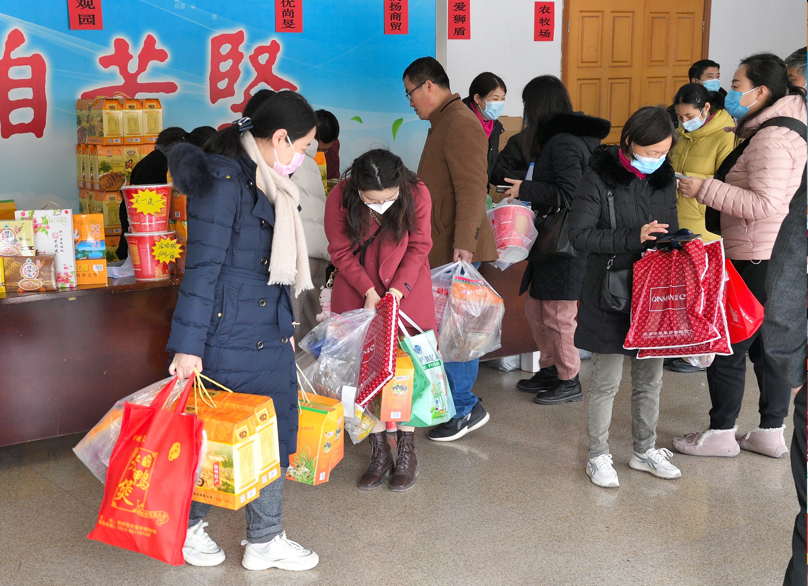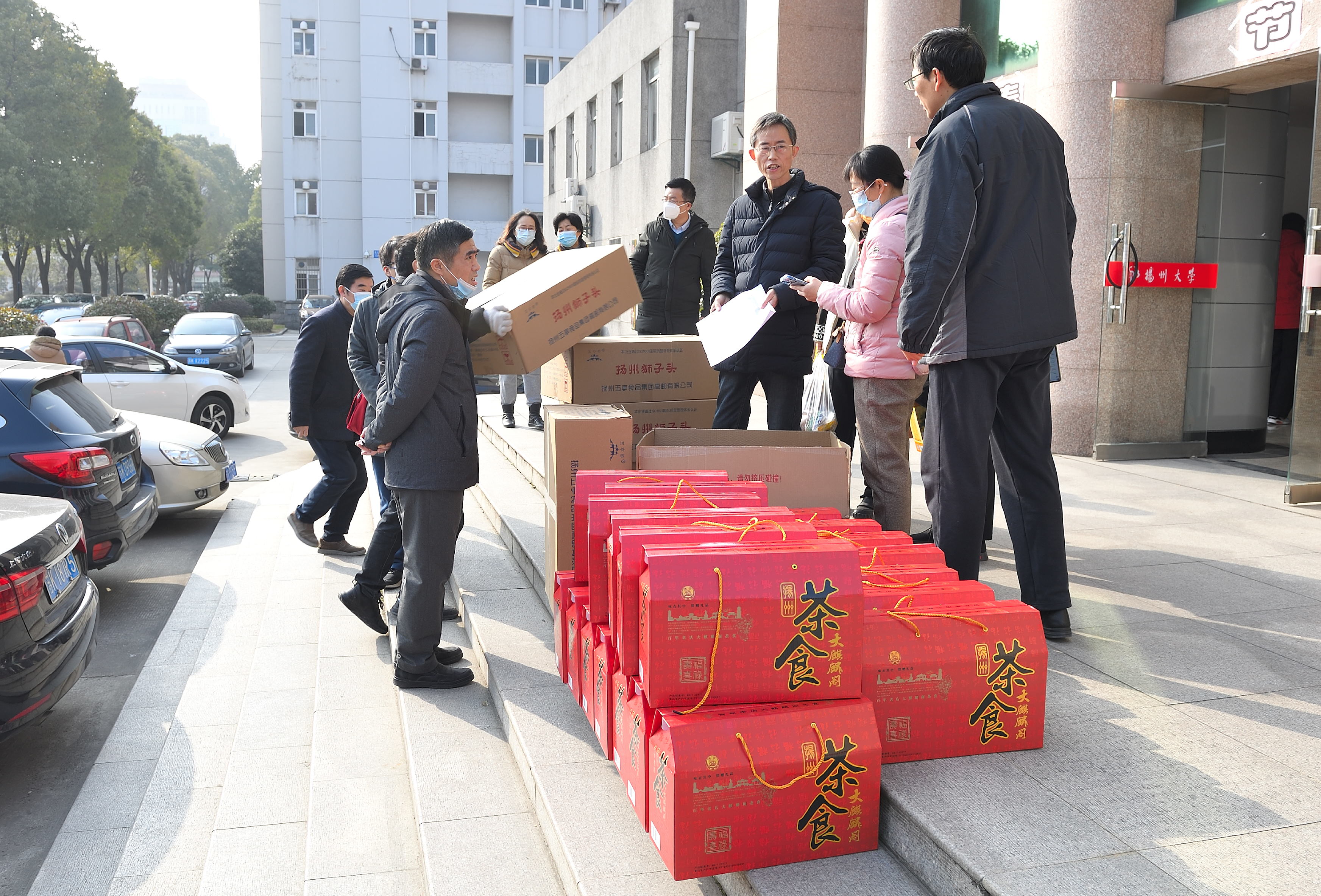 1月18日,校工会在文汇路校区大礼堂门厅举办团购服务日第三期——2022年春节年货小集市。活动现场除了提供线上订购货品领取服务,还提供线下购物服务。校工会全体工作人员担任“导购”,帮助教职工顺利提货、现场咨询并指导线上下单。