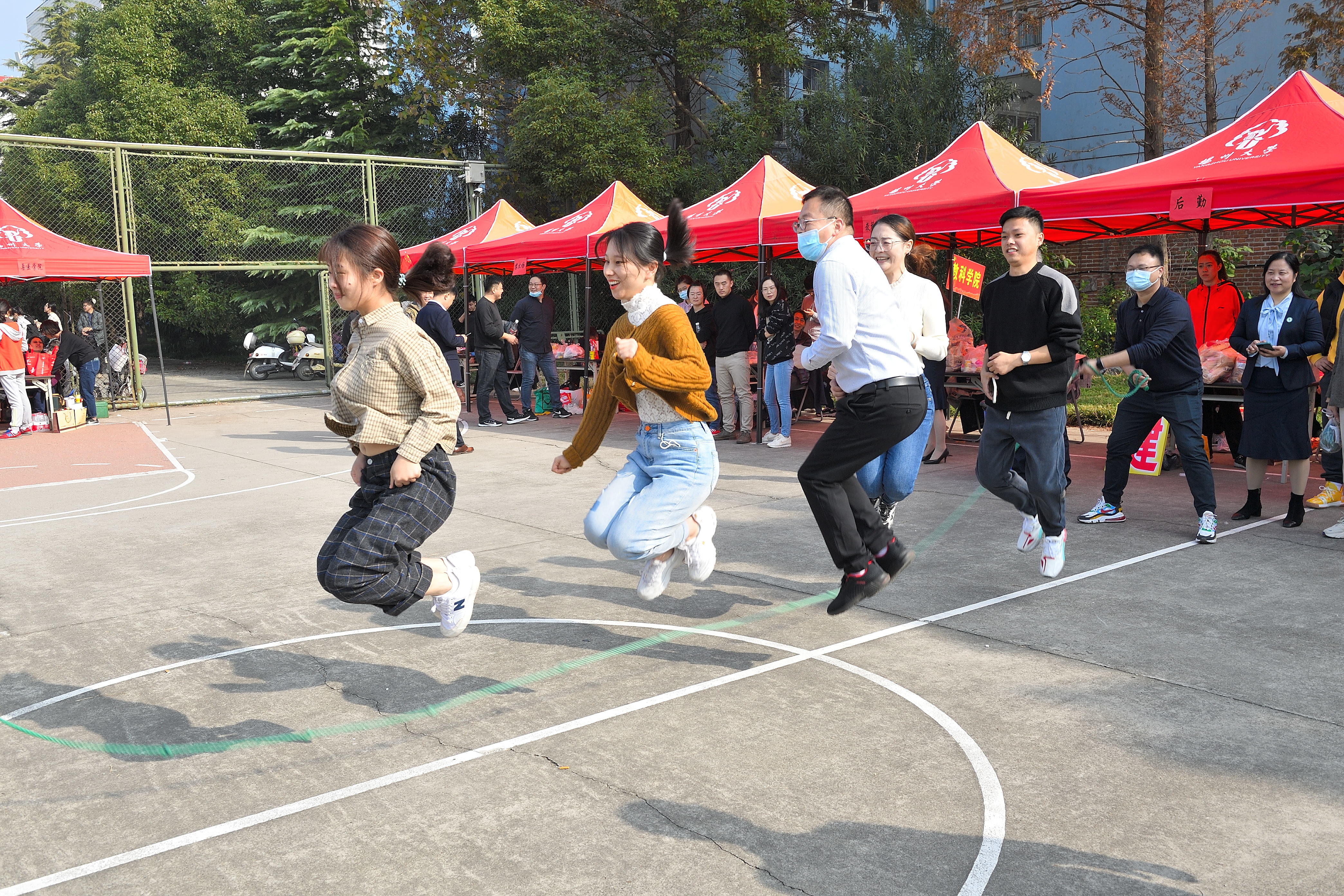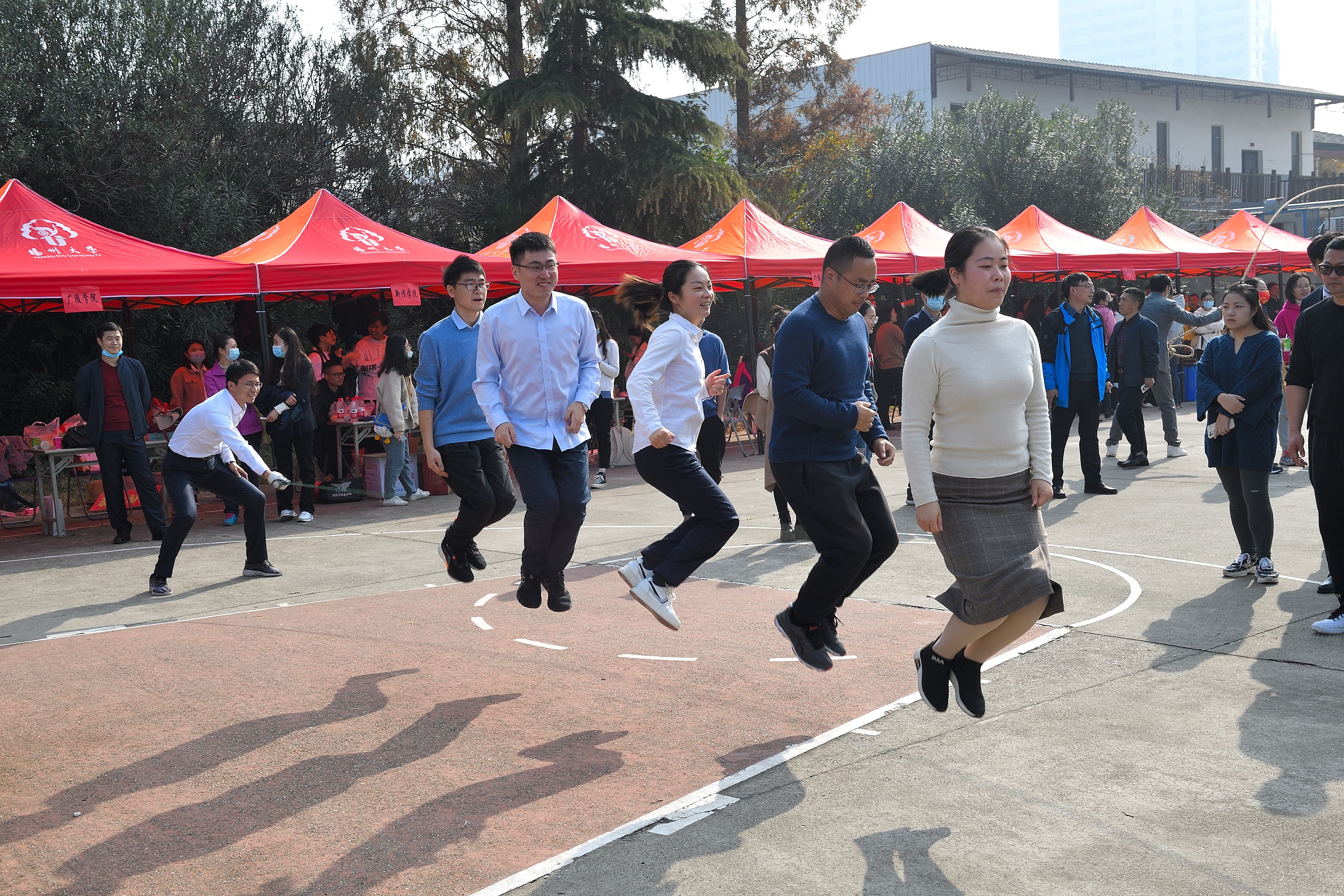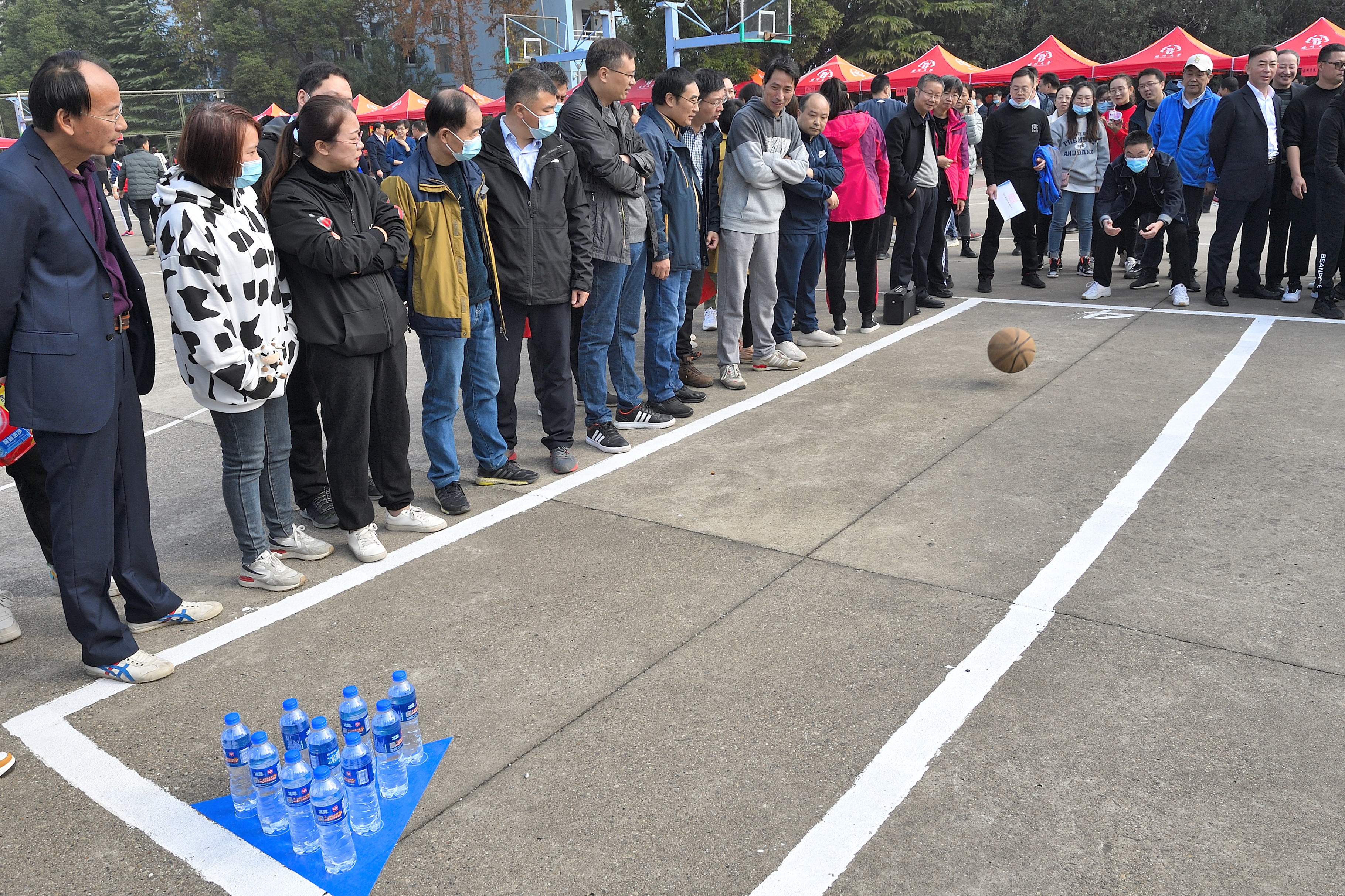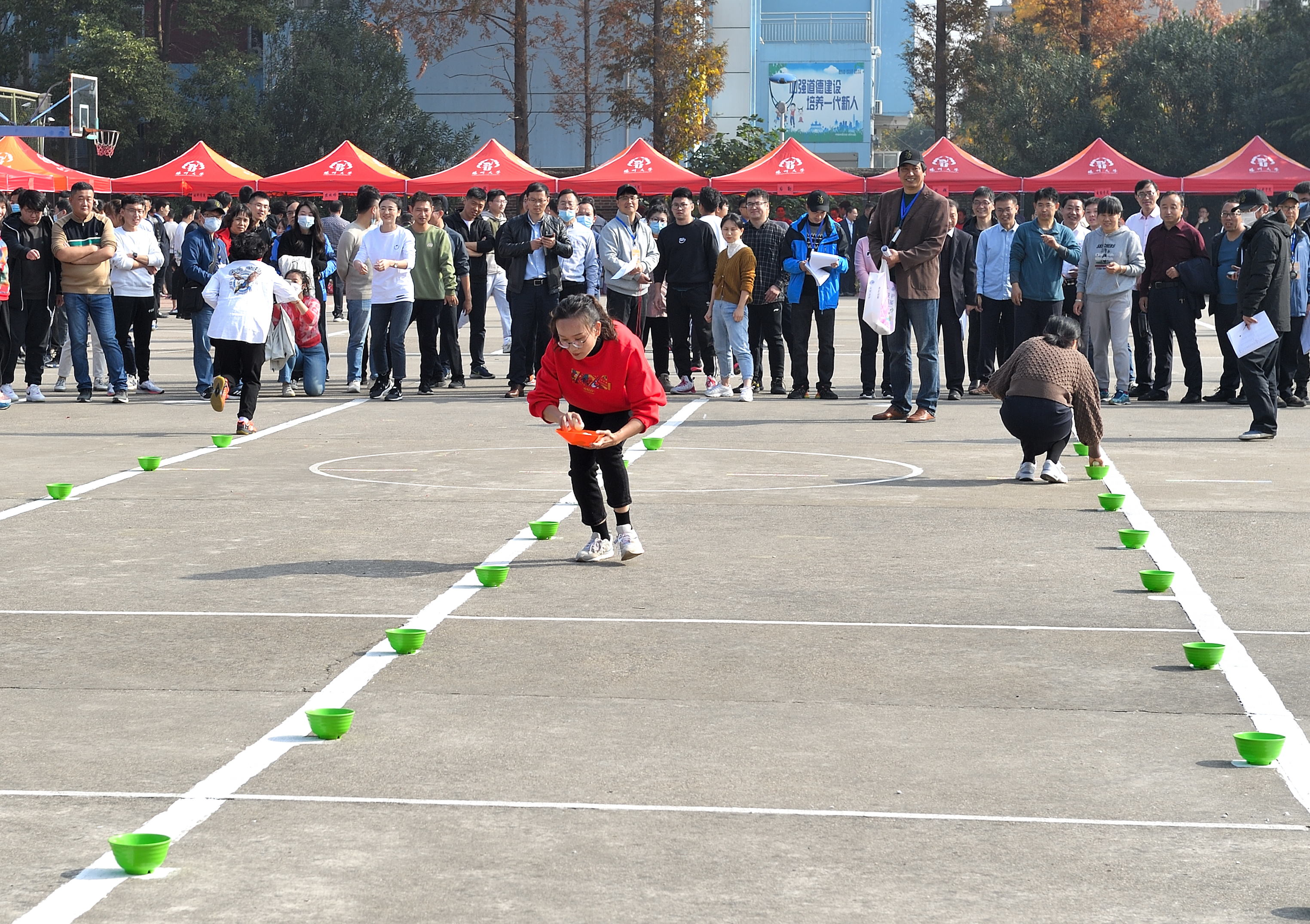本次教职工趣味运动会共设打保龄球、抢收抢种、集体跳绳、赶篮球跑接力等4个项目。赛场上,运动员们团结协作、顽强拼搏,在竞赛中展示了奋力笔耕之外的活力;赛场外,观众们热情欢呼加油,热心为运动员们做好服务工作。