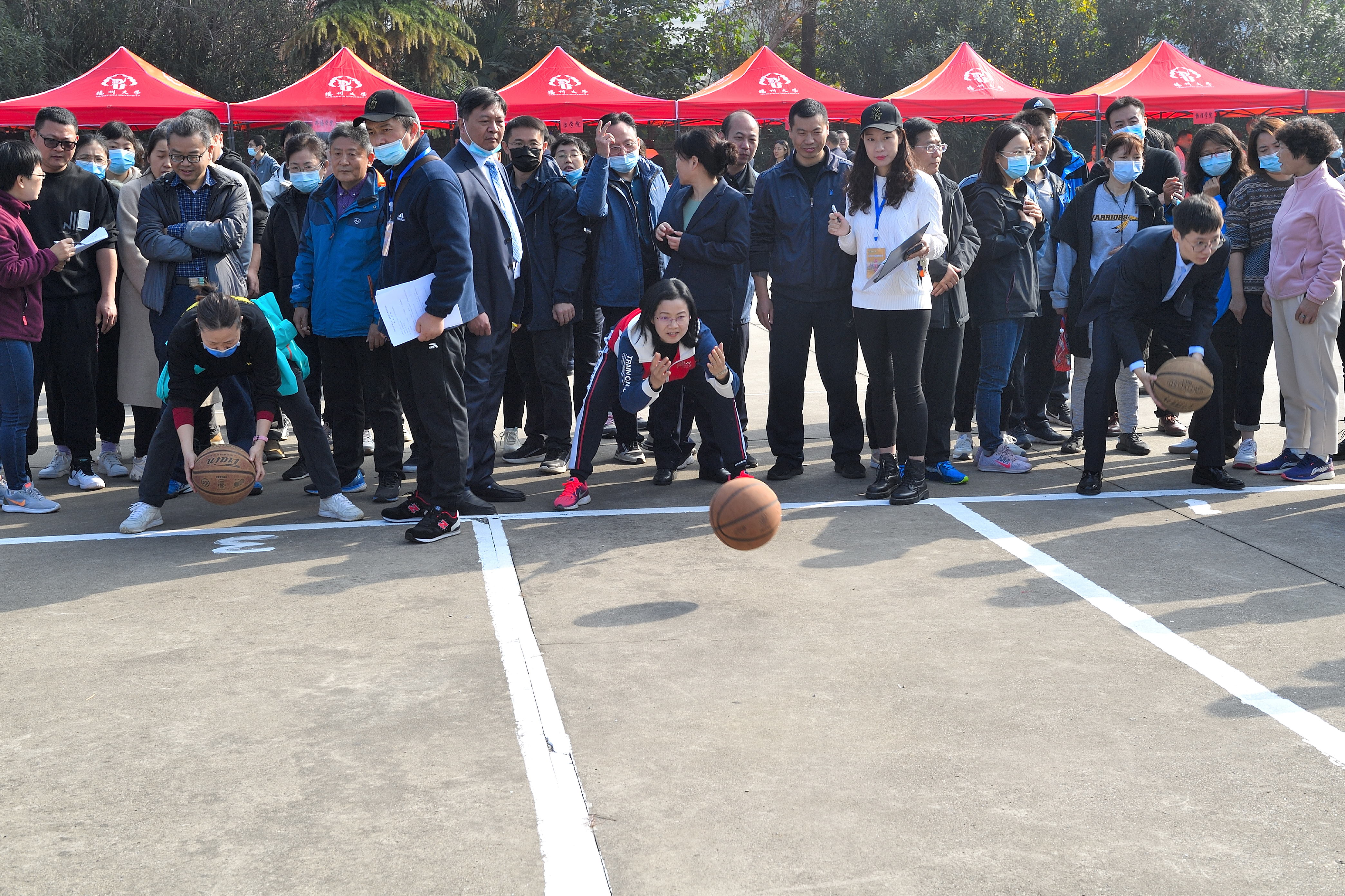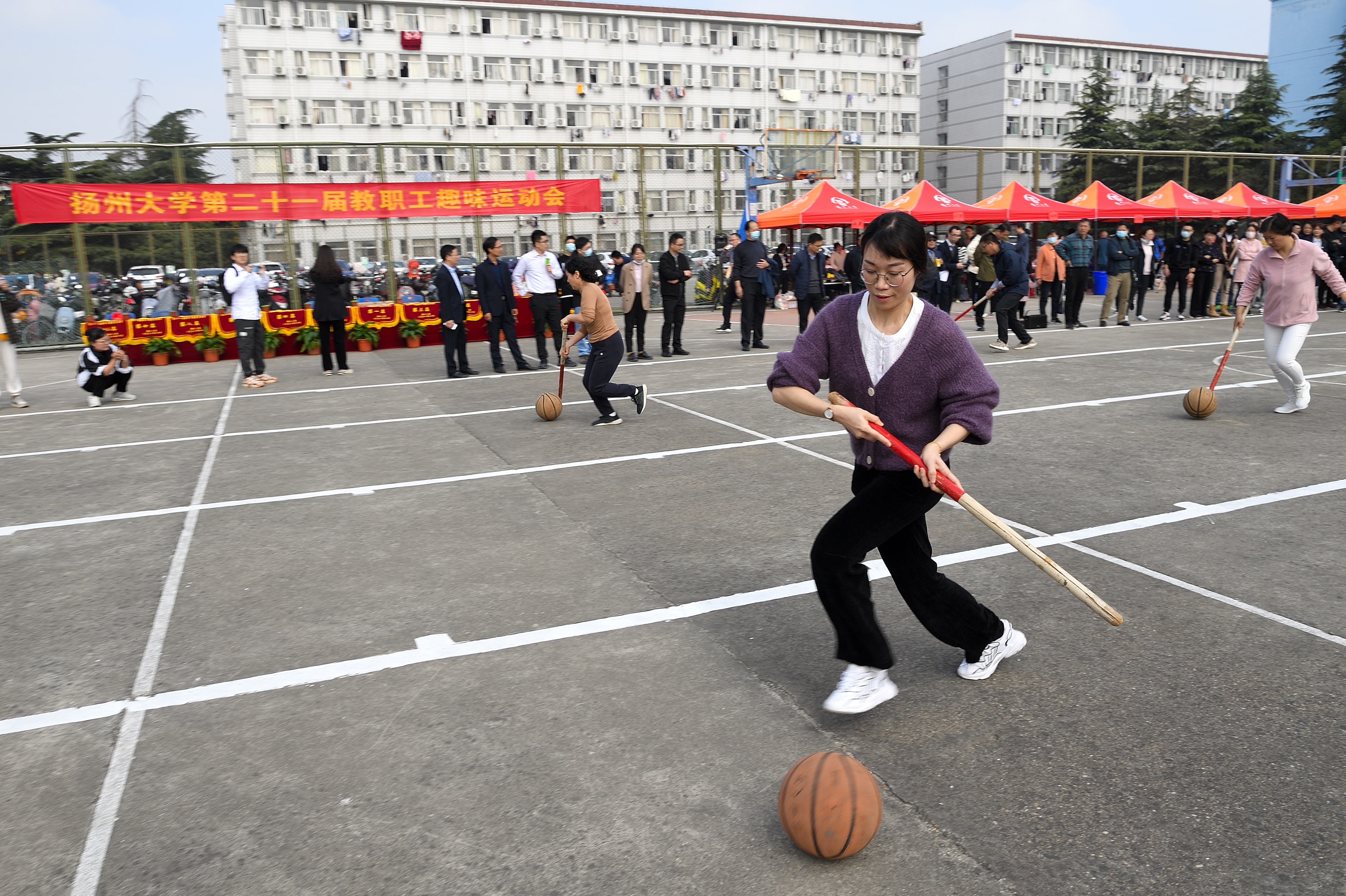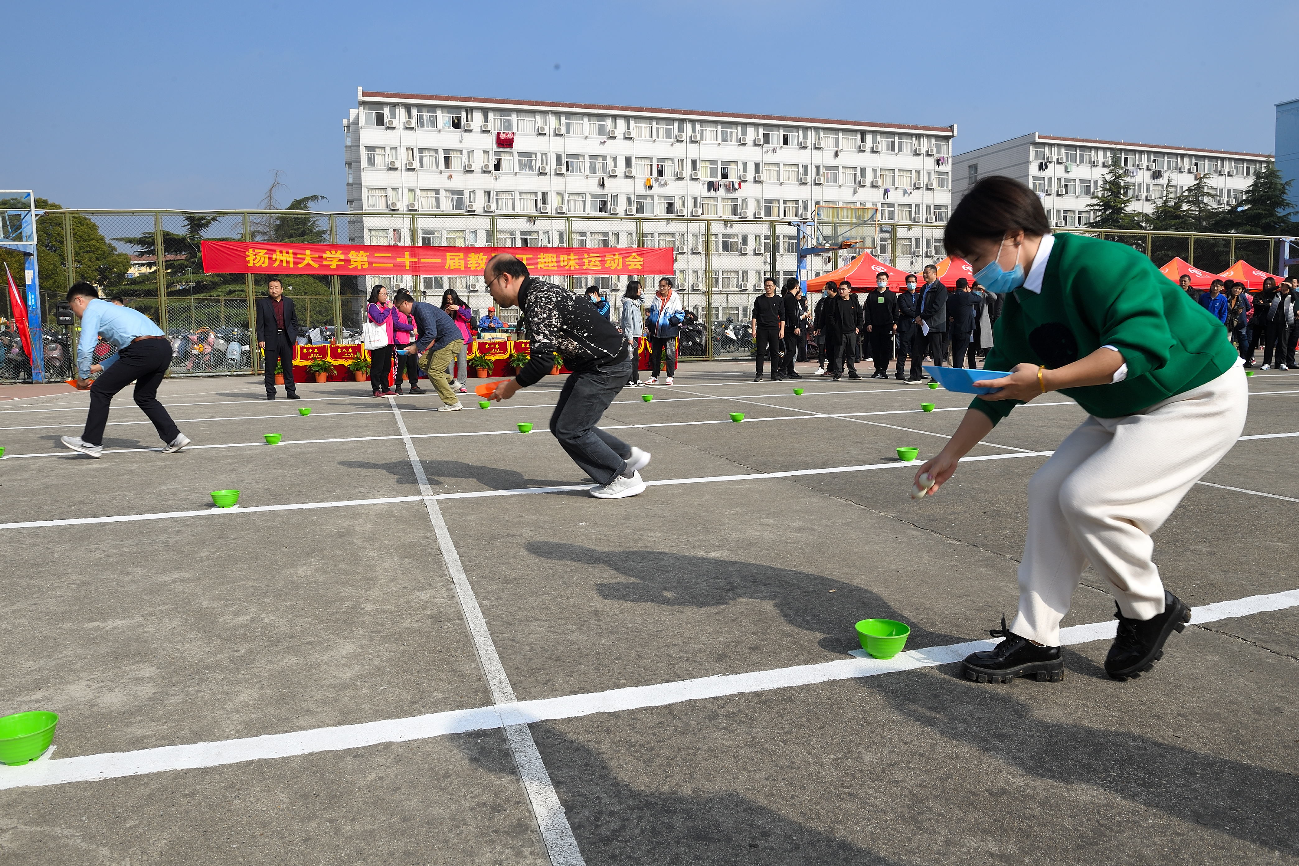 本次教职工趣味运动会共设打保龄球、抢收抢种、集体跳绳、赶篮球跑接力等4个项目。赛场上,运动员们团结协作、顽强拼搏,在竞赛中展示了奋力笔耕之外的活力;赛场外,观众们热情欢呼加油,热心为运动员们做好服务工作。
