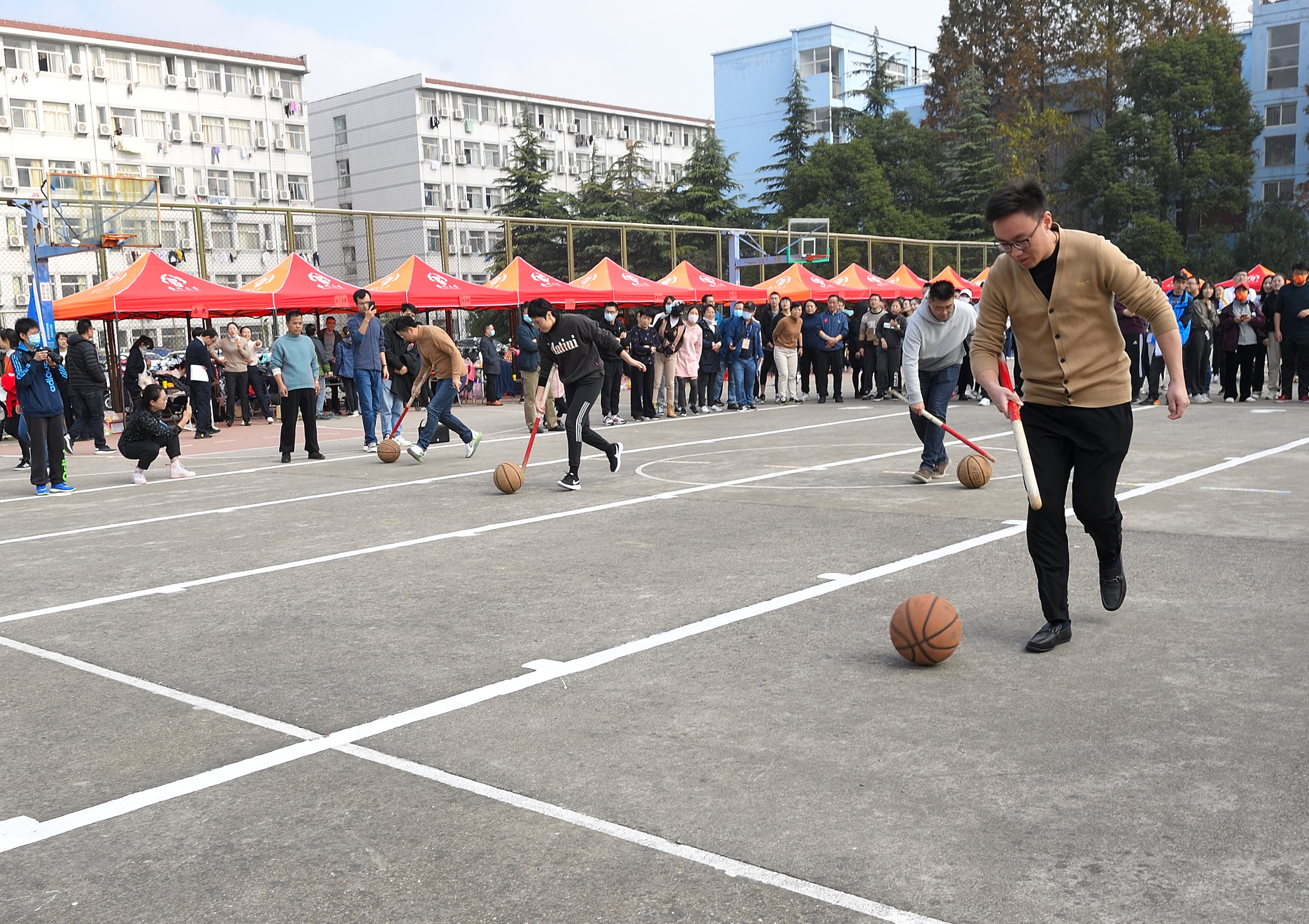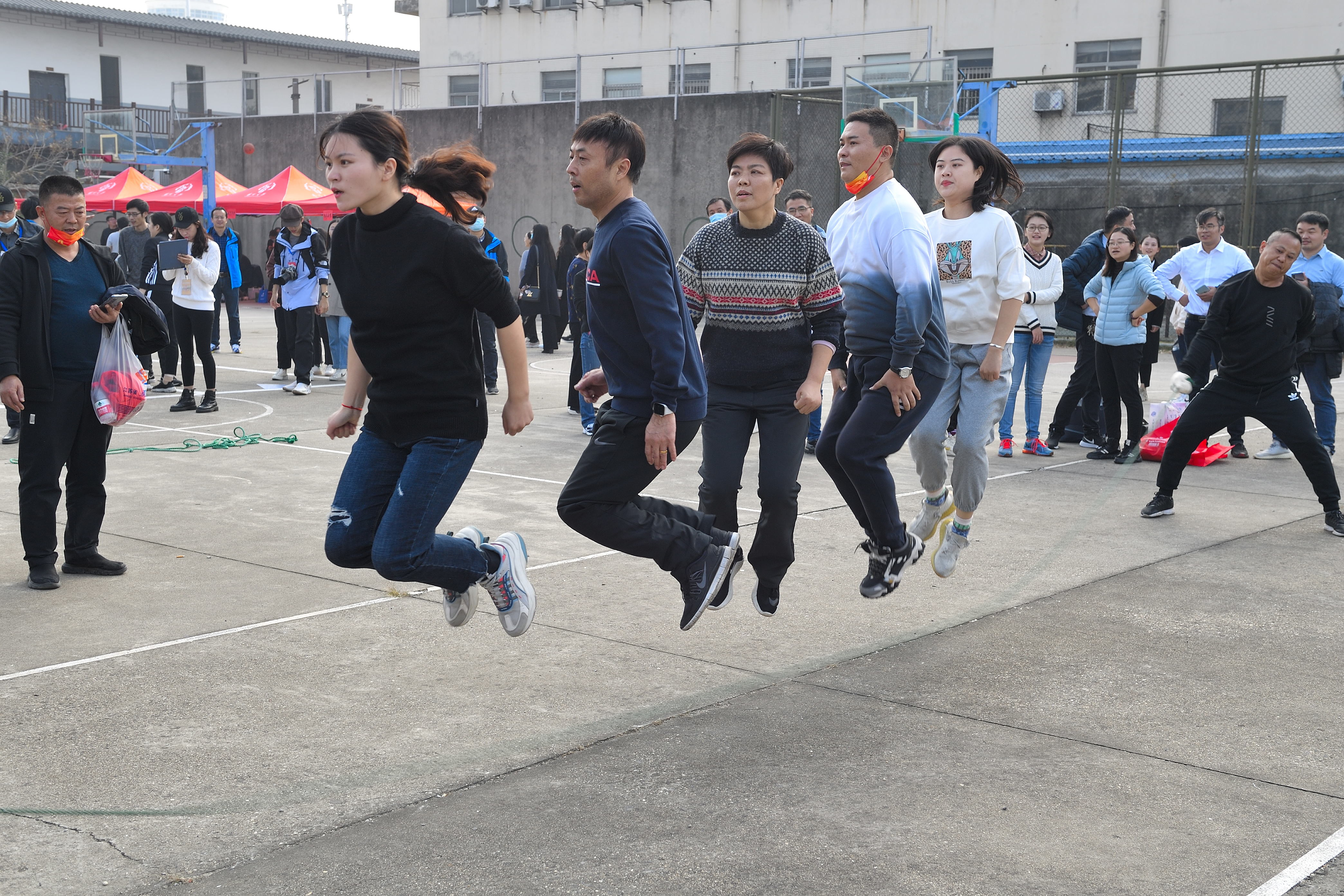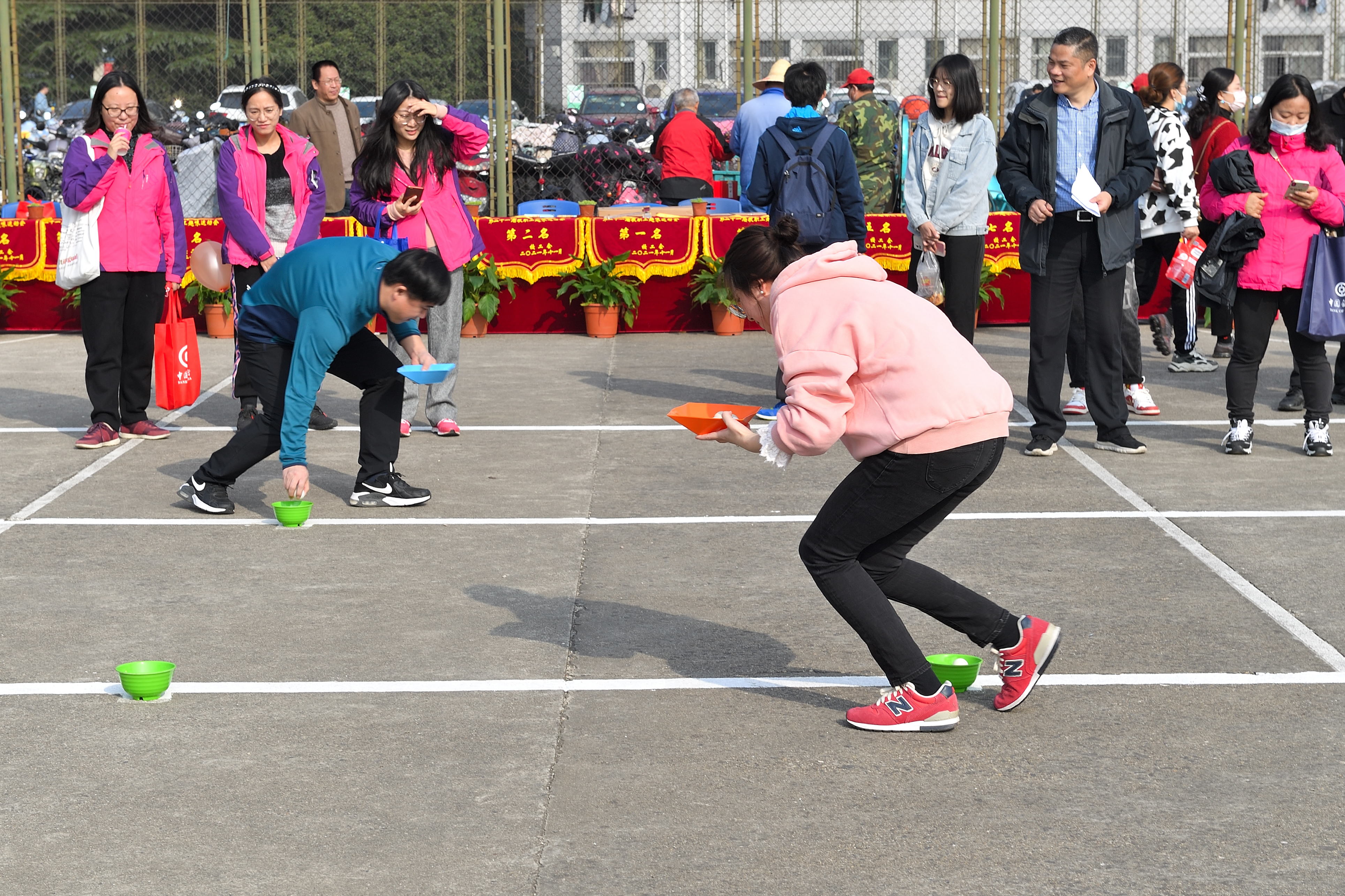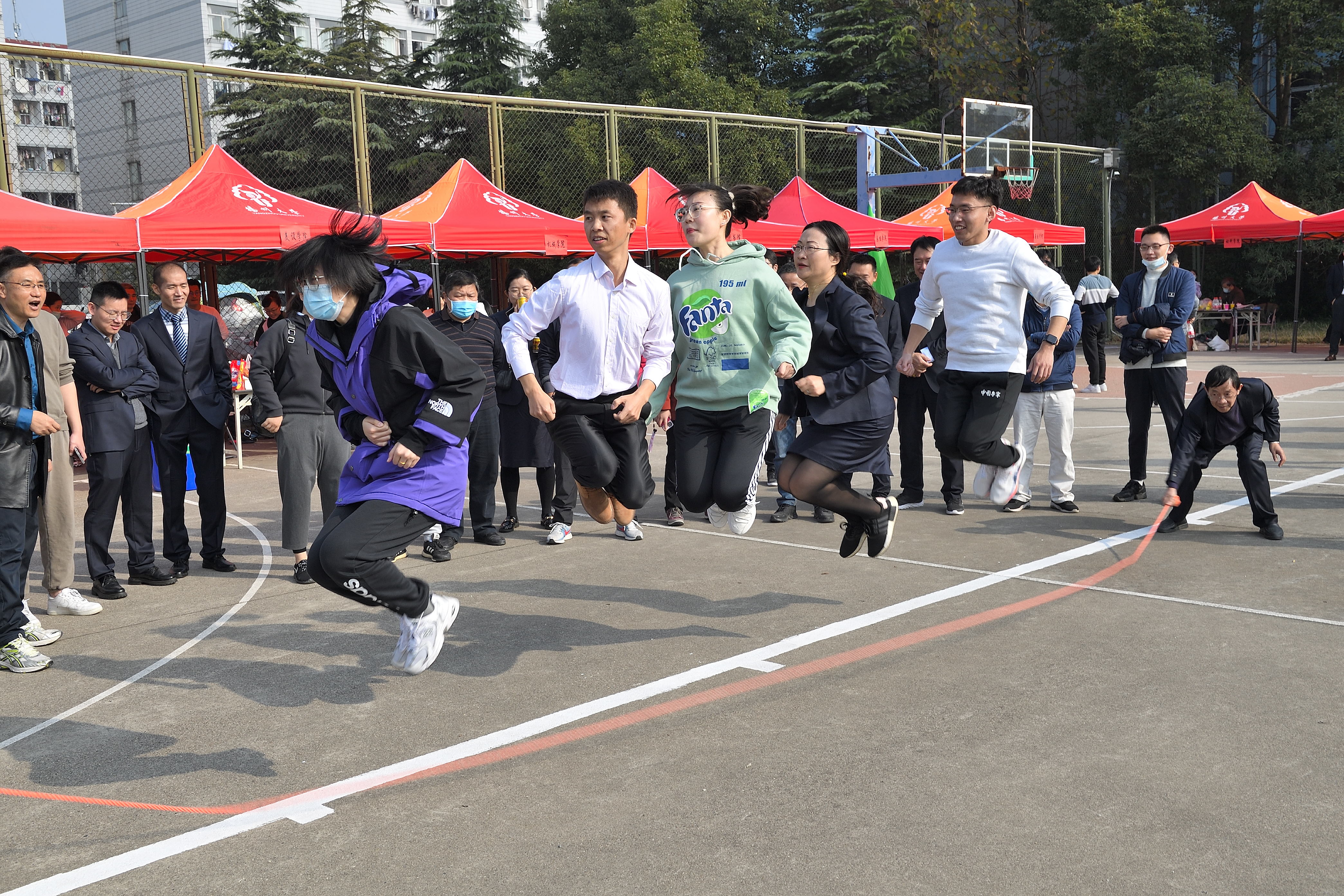 本次教职工趣味运动会共设打保龄球、抢收抢种、集体跳绳、赶篮球跑接力等4个项目。赛场上,运动员们团结协作、顽强拼搏,在竞赛中展示了奋力笔耕之外的活力;赛场外,观众们热情欢呼加油,热心为运动员们做好服务工作。
