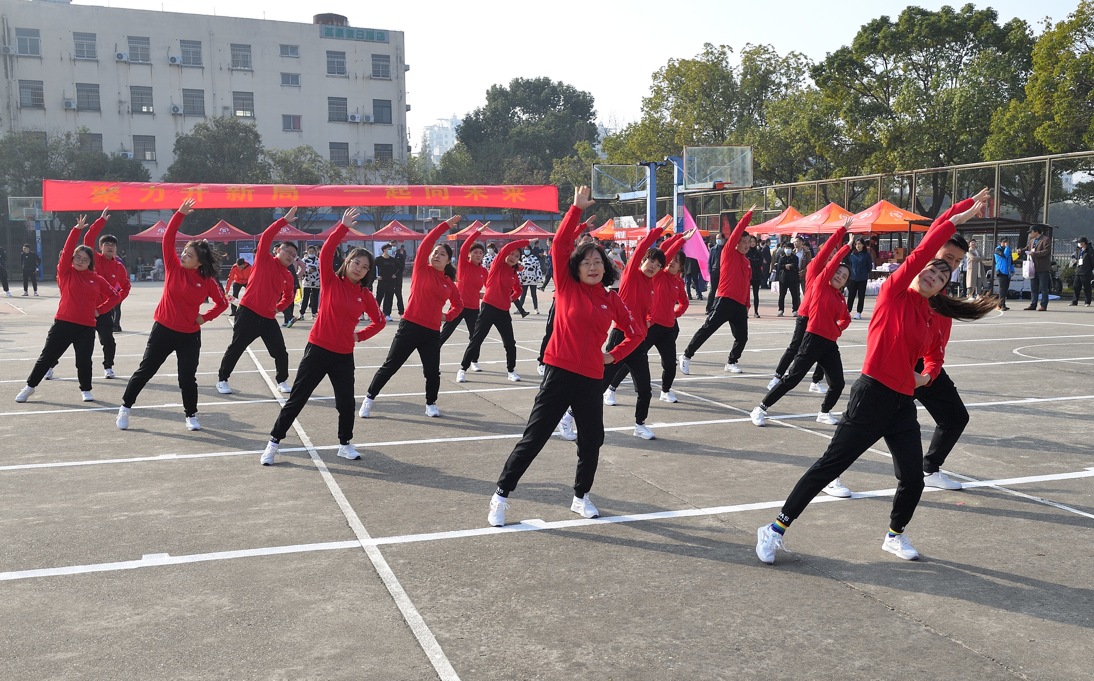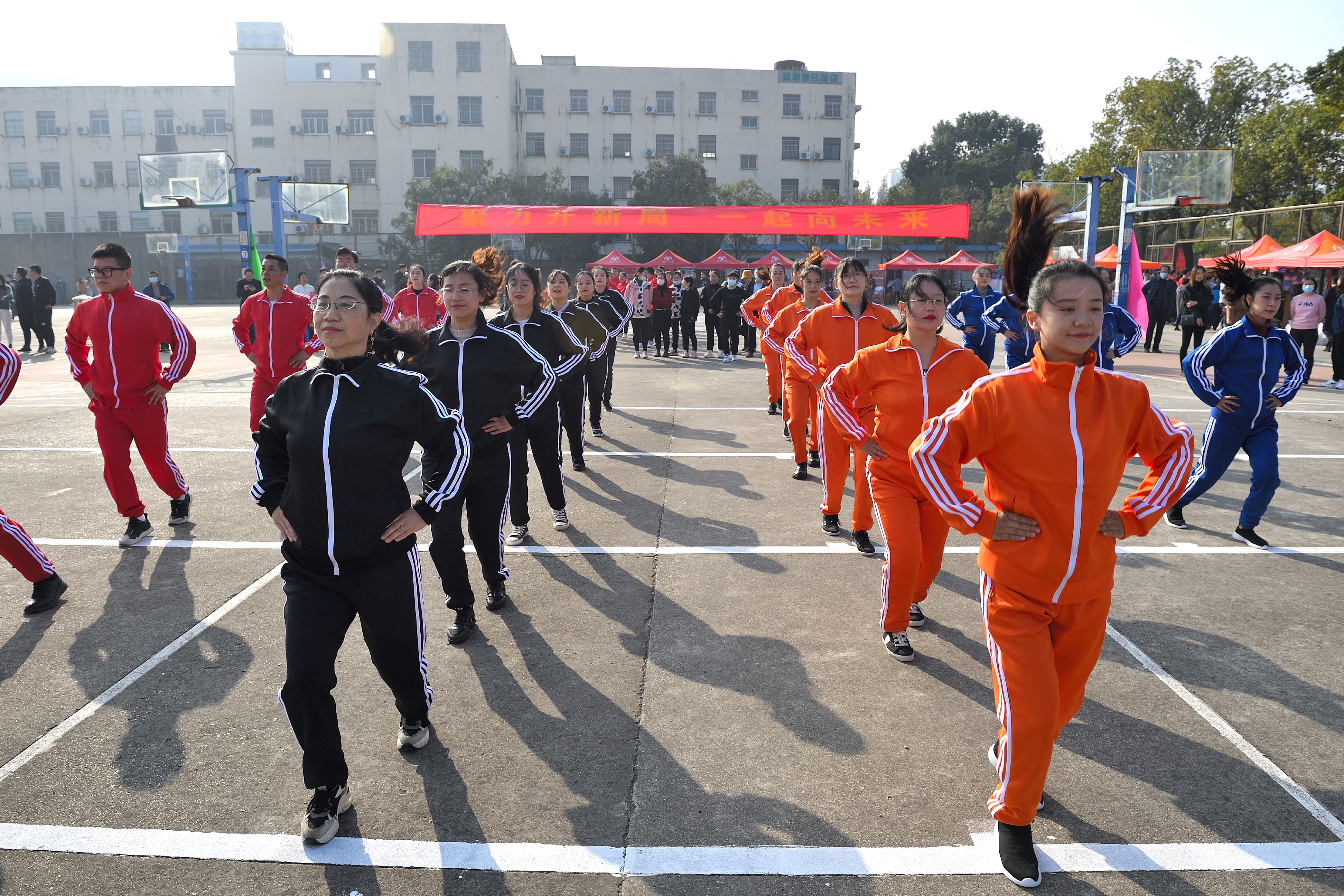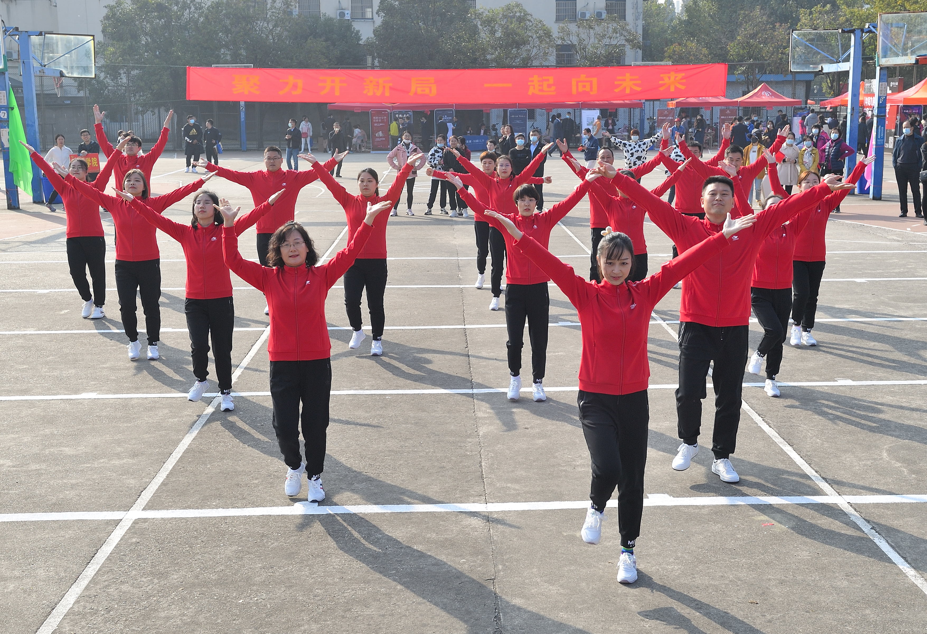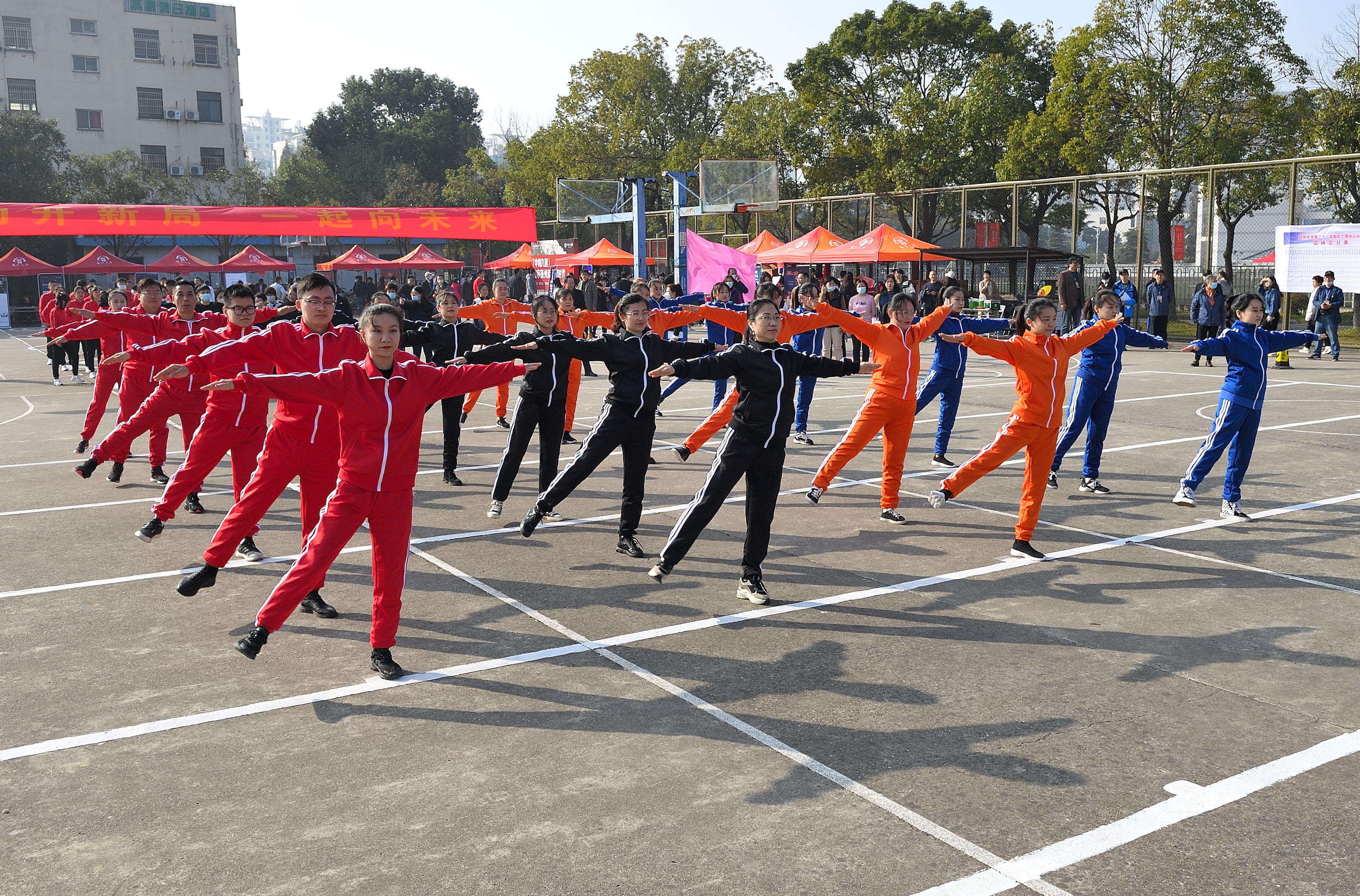 正式比赛之前,后勤工会、教科研工会为大家带来精彩纷呈的工间操表演。
