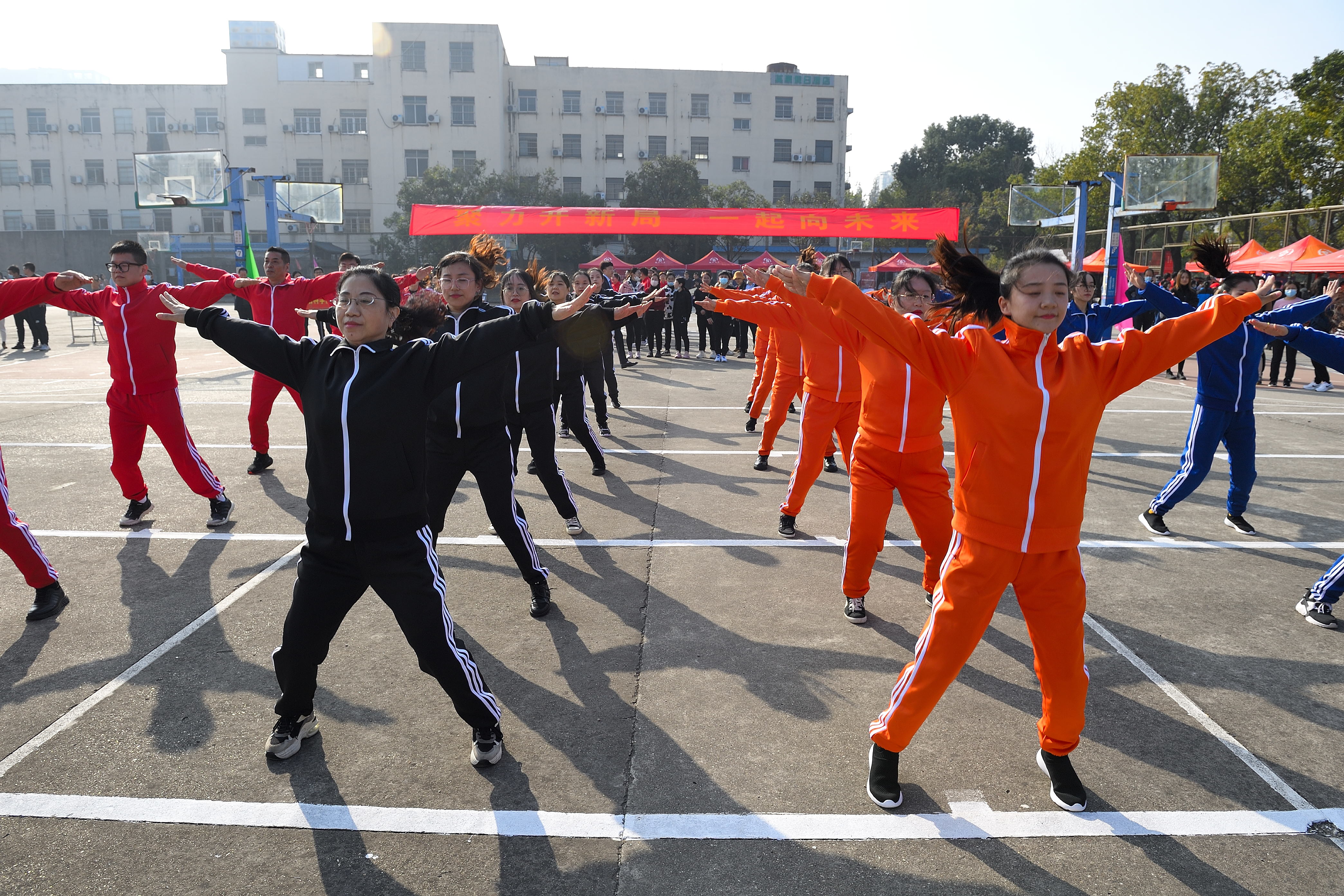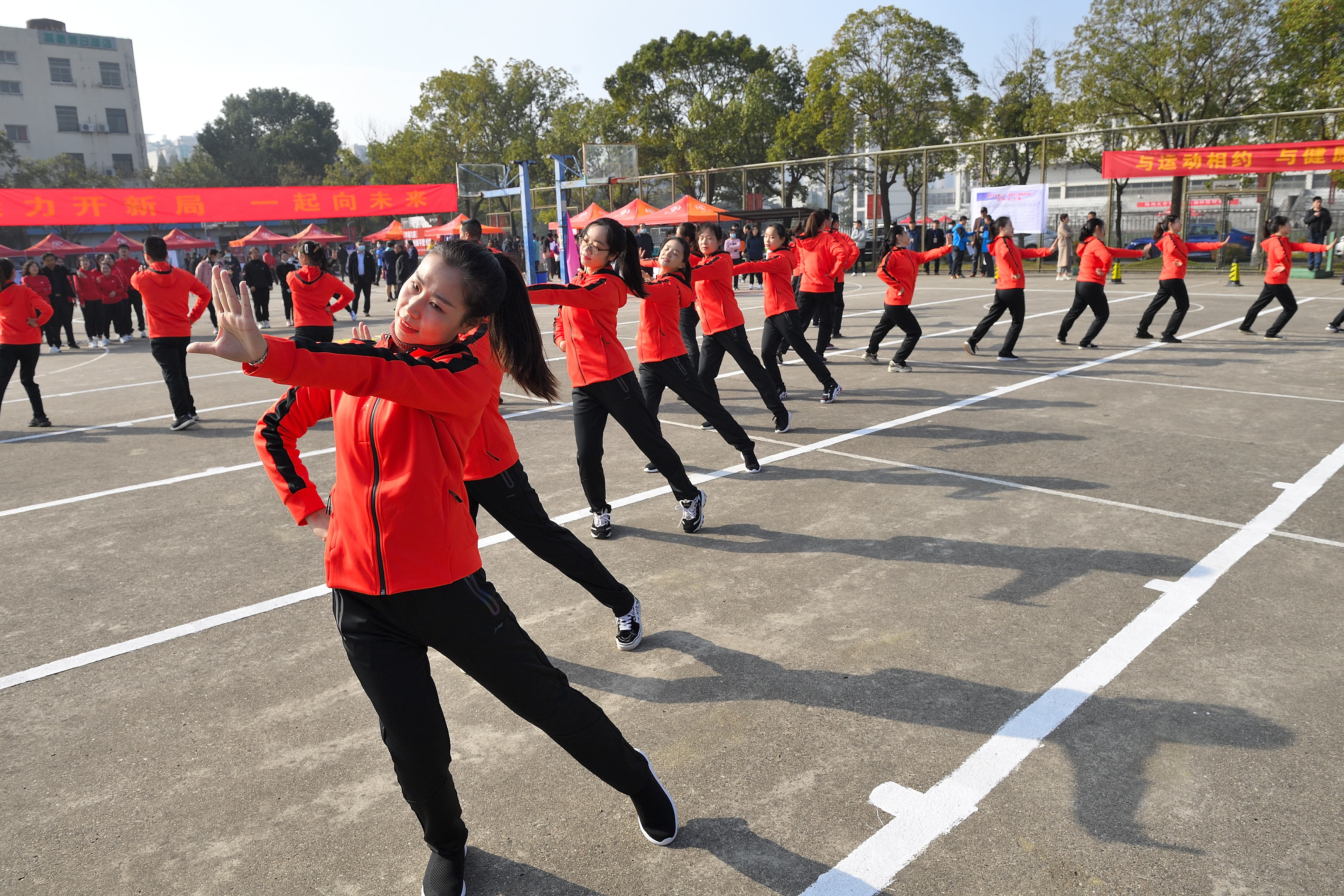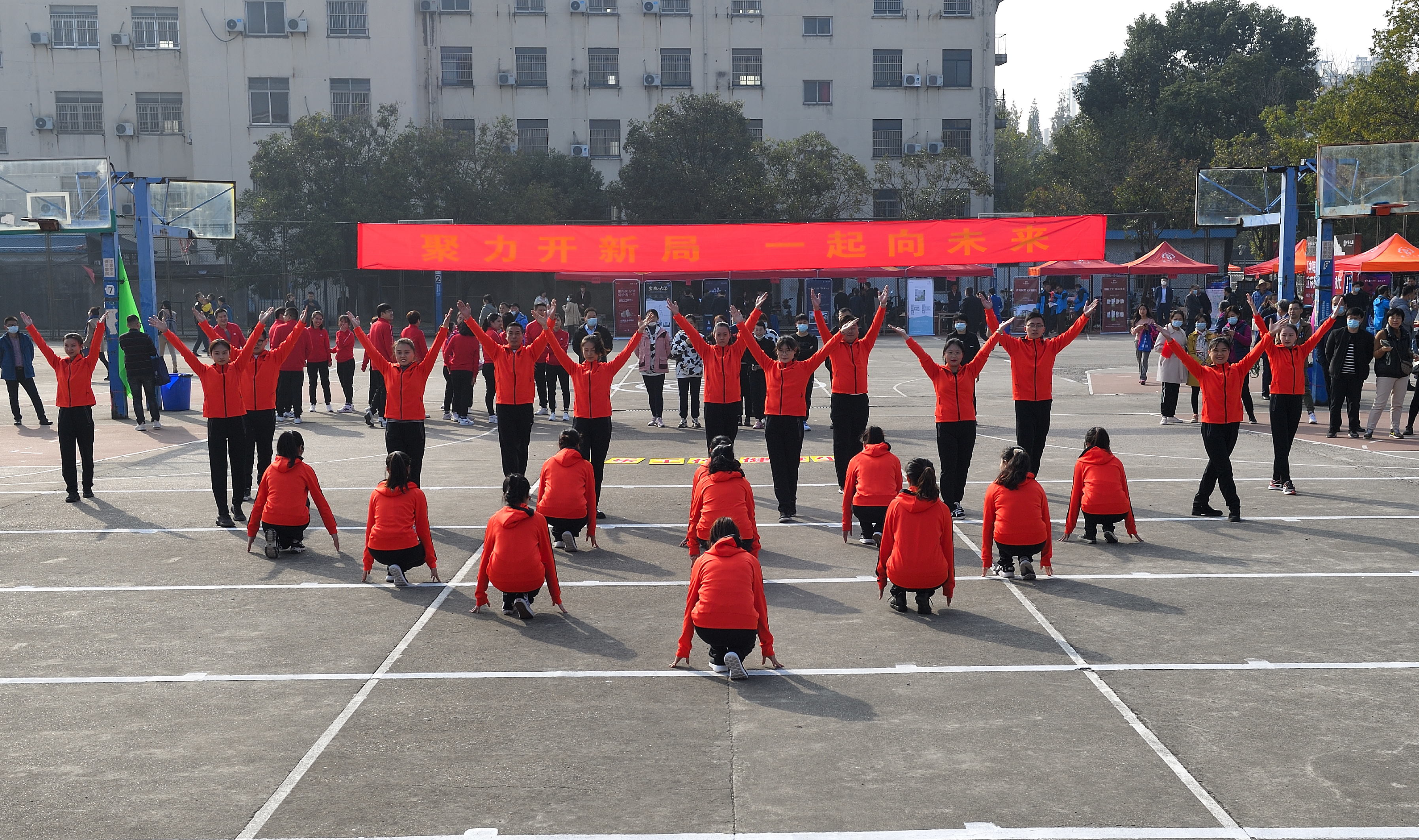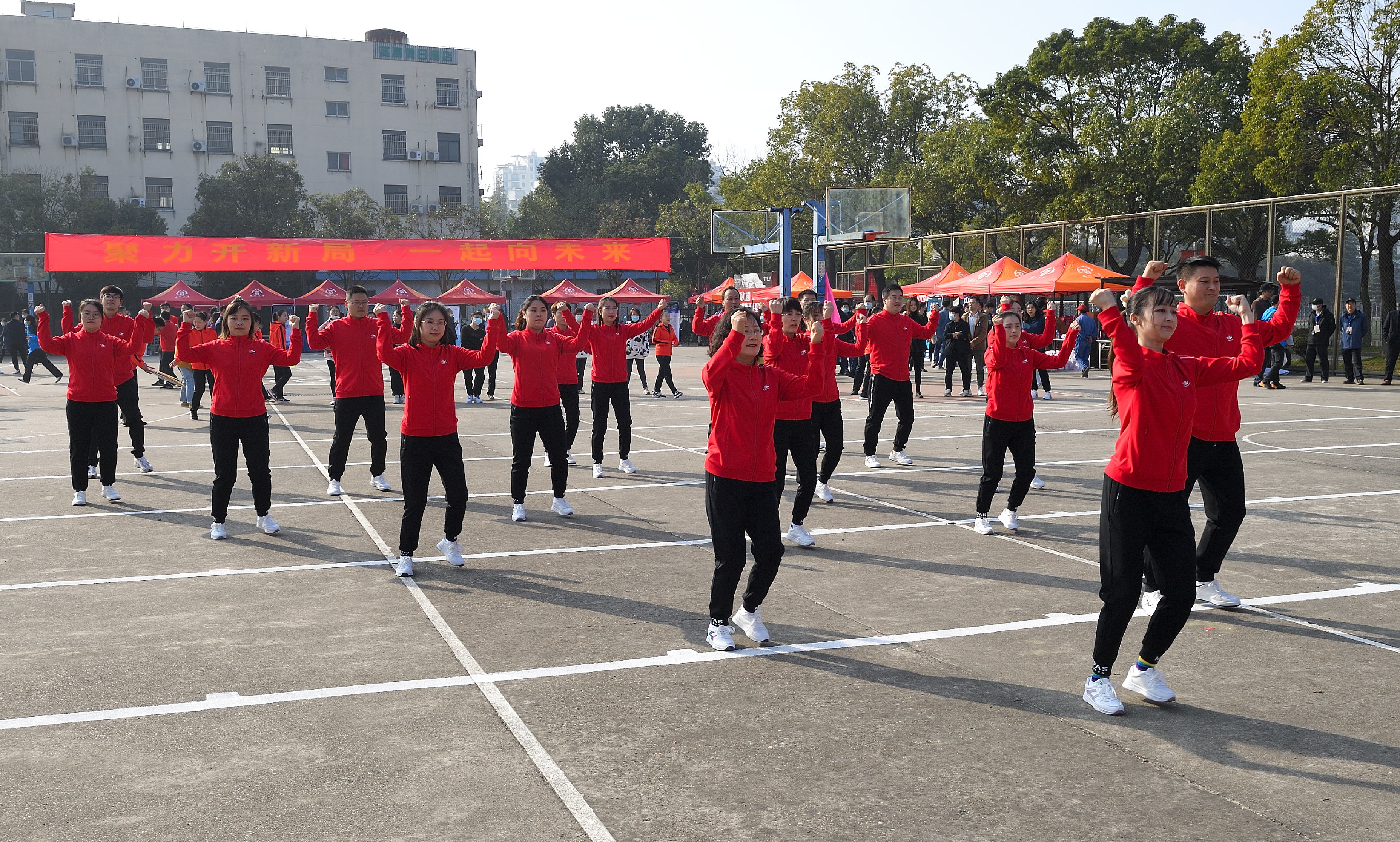 正式比赛之前,后勤工会、教科研工会为大家带来精彩纷呈的工间操表演。