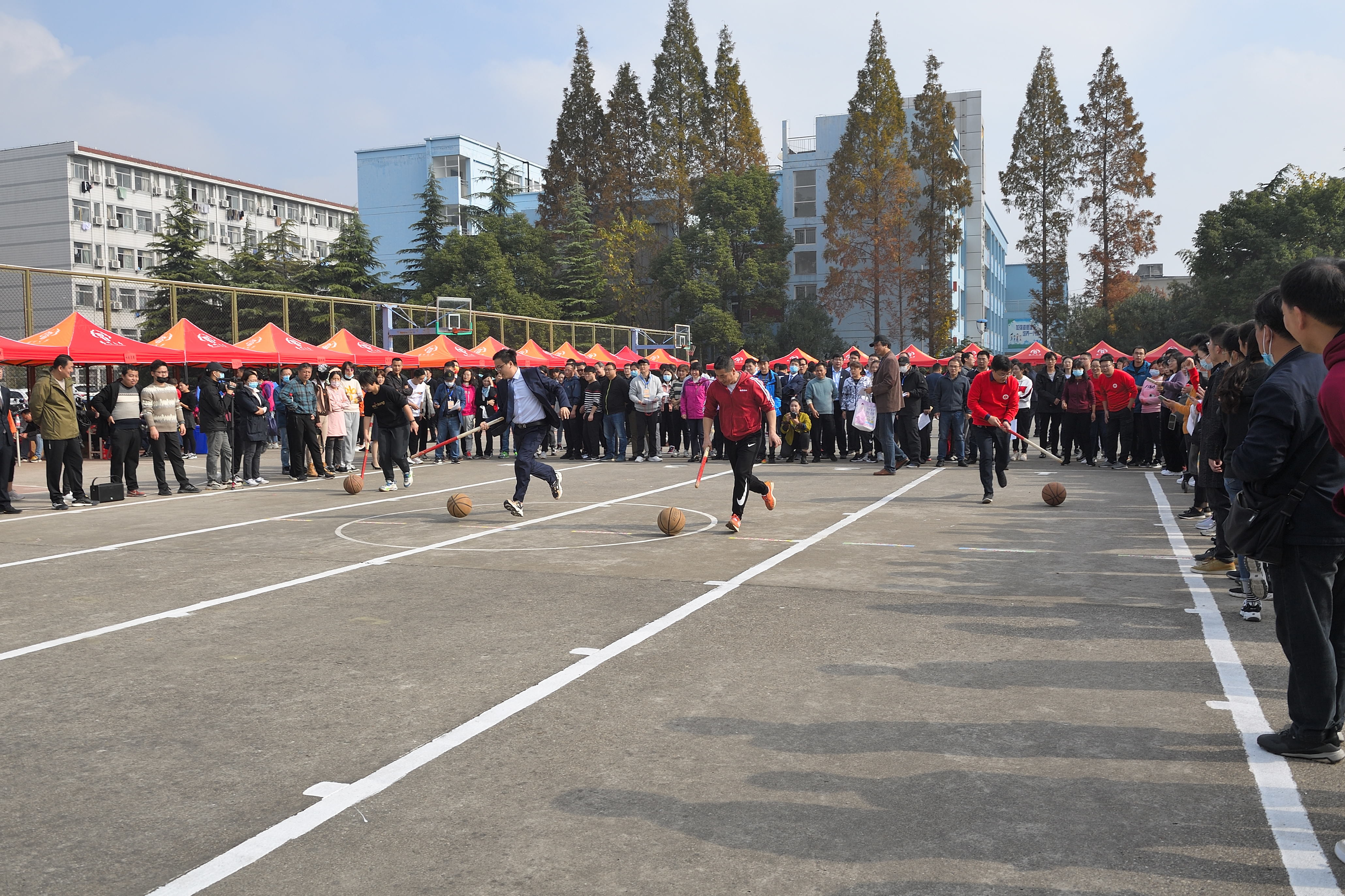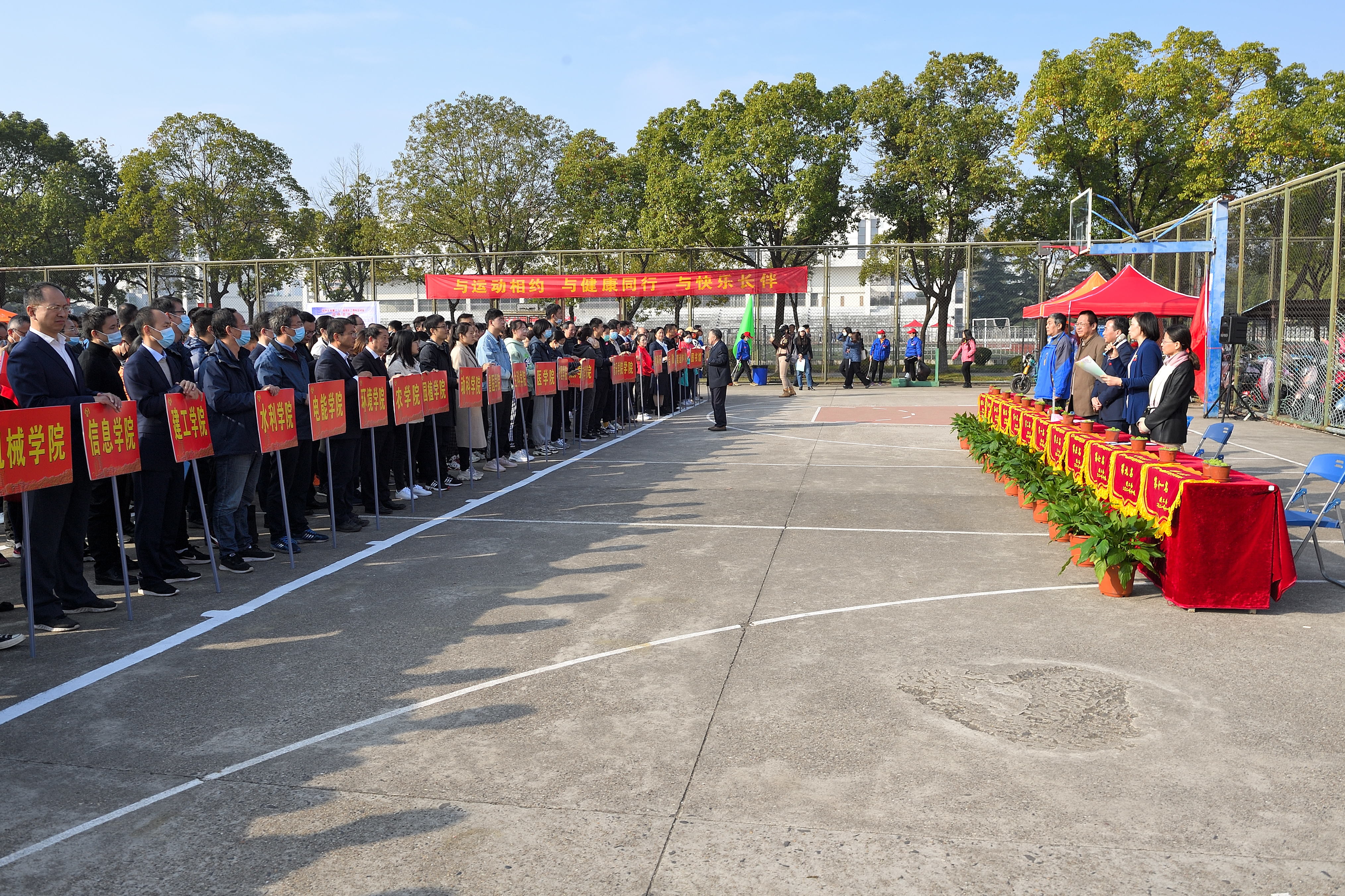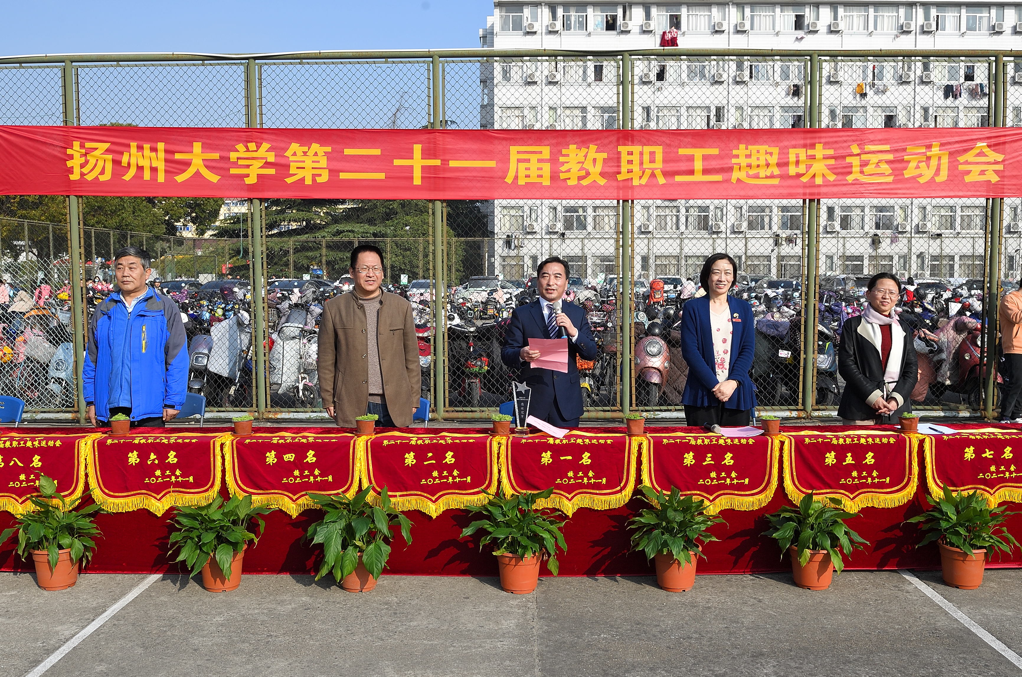 11月19日上午,校工会在荷花池校区篮球场隆重举办第二十一届教职工趣味运动会,来自全校39个二级工会代表队的1000余名教职工参加了比赛。副校长周如军在开幕式上致辞并宣布开幕。校工会主席高远主持开幕式。