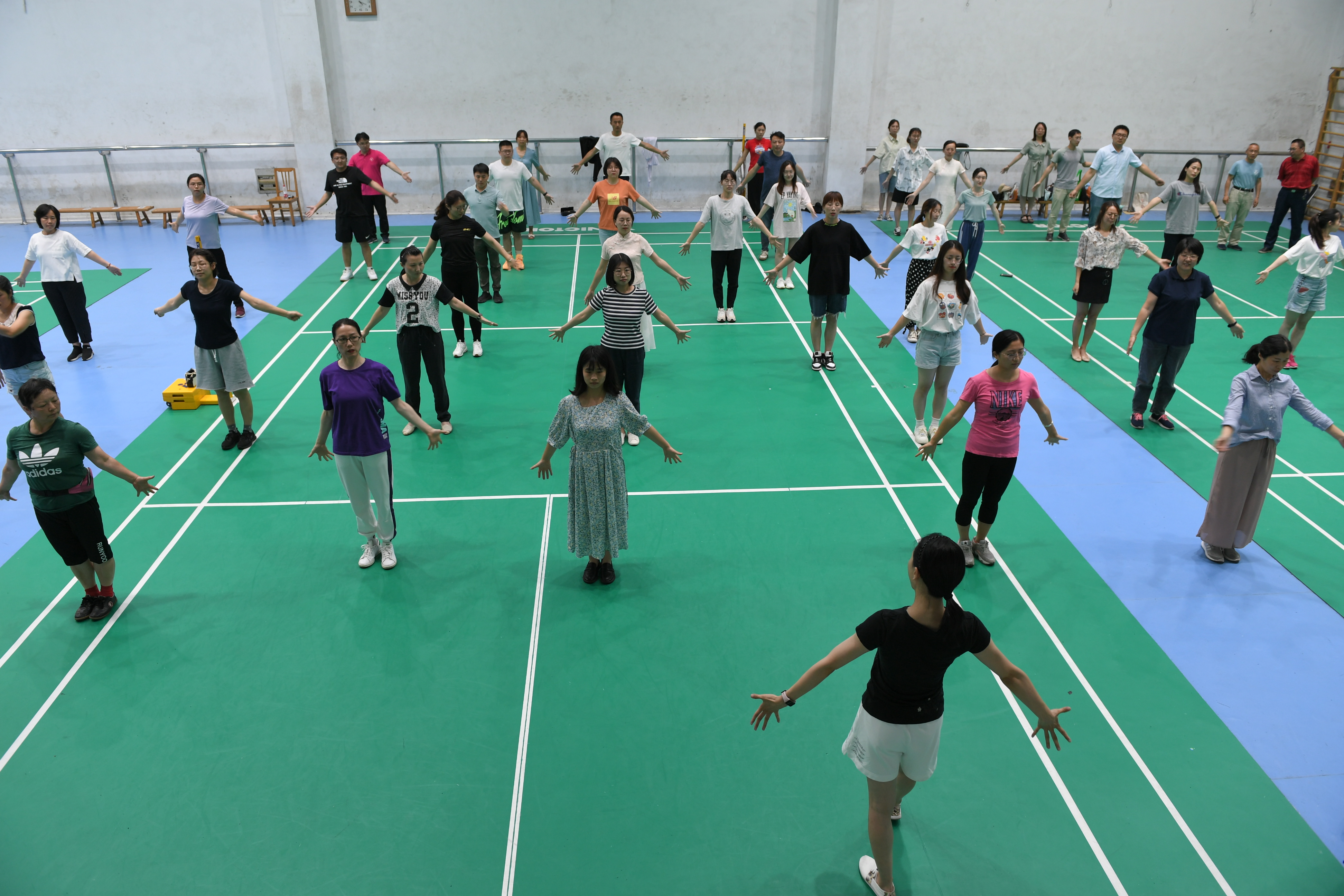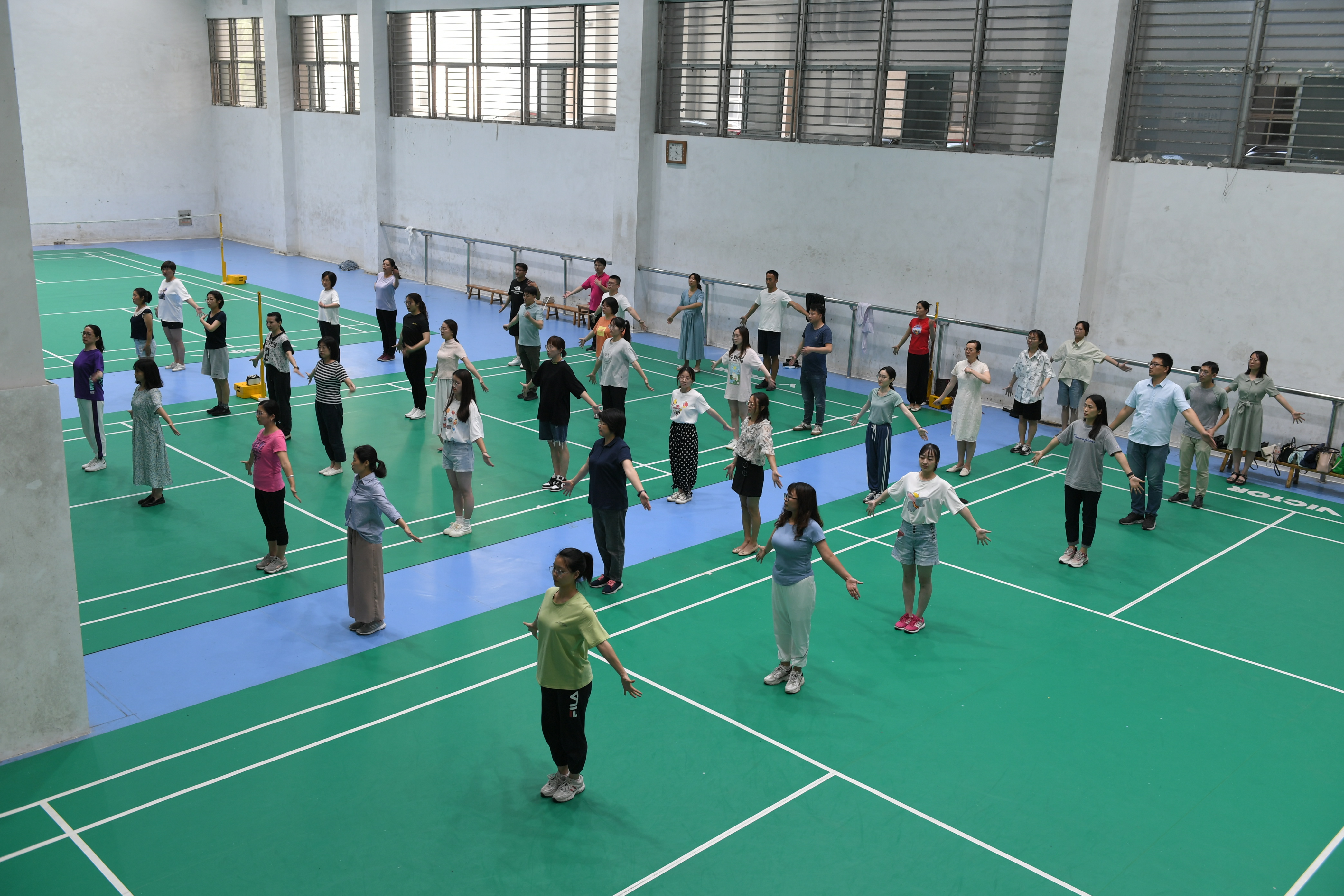 为适应教职工个性化需求,校工会邀请了体育学院徐元玉老师为学员们进行第九套广播体操(国家体育总局发布)培训,邀请体育学院刘晨曦老师为青年教职工量身编排活泼动感的健身工间操《我们都是追梦人》。