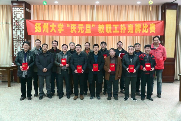 12月16日,由校工会主办、教职工牌类协会承办的第八届教职工扑克牌比赛在校荷花池校区教工食堂顺利举行。来自各院级工会的64队选手参加了本次比赛。经过一天6轮80场的激烈争夺,结果:陈妹、周长华(行政工会),苏庆、施广陵(医学院工会),问筱平、 禹良琴(教科研工会)分获前三名。卞为民 、 魏臻武(动科学院工会)等12对选手分别获得第四至第十五名。比赛达到了“以牌会友,增进友谊;以牌为媒,健康身心”的效果。