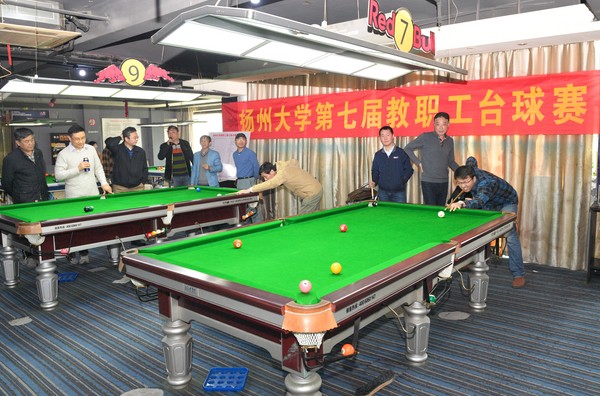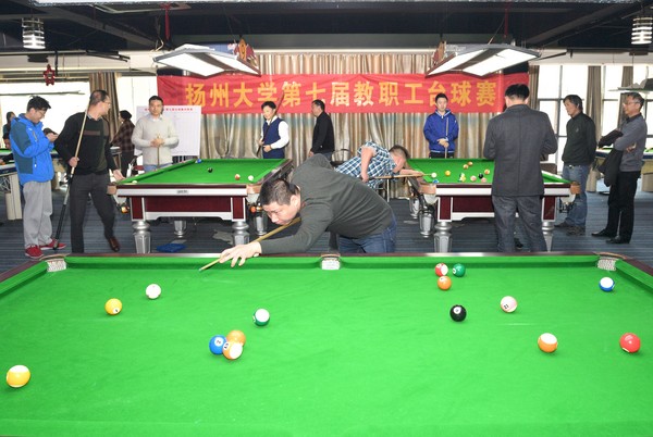 4月15日,校第七届教职工台球赛首次在扬州来力台球馆旗舰店举行。上午八点比赛开始,10多张台球桌同时拉开战幕,来自各院级工会的57名男女选手展开激烈角逐,场面壮观、气氛热烈。经过六轮、64场赛事的较量,男子组比赛结果为:离退休处何剑、医学院程宏分获冠、亚军,离退休处余洪、医学院张育并列第三名,数学学院涂昆、医学院褚春民、华江、王建军分获五至八名;兽医学院顾健红获得女子组冠军。