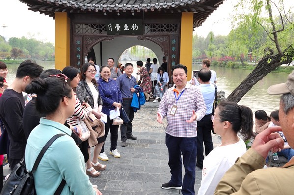 大家漫步在清澄缥碧的湖水边,徜徉在绚烂多彩的花海里,留下美丽而俏皮的倩影……一边欣赏美丽的春色,一边聆听华先生精彩的讲解,了解了建筑风格既有南方之秀,也有北方之雄的五亭桥、一夜堆成的白塔、二十四桥的传说及大虹桥、长堤春柳、徐园、小金山、钓鱼台等著名景点的历史典故。