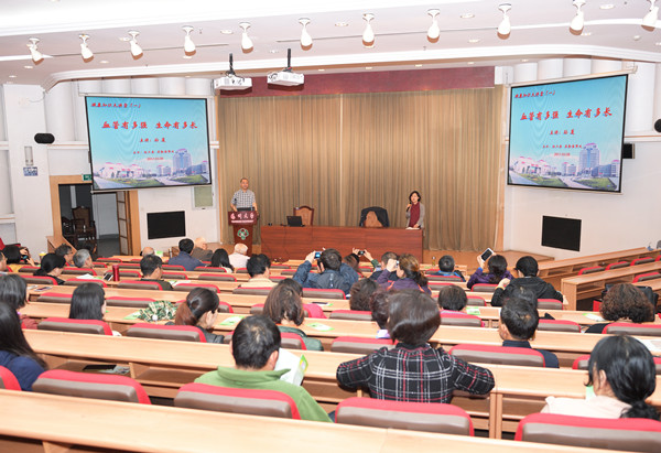 5月8日下午,校工会与后勤保障处在荷花池校区逸夫图书馆报告厅联合举办“健康大讲堂”首场健康知识讲座,邀请附属医院血管外科孙蓬主任作题为“血管有多强、生命有多长”的报告。100多名教职工参加了活动,现场还建立了“健康快乐”微信群,为大家与孙主任之间架起了随时沟通的桥梁。