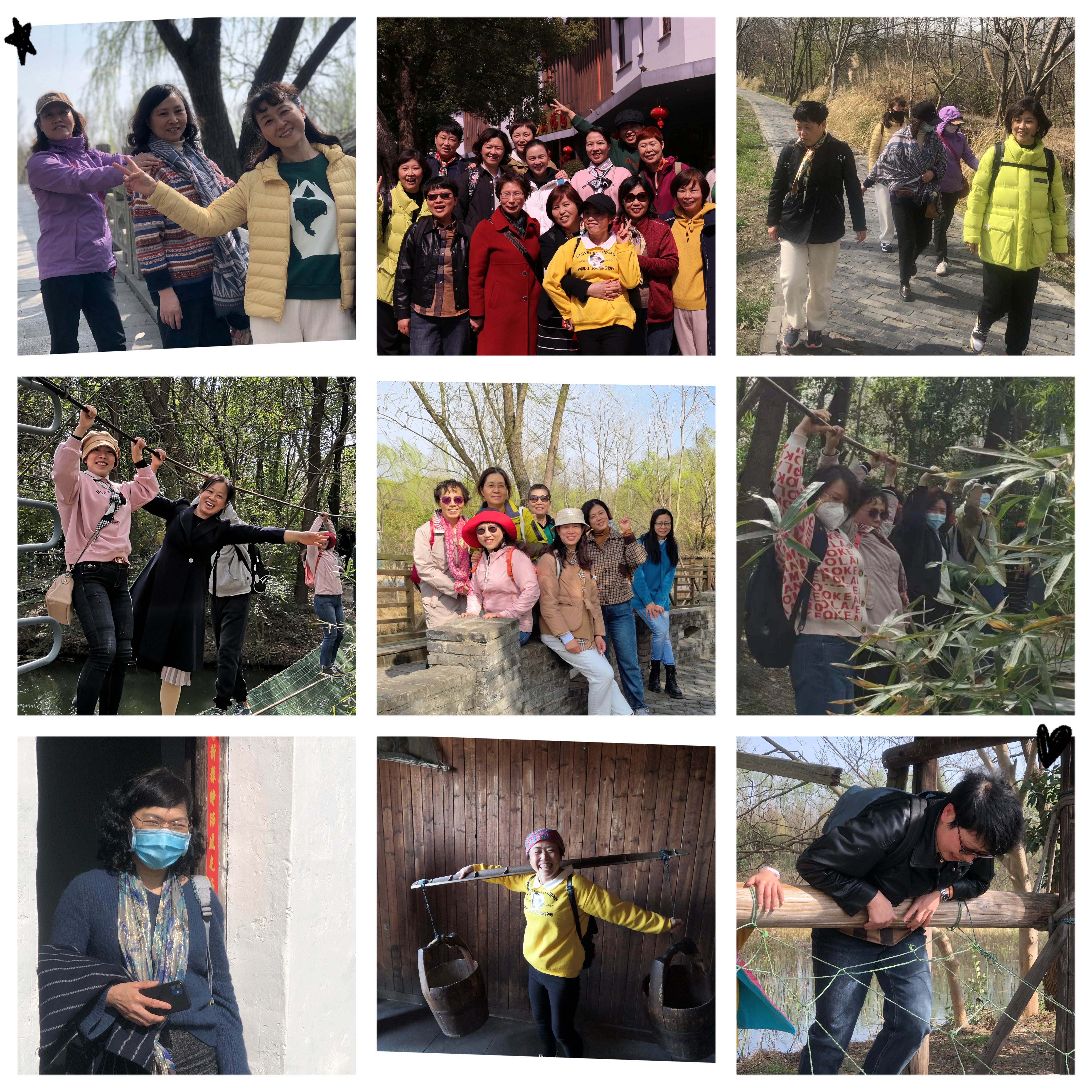 接下来我们来到国家级风景名胜区秦潼湿地公园开始了踏青活动。来到溱湖,放眼望去,绿水微波,一艘艘的游船在水面上穿梭,我们瞬间就被眼前的景色迷住了。我们坐了游船,玩了惊心动魂的探险乐园,参观了有趣的科普馆、“四不像”麋鹿、凶猛的鳄鱼、复古的农家小院、锈迹斑斑的农用工具……大家融入到自然风光中愉悦身心,濡染在人文乡风里熏陶情感。姐妹们三五成群结伴而行,或边欣赏美景边开心聊天,或合影留念,在初春的暖阳里,意趣盎然,尽情感受踏青带来的惬意,享受着春天的浪漫。