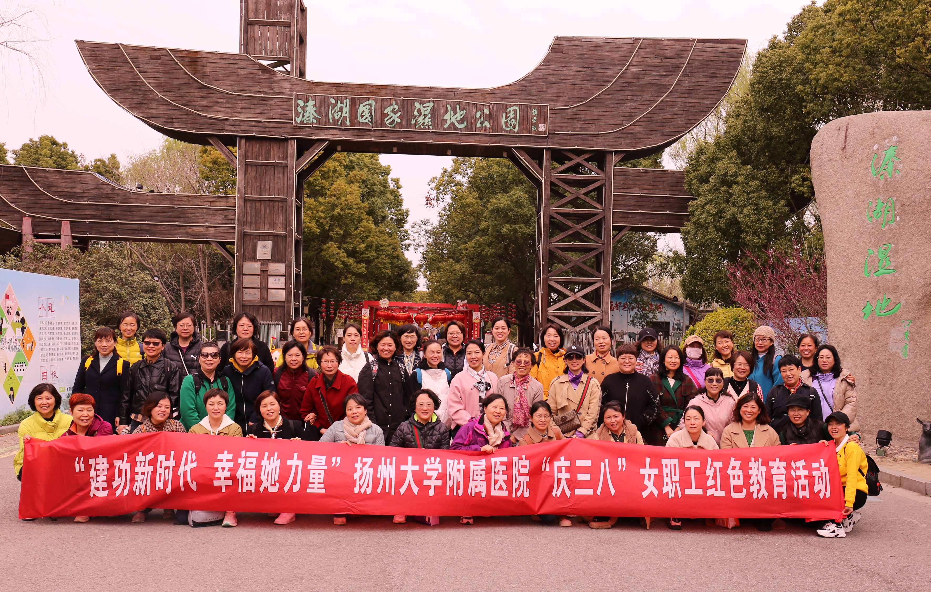 迟日江山丽,春风花草香。在这如诗如画的三月里,根据院工会“温馨三月——‘三八'国际劳动妇女节系列活动方案”安排,为将关爱女职工工作落到实处,丰富广大女职工的业余文化生活,增进女职工之间的交流,增强医院凝聚力,3月12日,院工会·女工委组织开展了主题为“建功新时代 幸福她力量”庆“三八”女职工红色教育暨踏青活动。来自全院近50名女职工参加了此次活动。