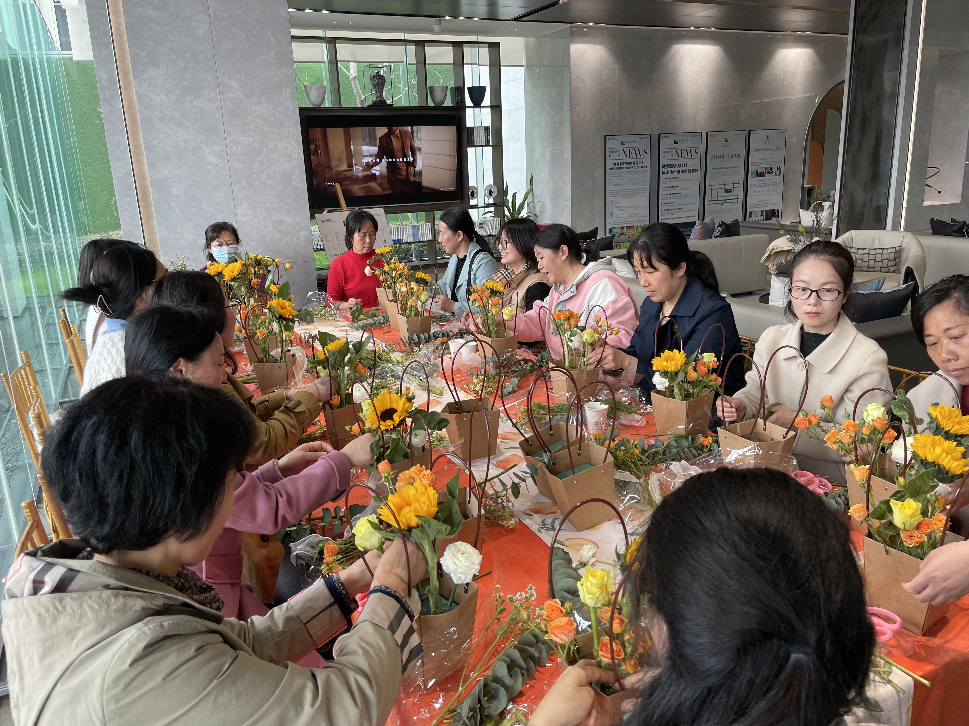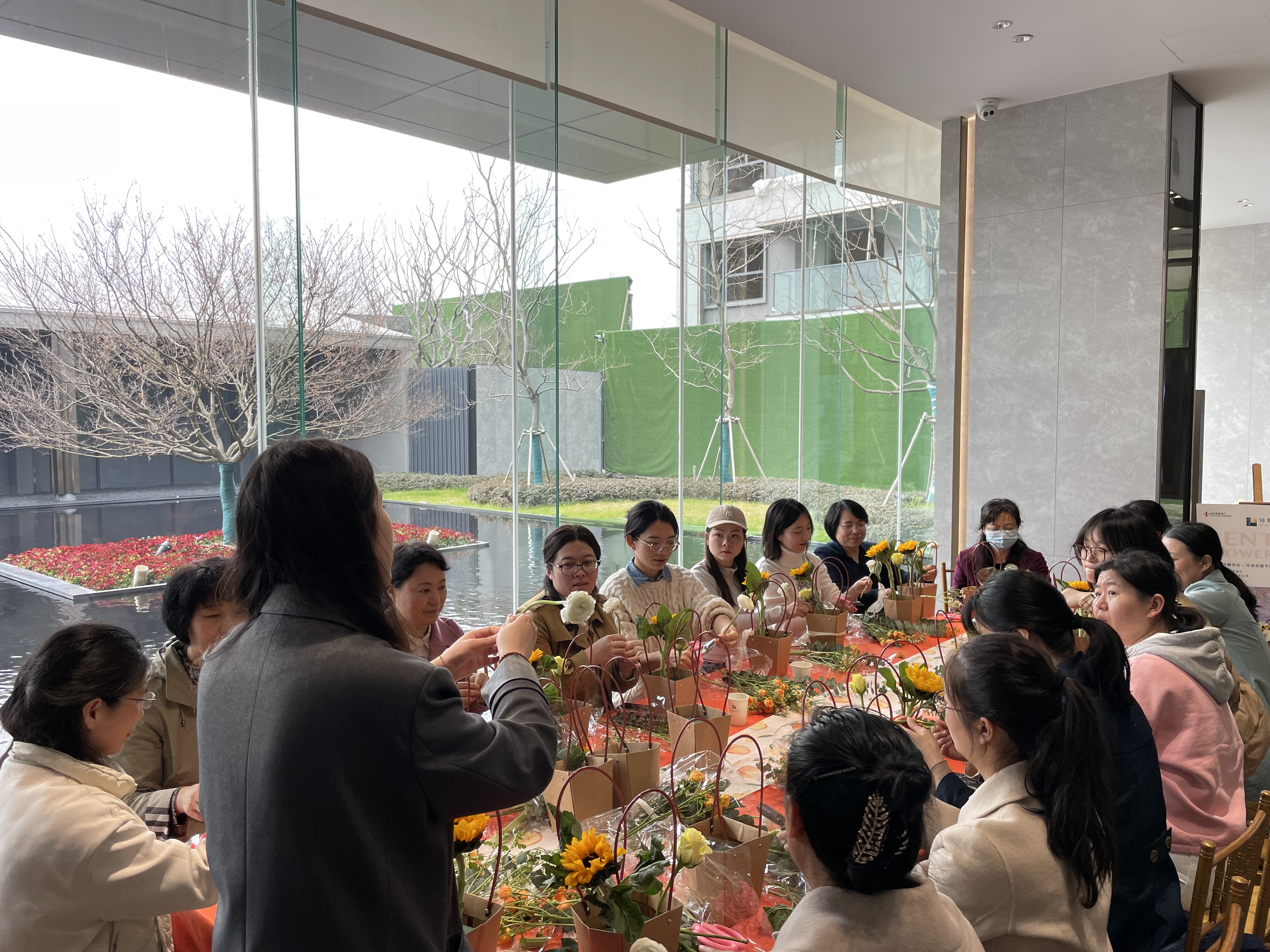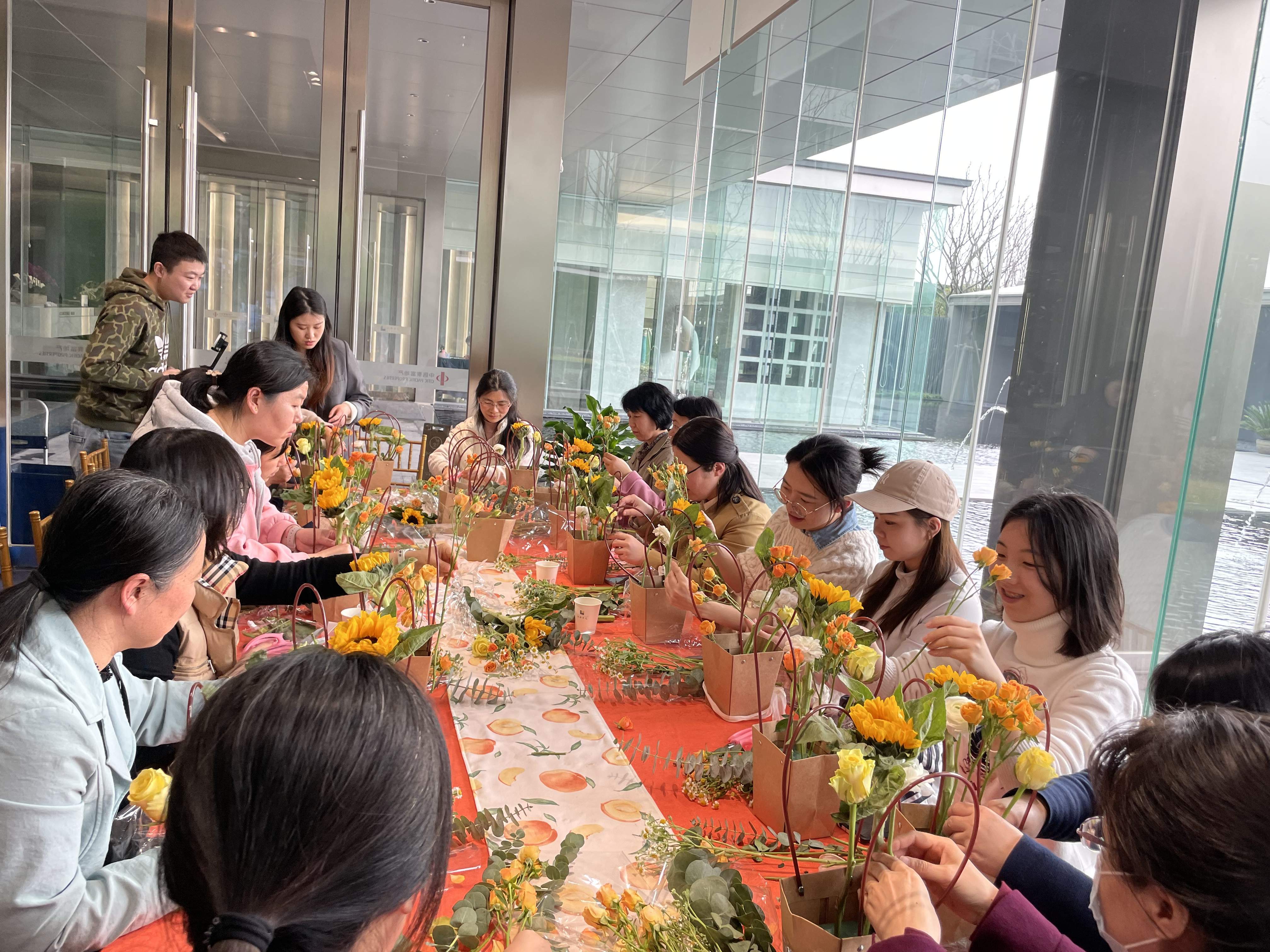 最后,活动的女教职工合照留念。这次插花活动将心与美融为一体,不仅让女教工充分感受到节日的关怀,还分享了花艺之美,加深了同事间的感情,为学院发展积蓄了新动能。