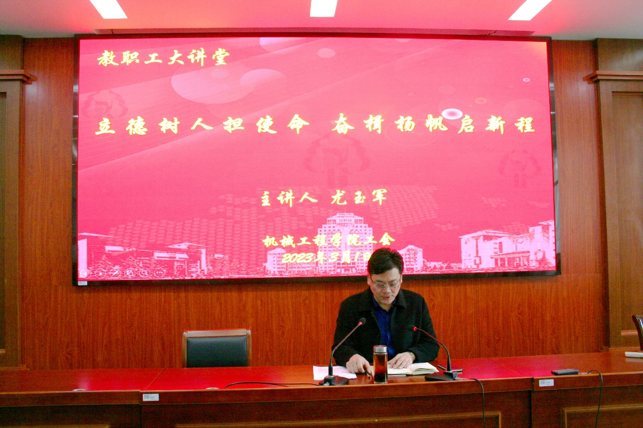 3月1日下午,机械学院开展教职工专题教育,院党委书记尤玉军主讲,全体教职工参加会议。