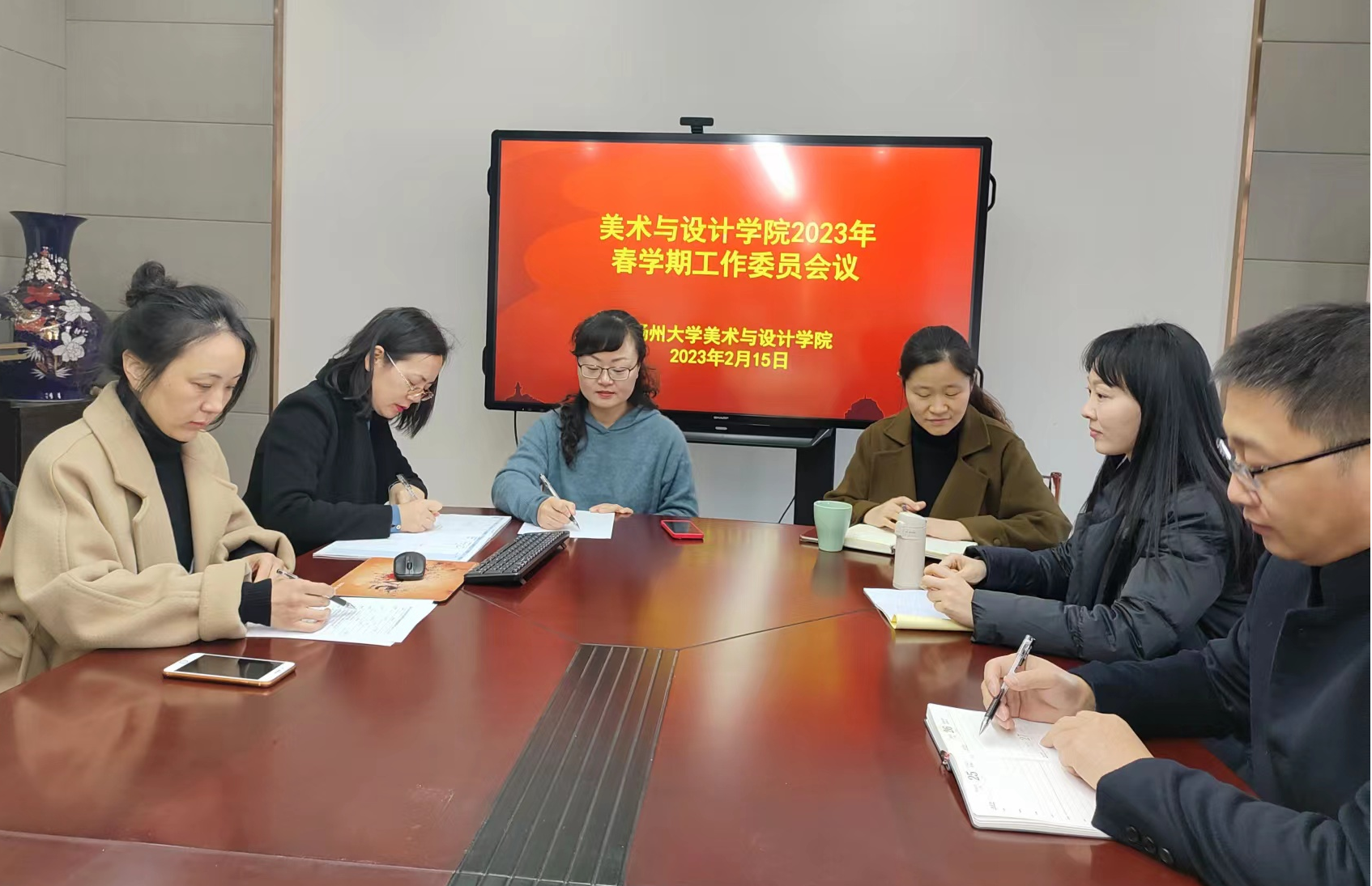 开学第一周,美术与设计学院工会召开了2023年度春学期第一次工会例会,会议总结了2022年度院工会开展的各项工作及取得的成绩,确定了进一步提升服务能力、营造学院和谐氛围、进一步提升特色工作目标的工会工作计划,同时参会人员就“三八节”活动方案,“整十岁”生日慰问等学院各类特色集体活动方案展开了充分讨论,通过开展丰富多彩的工会活动,提升教职员工的归属感和凝聚力。