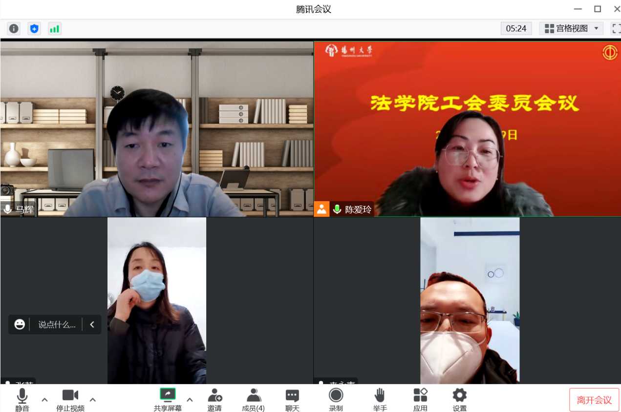 12月29日下午,法学院工会召开学期末工会委员会议。受疫情影响,全体工会委员在线参会。