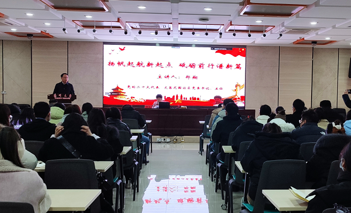 郑翔书记在报告中讲述了党的二十大简况及会议流程,分享了自己作为一名基层党代表,连续三届参加党的全国代表大会的亲身感受,着重介绍了大会主题、大会报告的主要内容。郑翔书记从过去5年的工作和新时代10年的伟大变革、关于马克思主义中国化时代化、关于中国式现代化、关于全面建设社会主现代化国家的目标任务、关于坚持党的全面从严治党、关于应对风险挑战六个方面为大家作了重点解读。郑翔书记指出,中国共产党第二十次全国代表大会,是在全党全国各族人民迈上全面建设社会主义现代化国家新征程、向第二个百年奋斗目标进军的关键时刻召开的一次十分重要的大会,对奋力谱写新时代中国特色社会主义更加绚丽的华章具有重大而深远的意义。