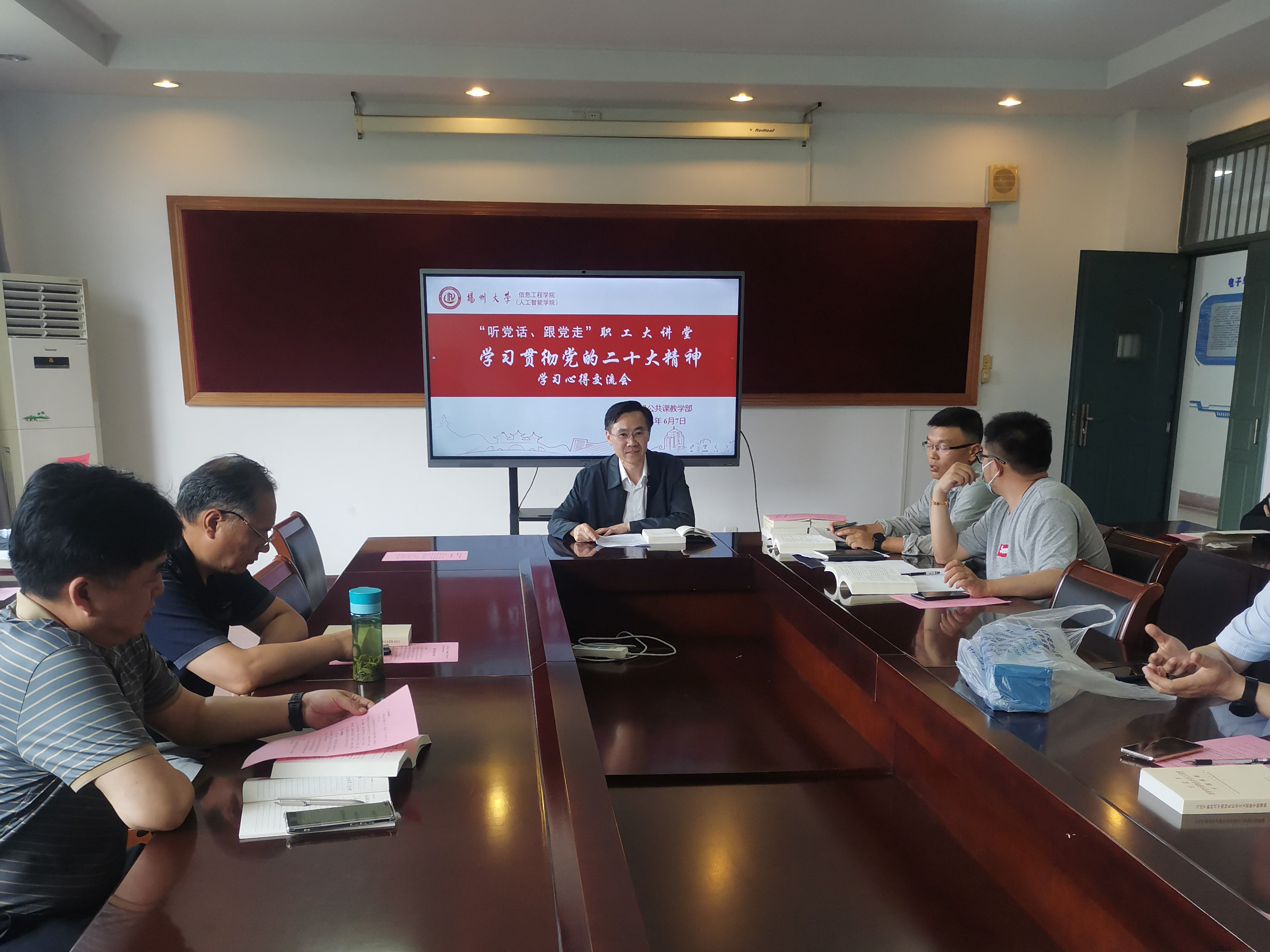 院党委副书记崔益军参加了计算机公共课教学部的学习活动并做《推进文化自信自强,铸就社会主义文化新辉煌》主题演讲。各部门支部书记带领大家研读了《深刻领悟“两个确立”的决定性意义》。活动中大家踊跃发言,交流学习心得体会。