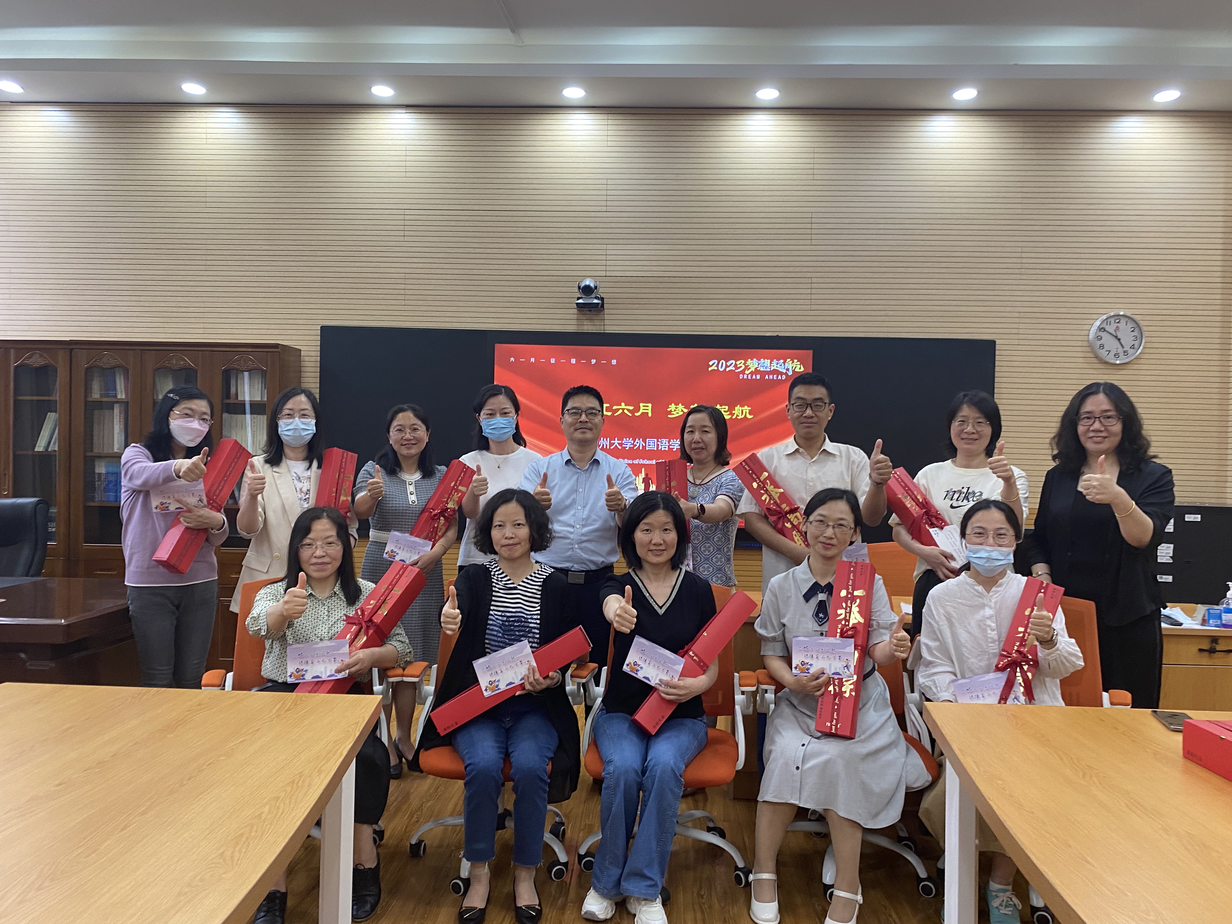 5月31日下午,外国语学院工会举行“火红六月,梦想起航”慰问活动,组织对家中子女即将参加2023年中考、高考的22名教职工进行了慰问,送给莘莘学子亲切的祝福,以及寓意“一举高粽”的礼盒和一张学院工会特别定制的祝福贺卡。祝愿孩子们旗开得胜,取得好成绩。学院党委书记居学明、学院综合办公室副主任(党务岗)刘语颂出席,院工会主席张顺梅主持活动。