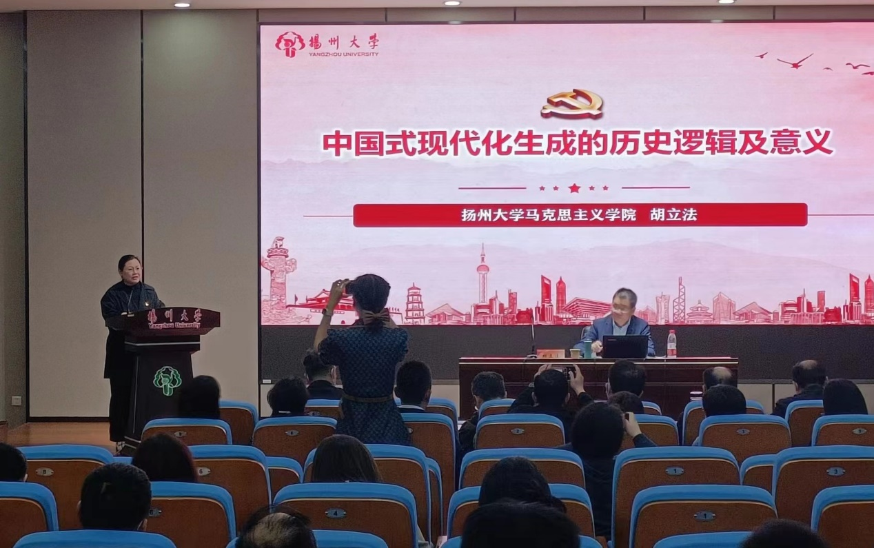 胡教授在报告中从大历史观的角度系统讲解了中国式现代化从艰难起步、初步探索到道路开辟、深化拓展的历史轨迹,揭示了中国式现代化生成的历史逻辑,阐明了中国式现代化的性质、特色和本质要求,指明了中国式现代化的历史意义。